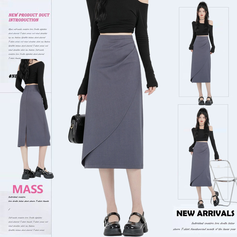 리얼 샷 2025 봄 여름 여름 새로운 패션 주름 치마 중간 길이의 통근 커버 엉덩이 슬리밍 불규칙한 긴스토어 가기