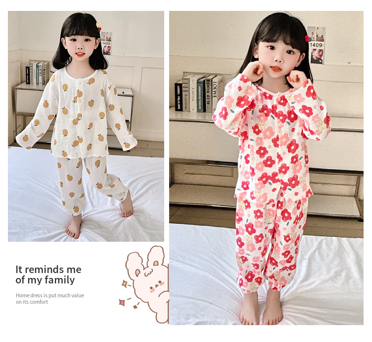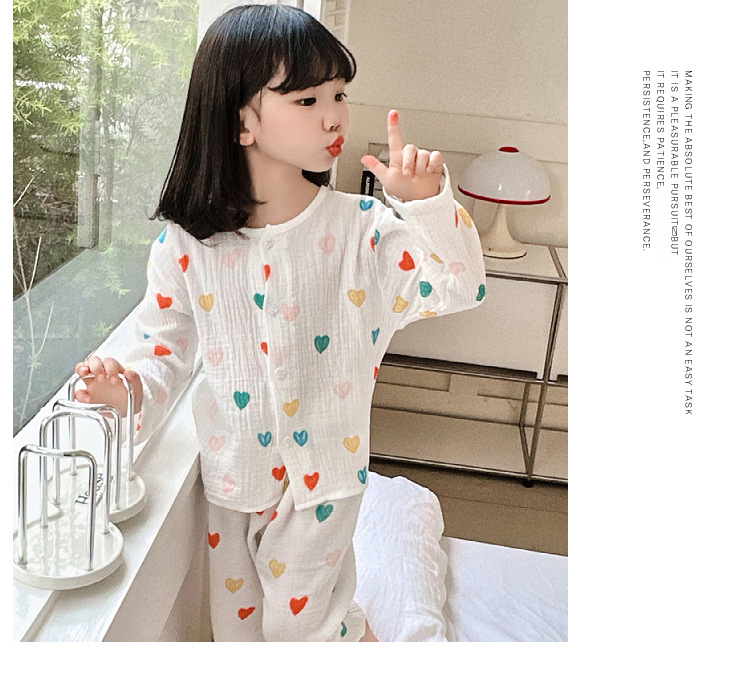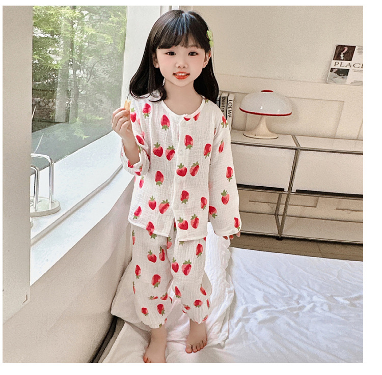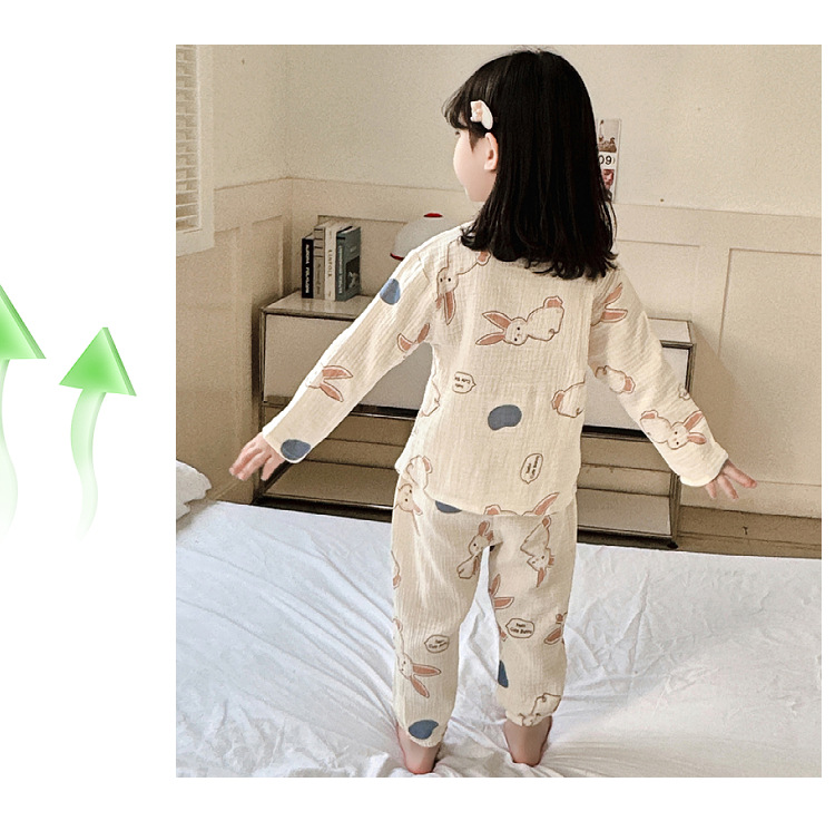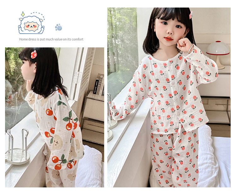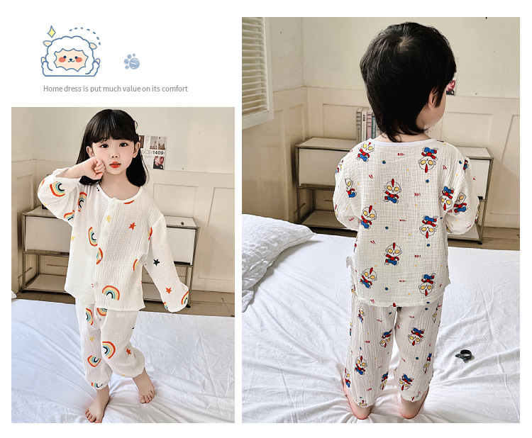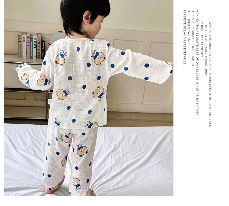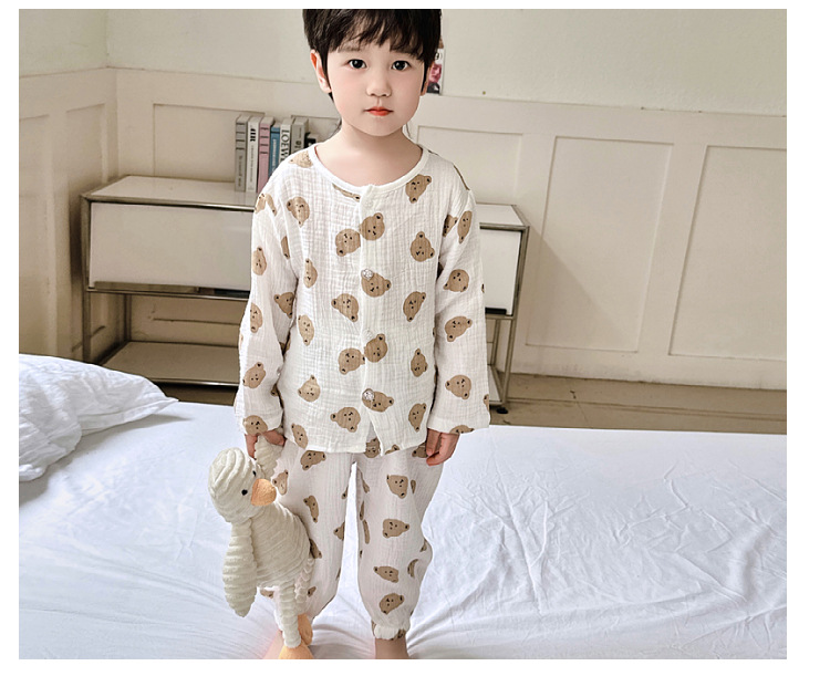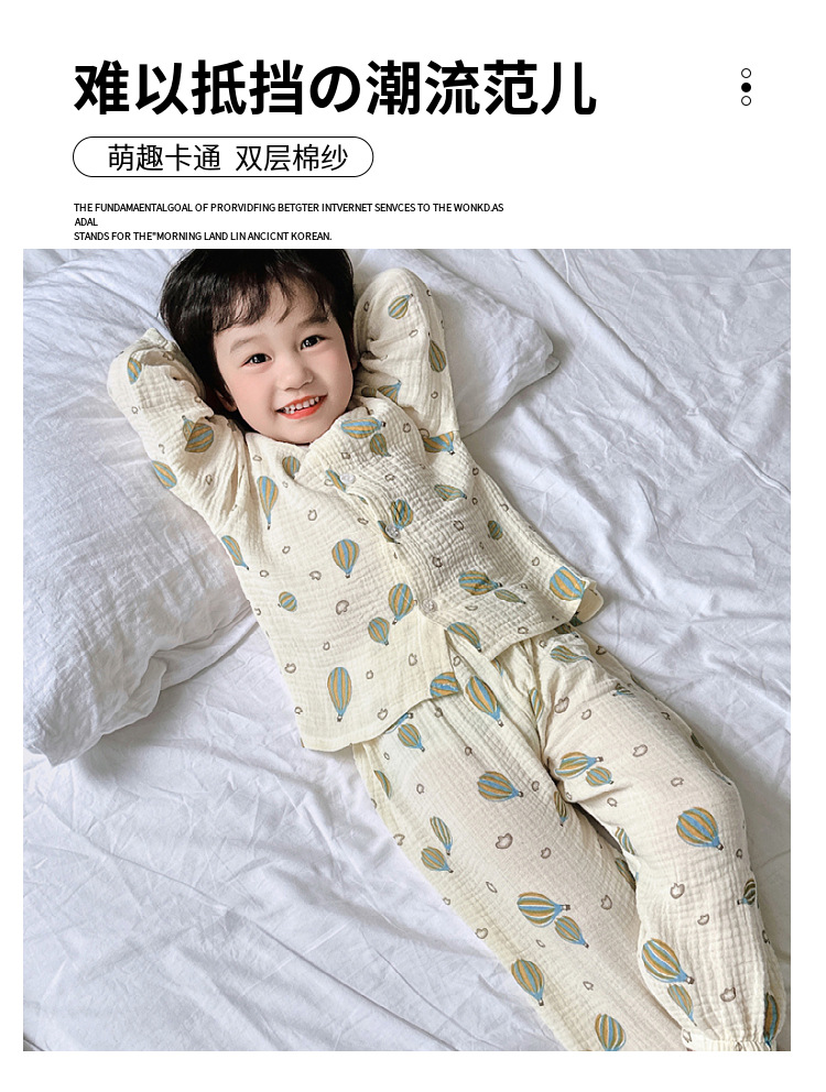 뉴 보이즈 코튼 더블 레이어 코튼 원사 얇은 스타일 긴팔 아기 잠옷 어린이 에어컨 의류 세트 잠옷스토어 가기