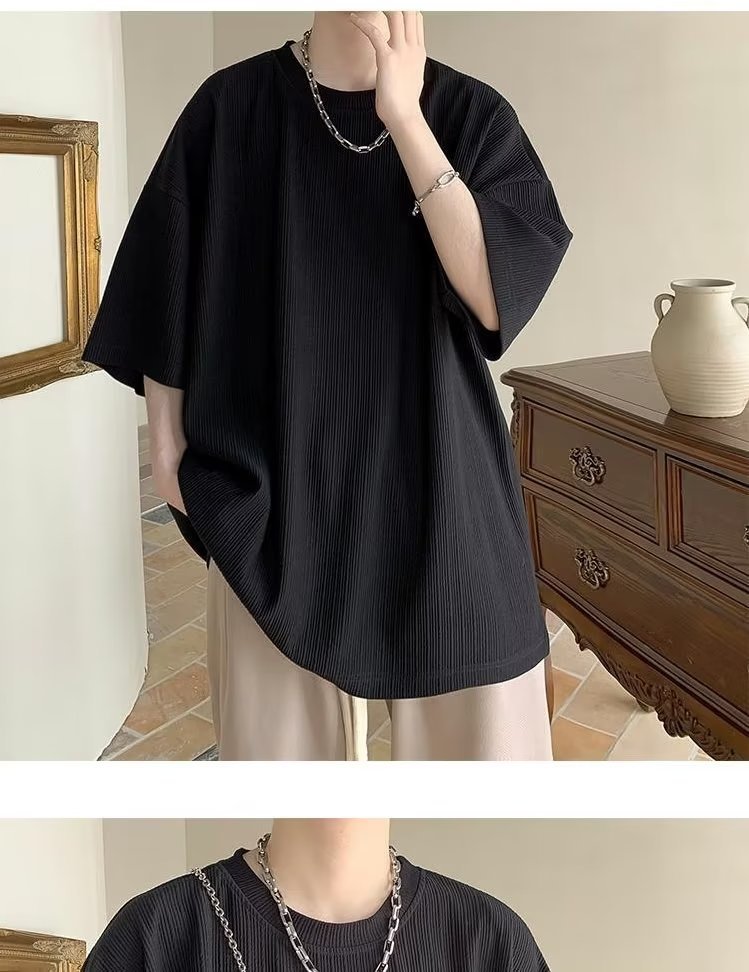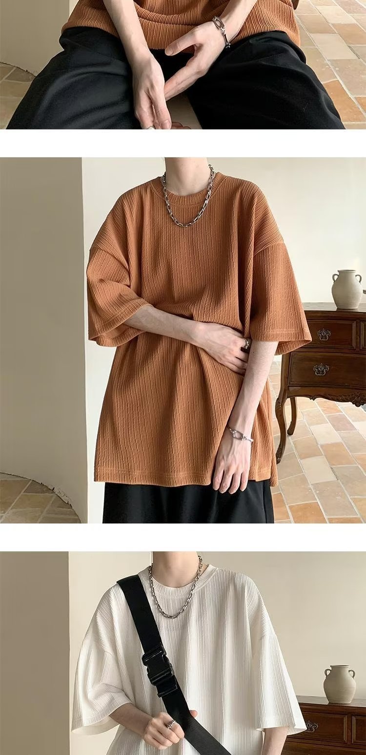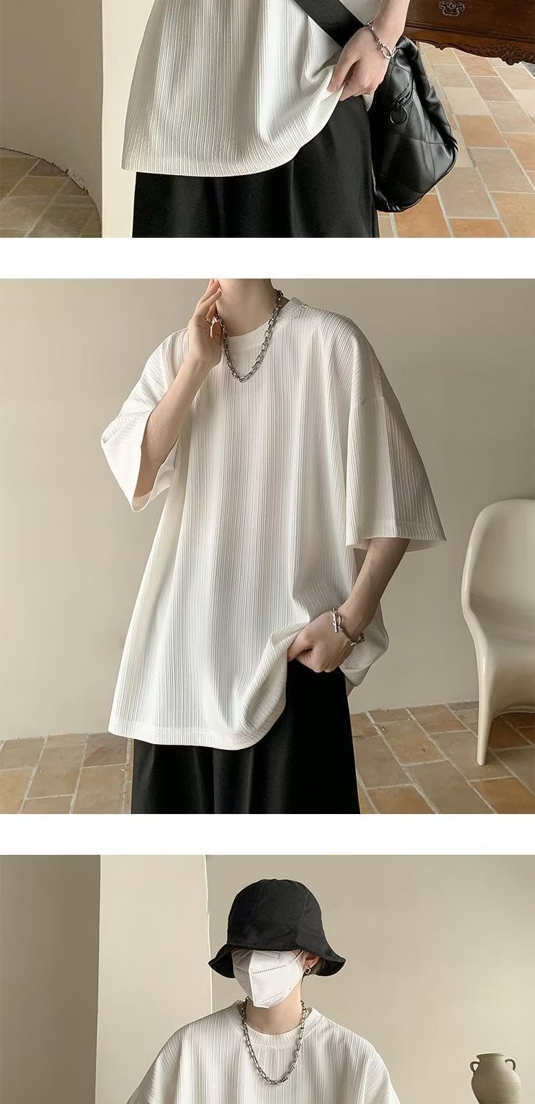 아이스 실크 반팔 티셔츠 남성용 여름 반소매 남성 느슨한 한국 스타일 유행 브랜드 유행 중미 티셔츠스토어 가기