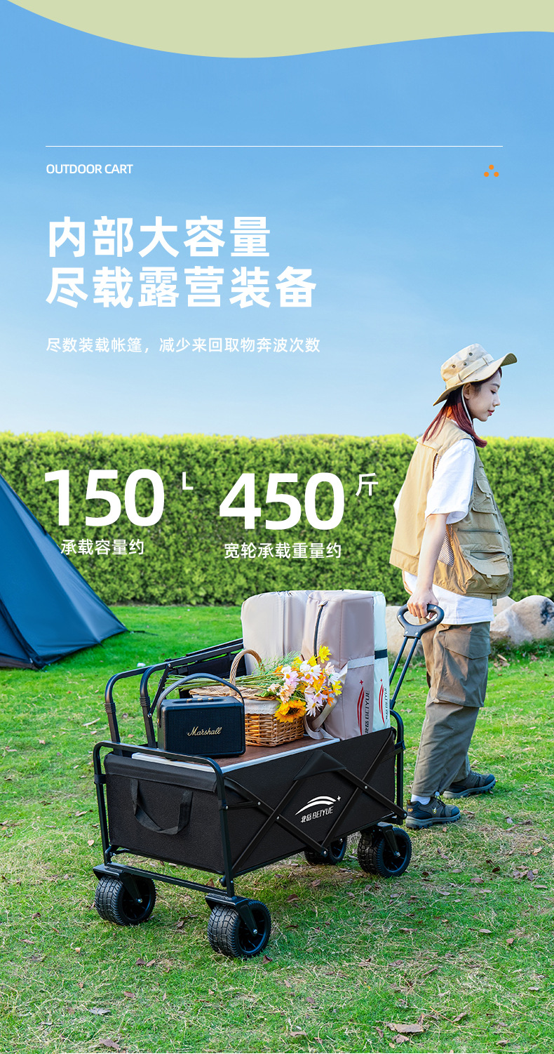 캠핑카 야외 접이식 트롤리 대형 캠프 자동차 피크닉 자동차 트레일러 캠핑 핸드 트롤리 스톨 트롤리