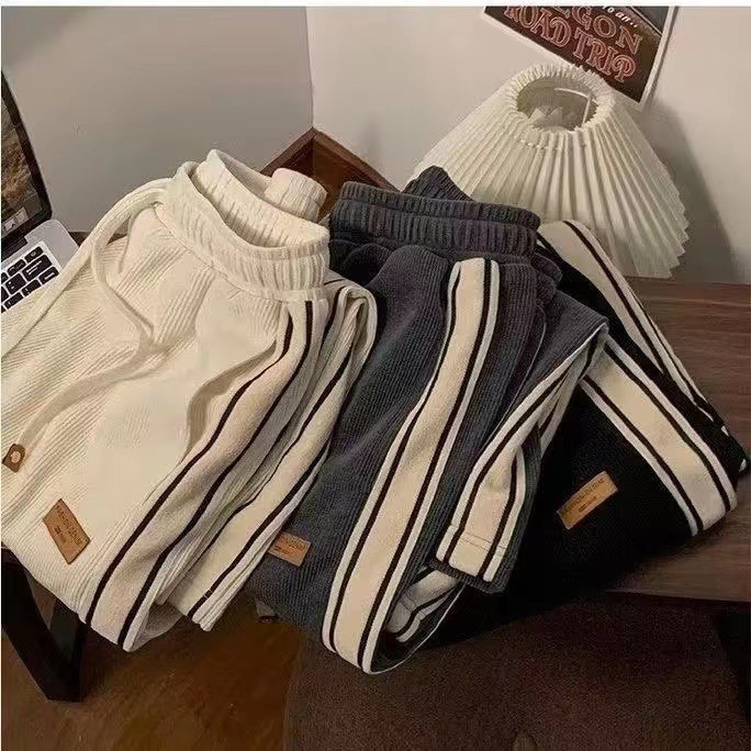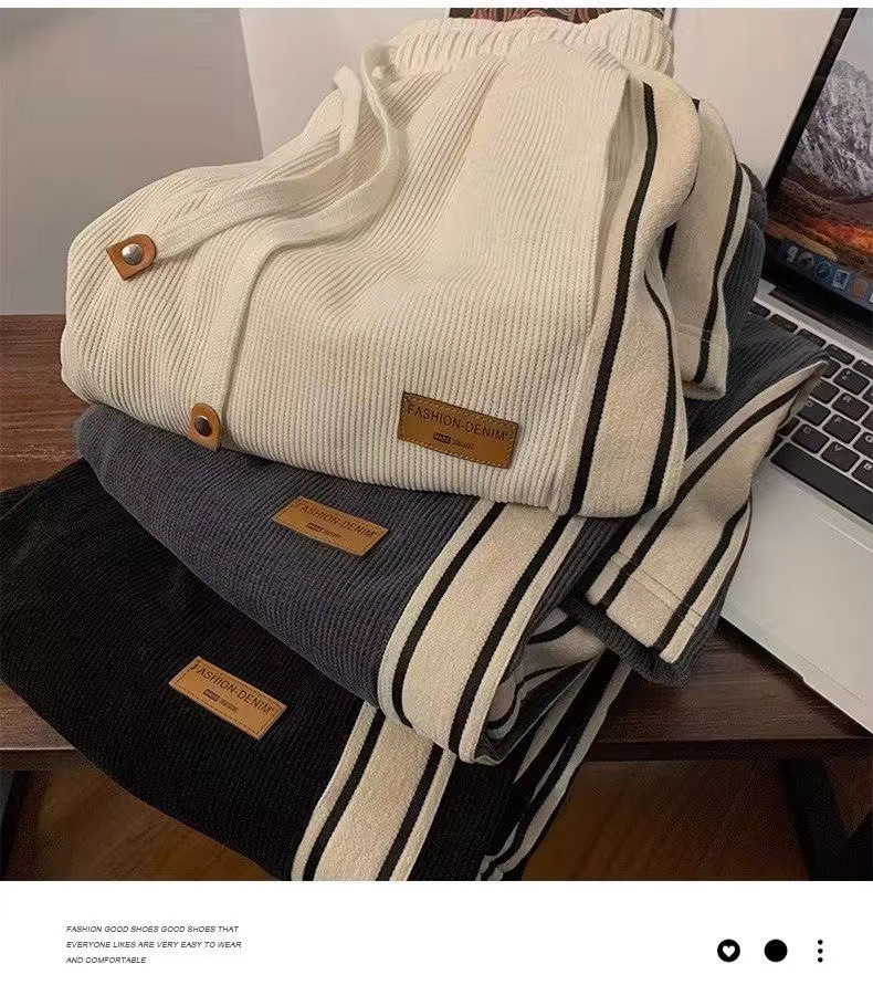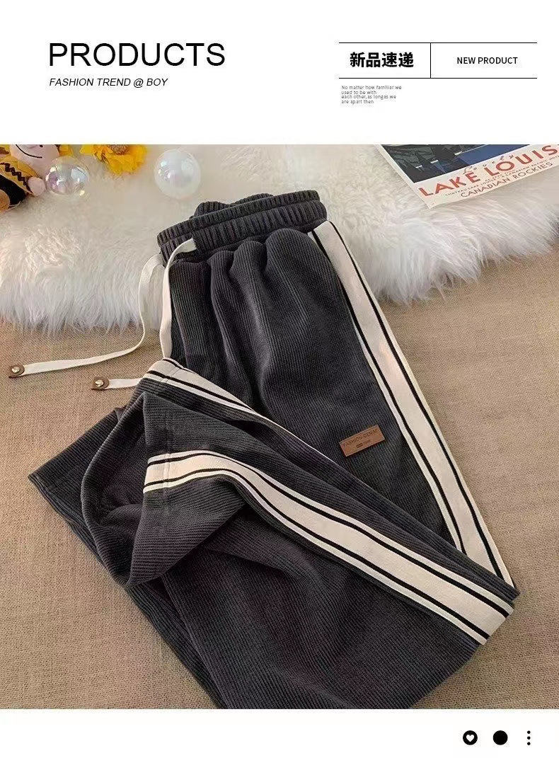 코듀로이 바지 남자 봄과 가을 청소년 느슨한 스트레이트 와이드 레그 바지 유행 소년 스포츠 캐주얼 바지 남자스토어 가기