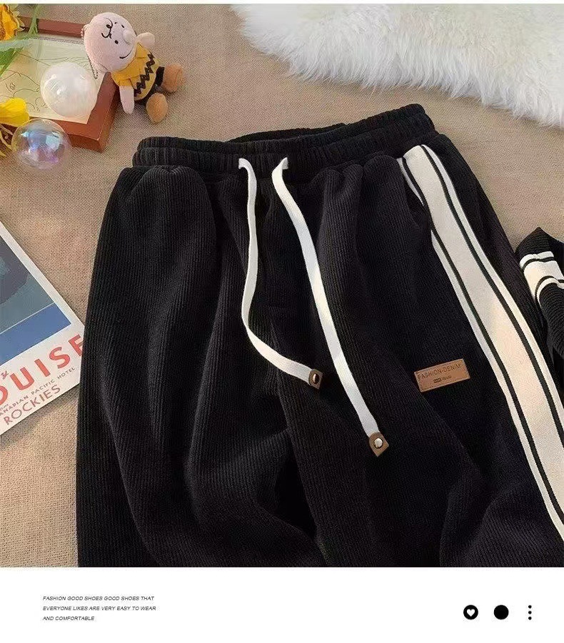 코듀로이 바지 남자 봄과 가을 청소년 느슨한 스트레이트 와이드 레그 바지 유행 소년 스포츠 캐주얼 바지 남자
