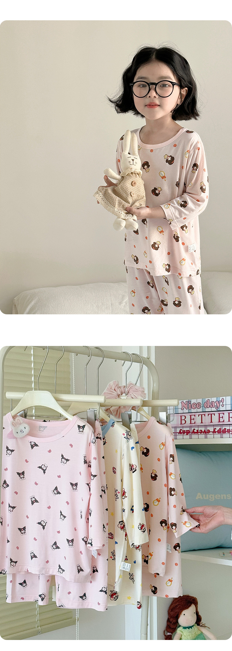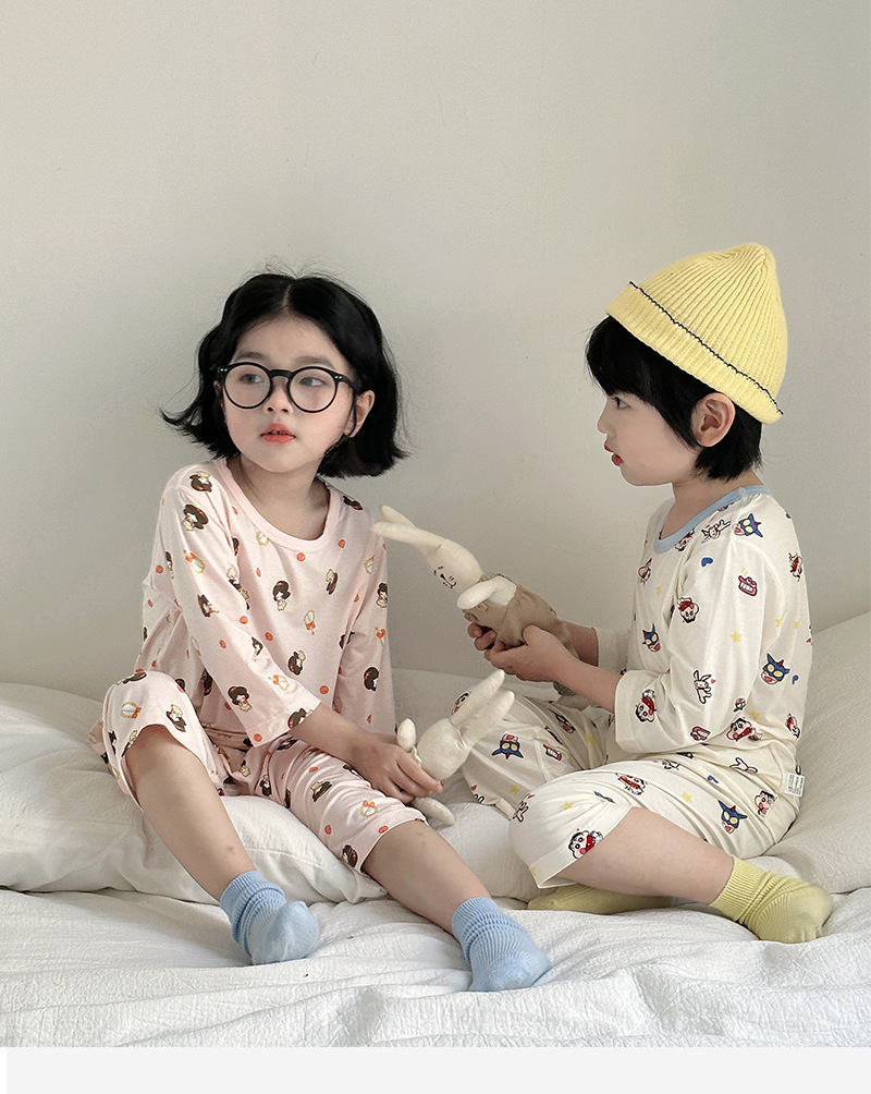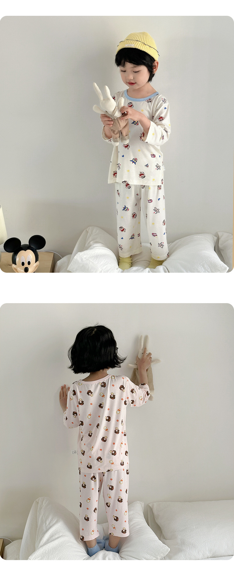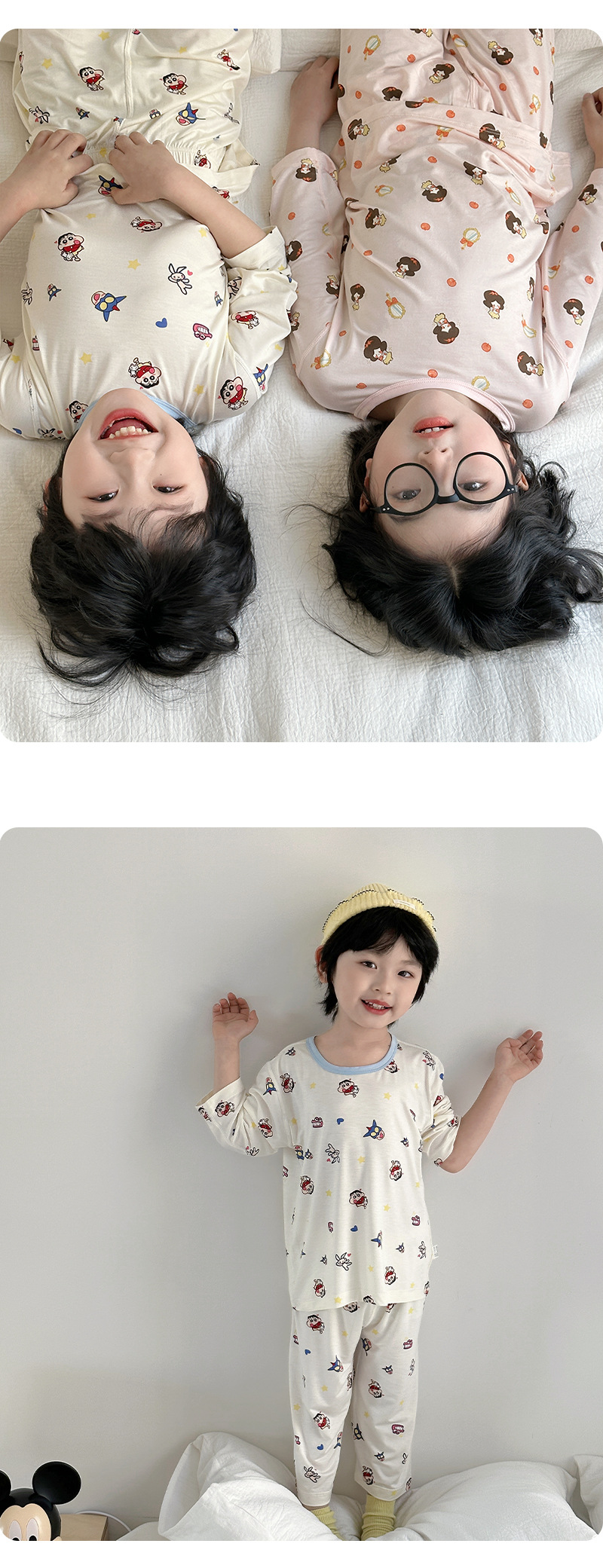 콩나물곰 라운드넥 만화 캐릭터 유코스 어린이 홈웨어 잠옷 세트 2026 봄여름 신상 루즈핏 긴팔 바지스토어 가기