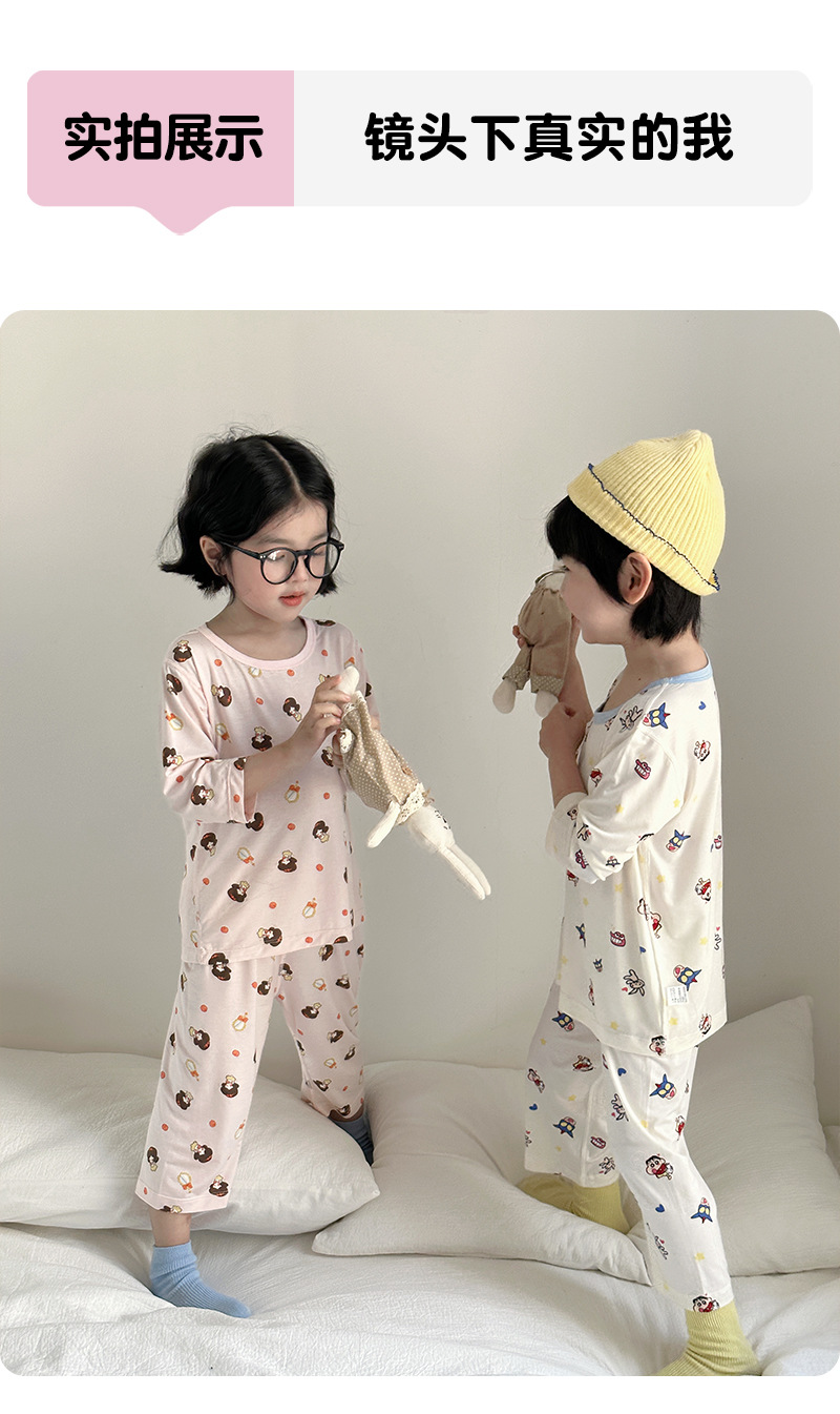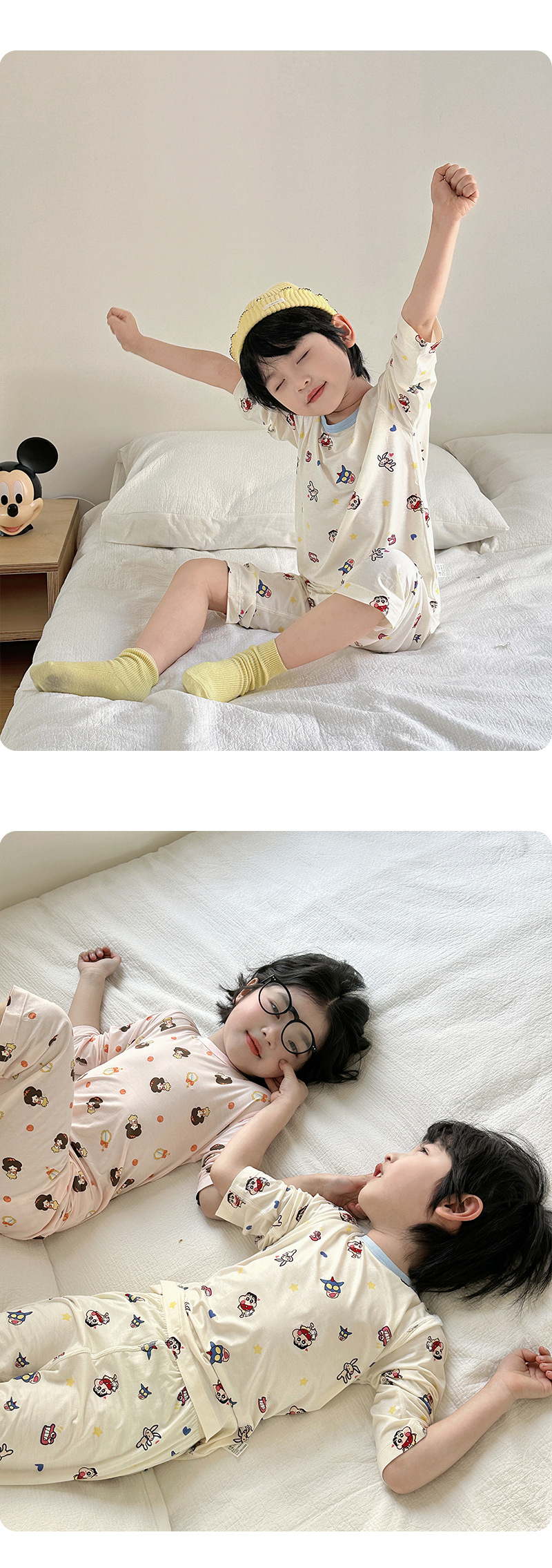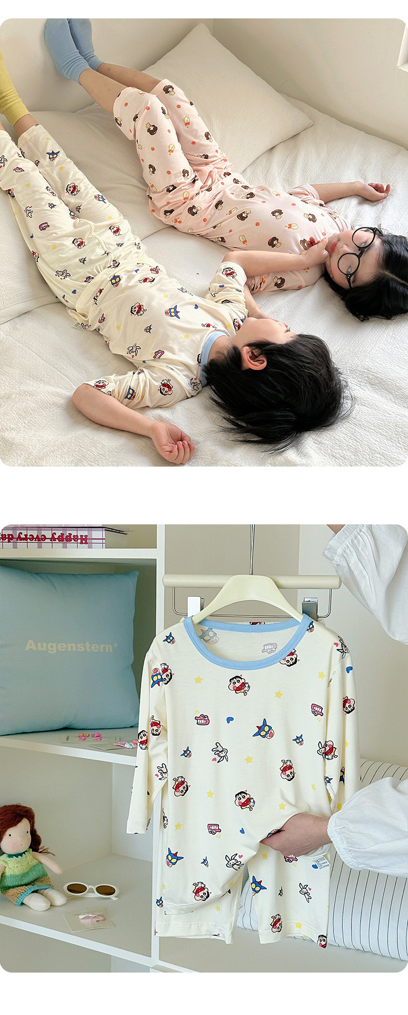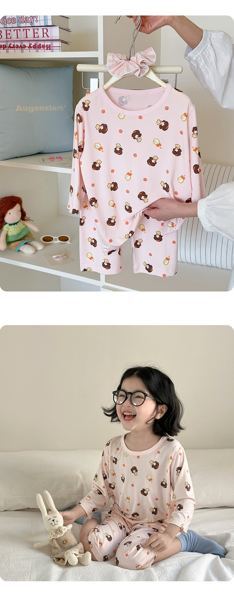콩나물곰 라운드넥 만화 캐릭터 유코스 어린이 홈웨어 잠옷 세트 2026 봄여름 신상 루즈핏 긴팔 바지스토어 가기