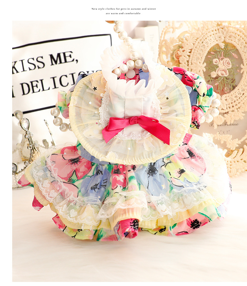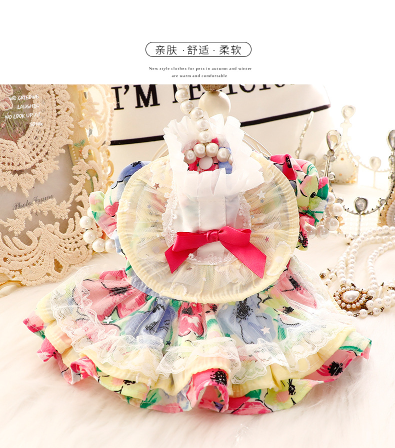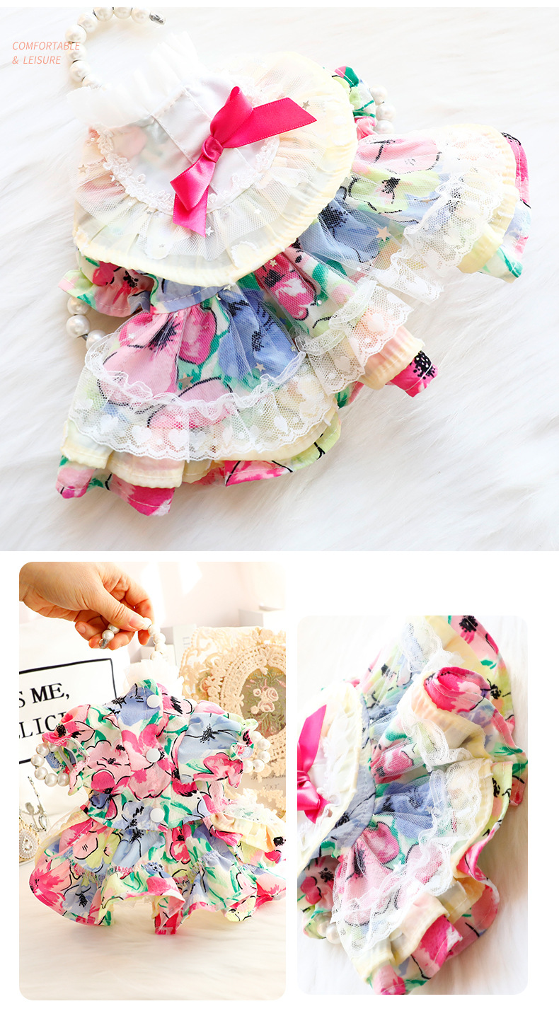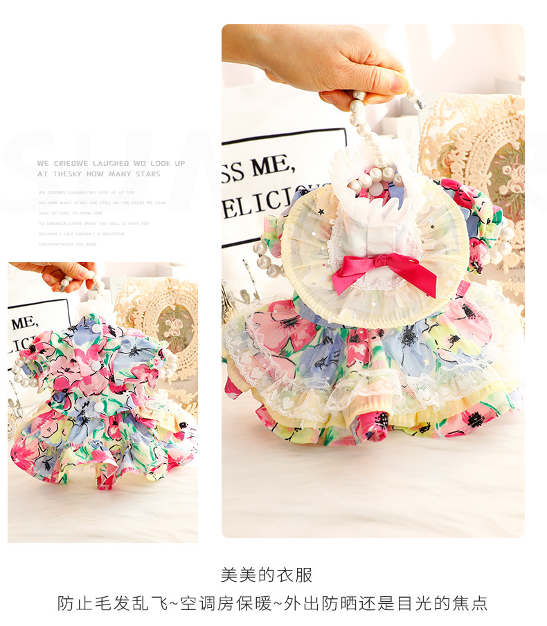 개 옷 봄과 여름 원피스 얇은 고양이 공주 원피스 모네 정원 로리타 작은 개 테디 애완 동물 6642