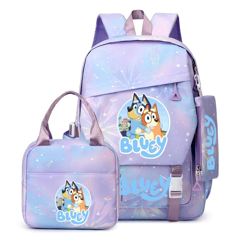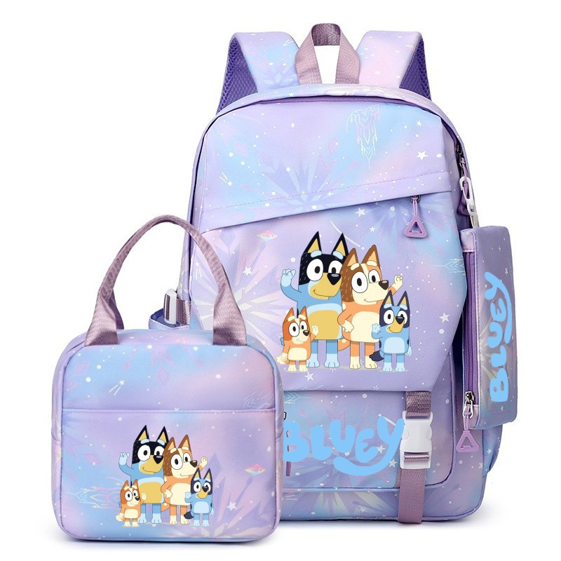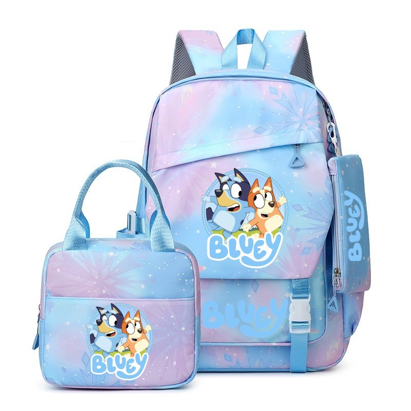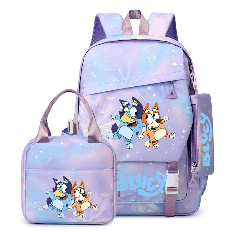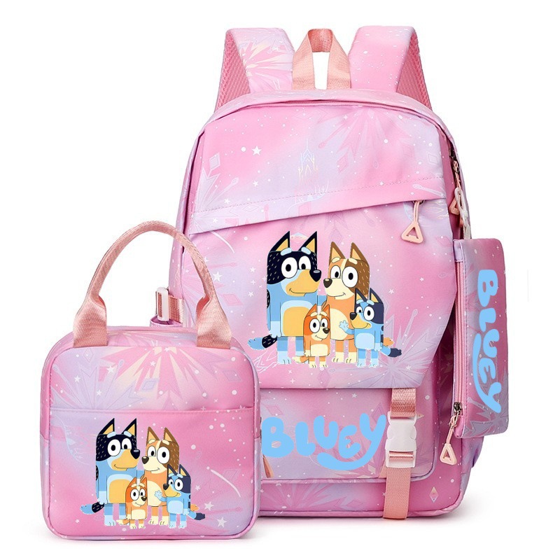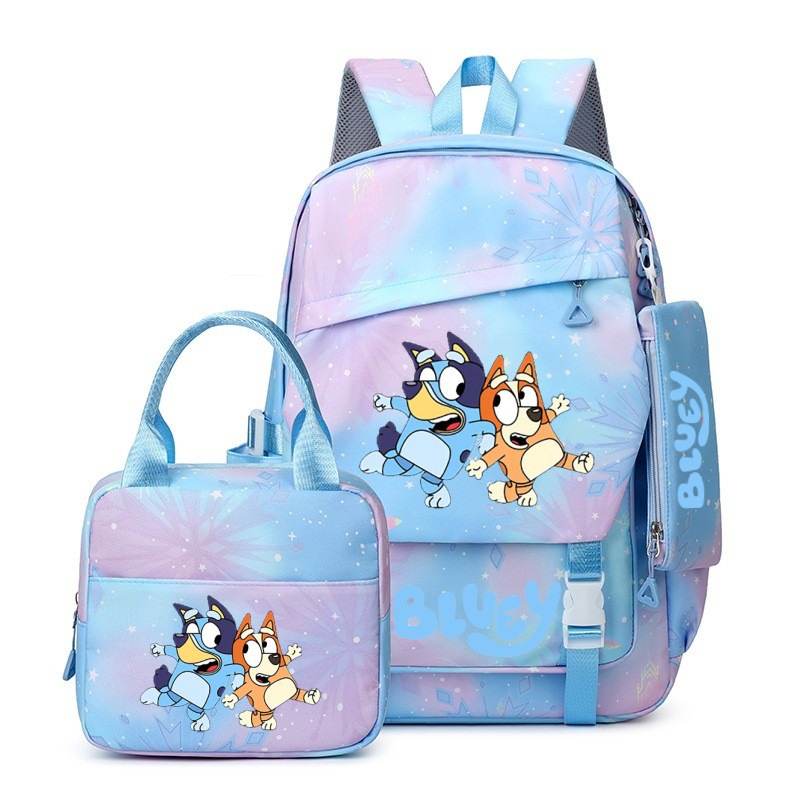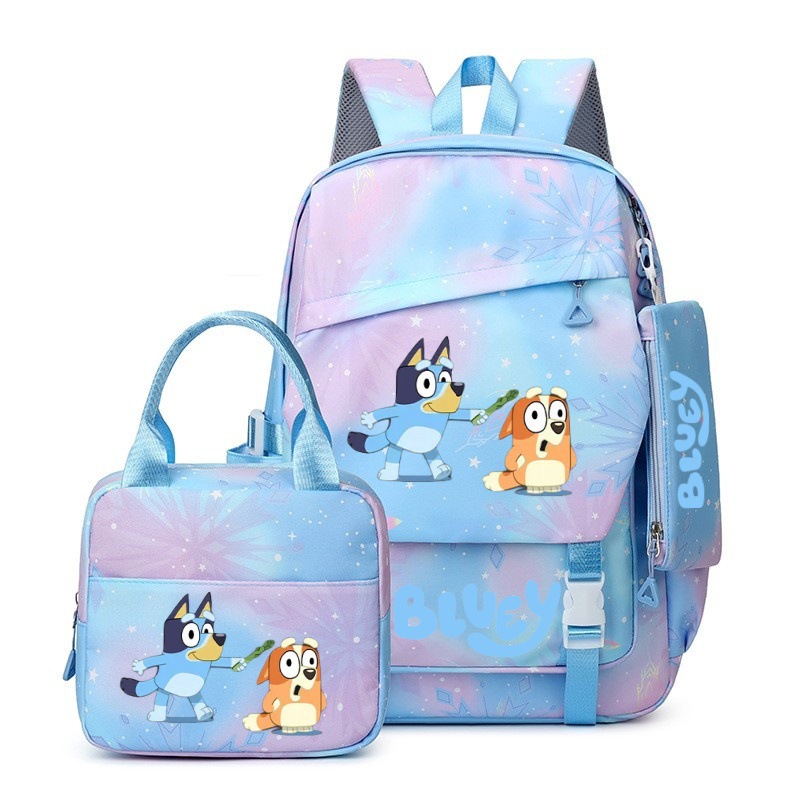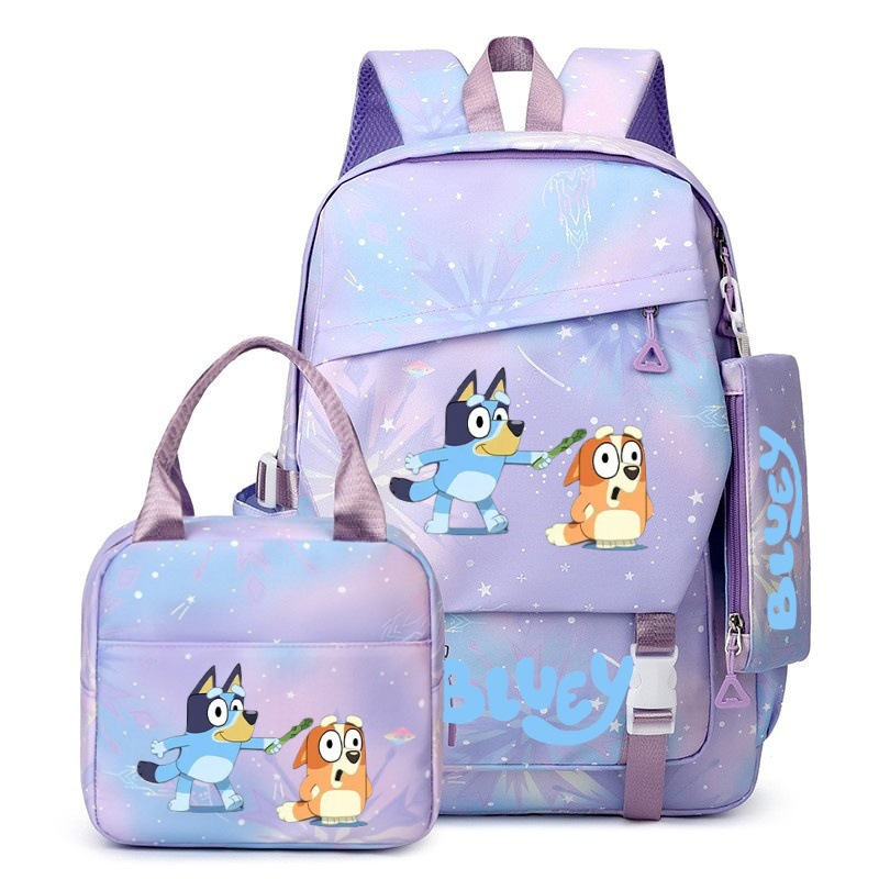 국경 간 새로운 Bluey Bluey Schoolbag 초등 및 중등 학교 학생을위한 3 종 경량 어깨 야외 트렌디 배낭스토어 가기