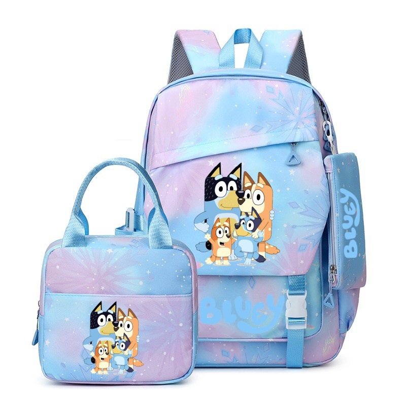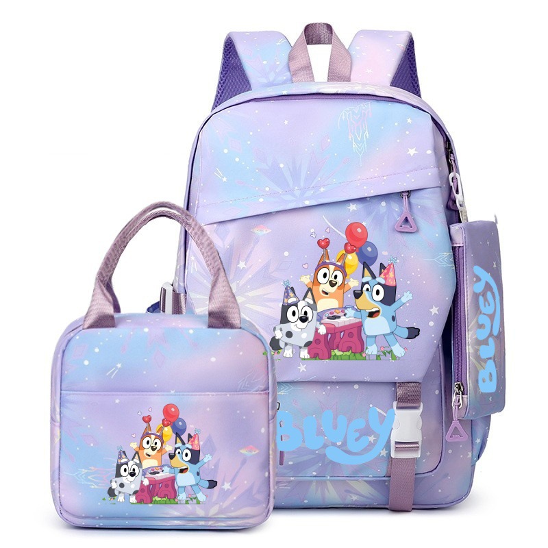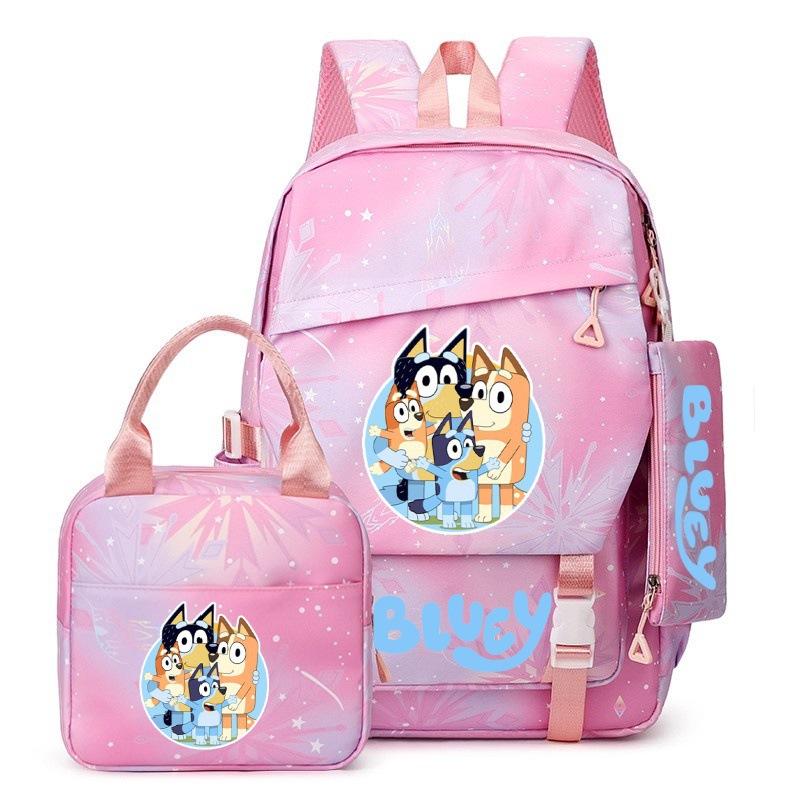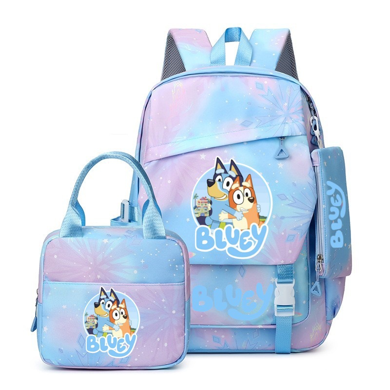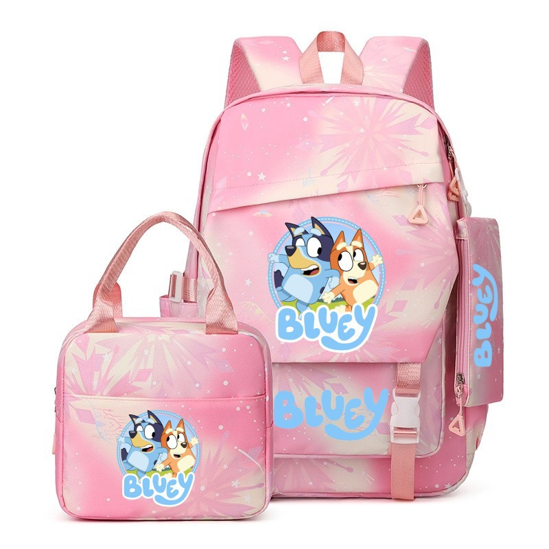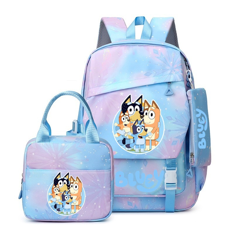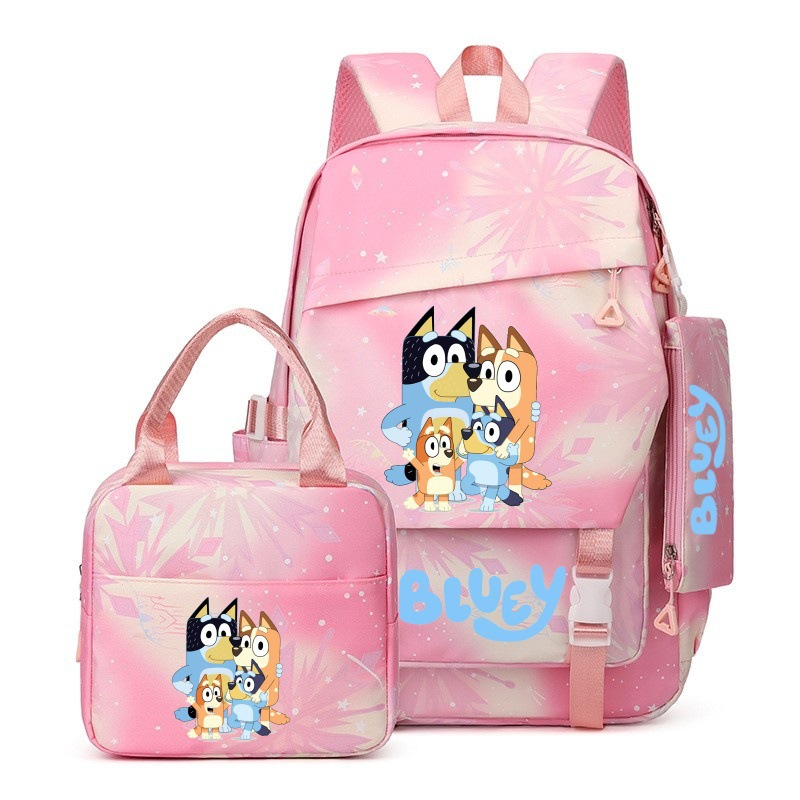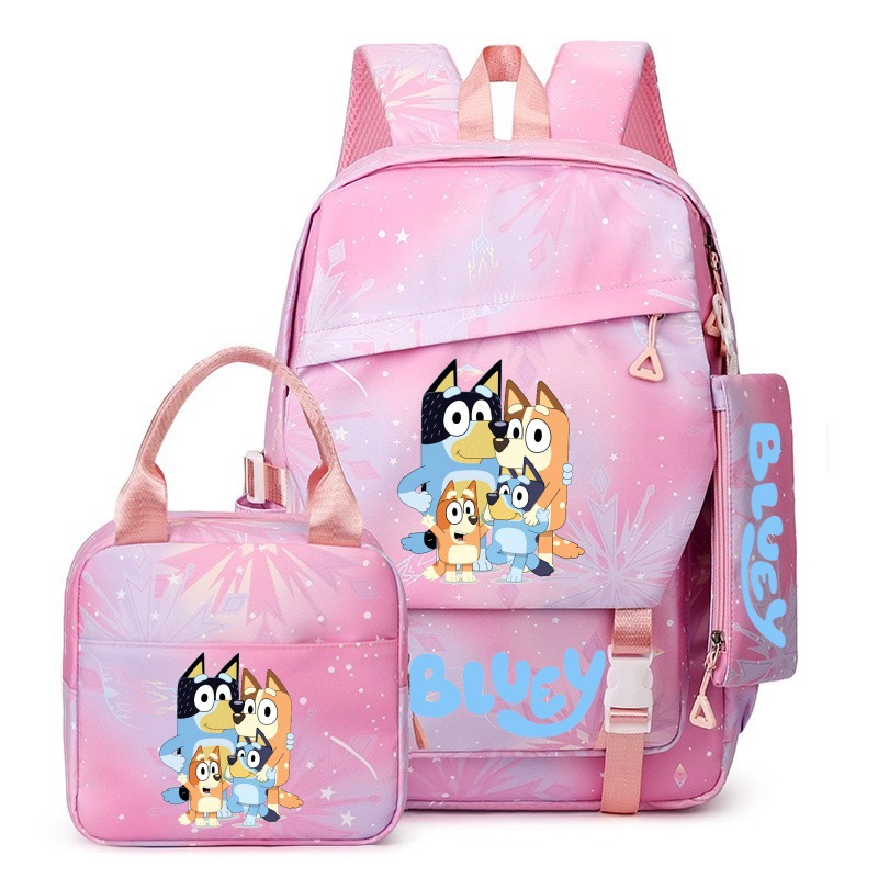 국경 간 새로운 Bluey Bluey Schoolbag 초등 및 중등 학교 학생을위한 3 종 경량 어깨 야외 트렌디 배낭스토어 가기