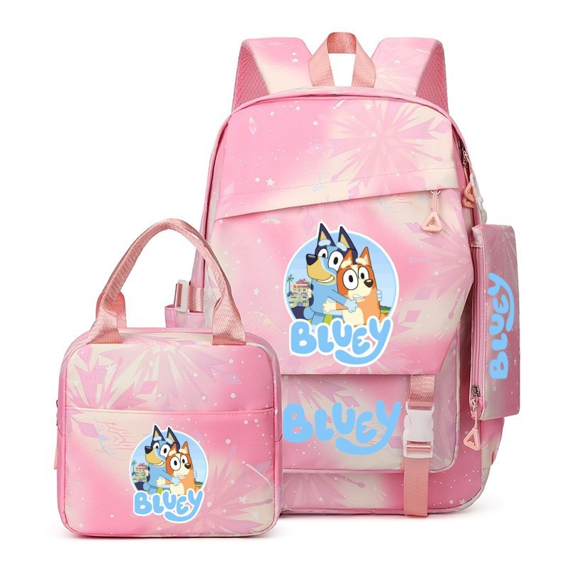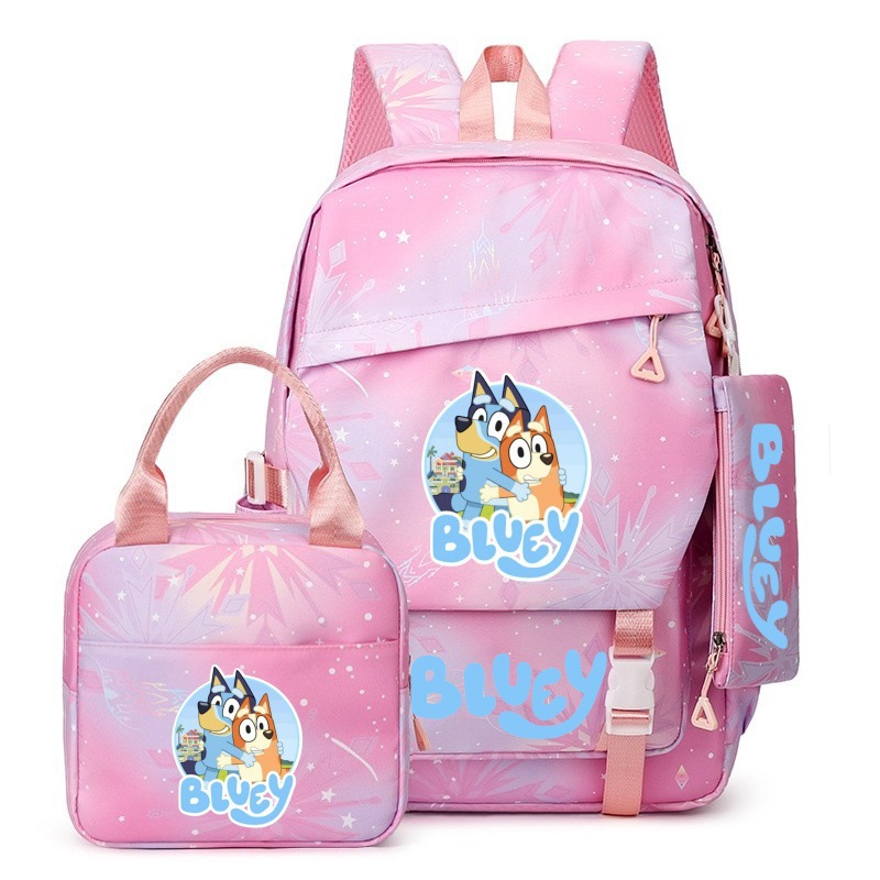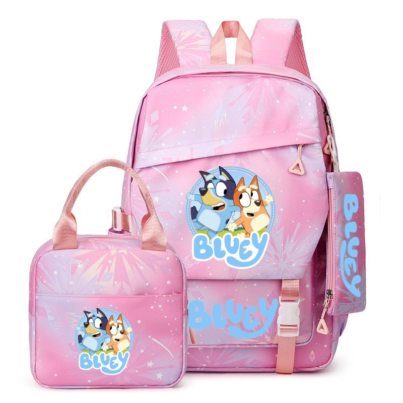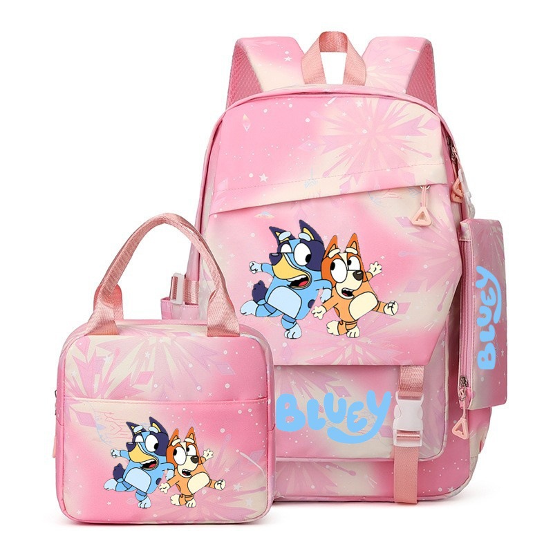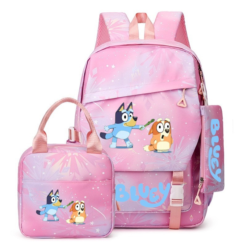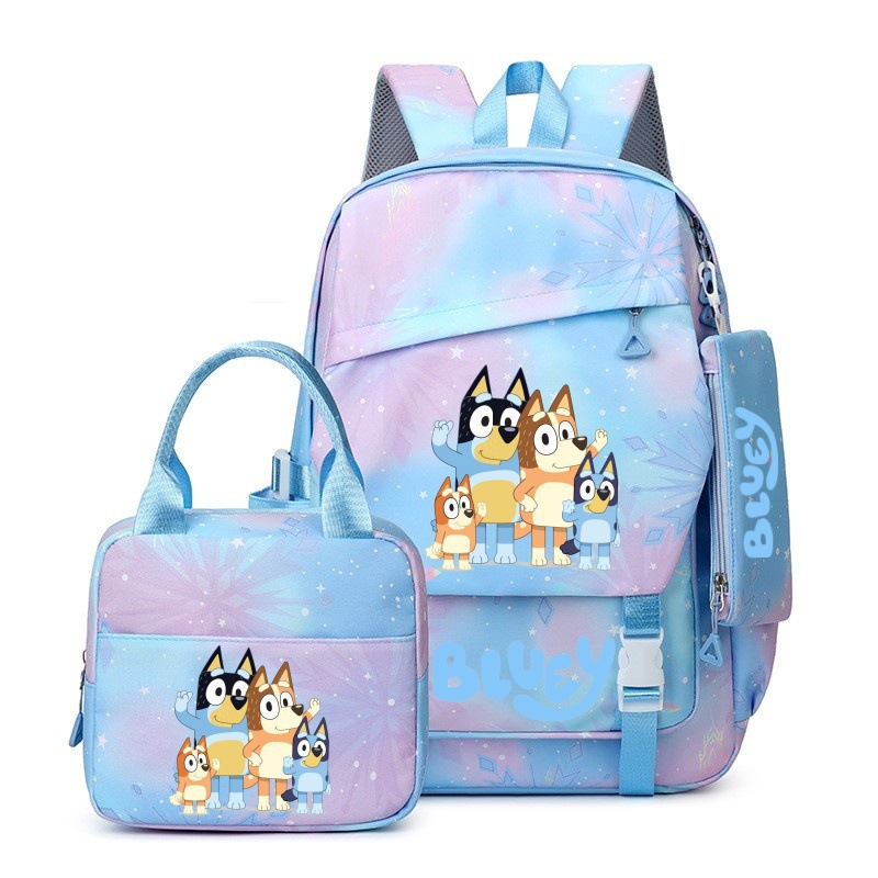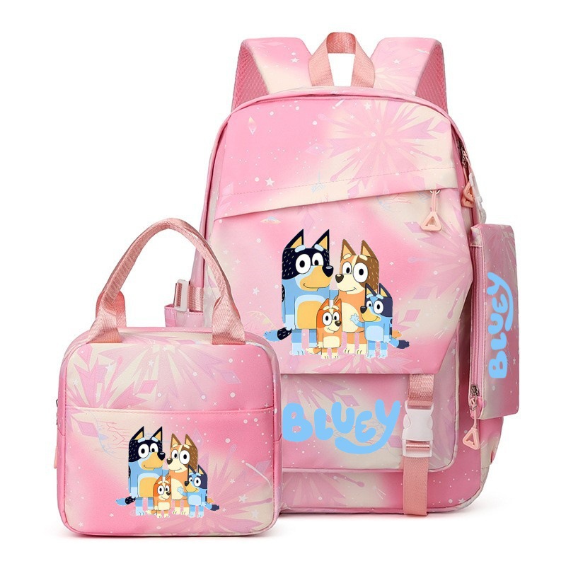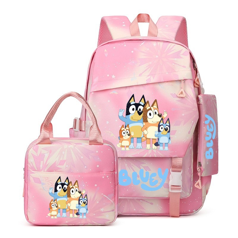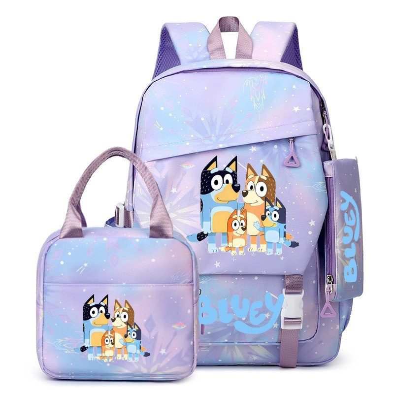 국경 간 새로운 Bluey Bluey Schoolbag 초등 및 중등 학교 학생을위한 3 종 경량 어깨 야외 트렌디 배낭스토어 가기