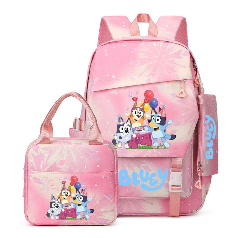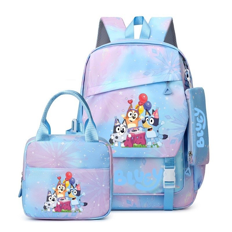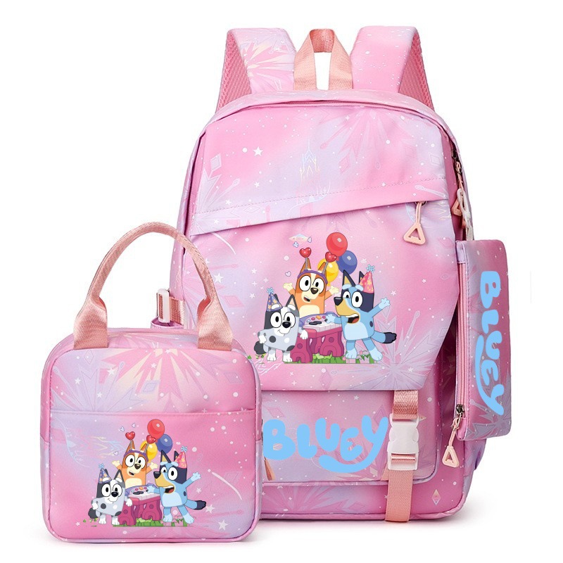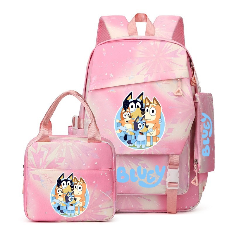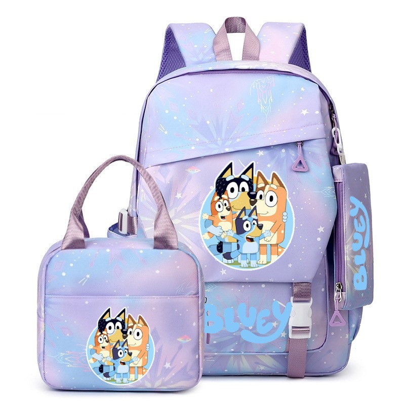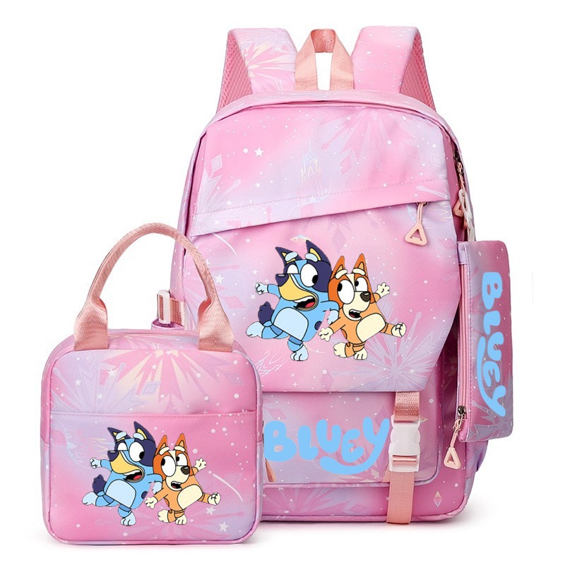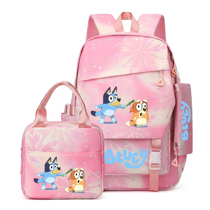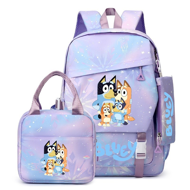 국경 간 새로운 Bluey Bluey Schoolbag 초등 및 중등 학교 학생을위한 3 종 경량 어깨 야외 트렌디 배낭스토어 가기