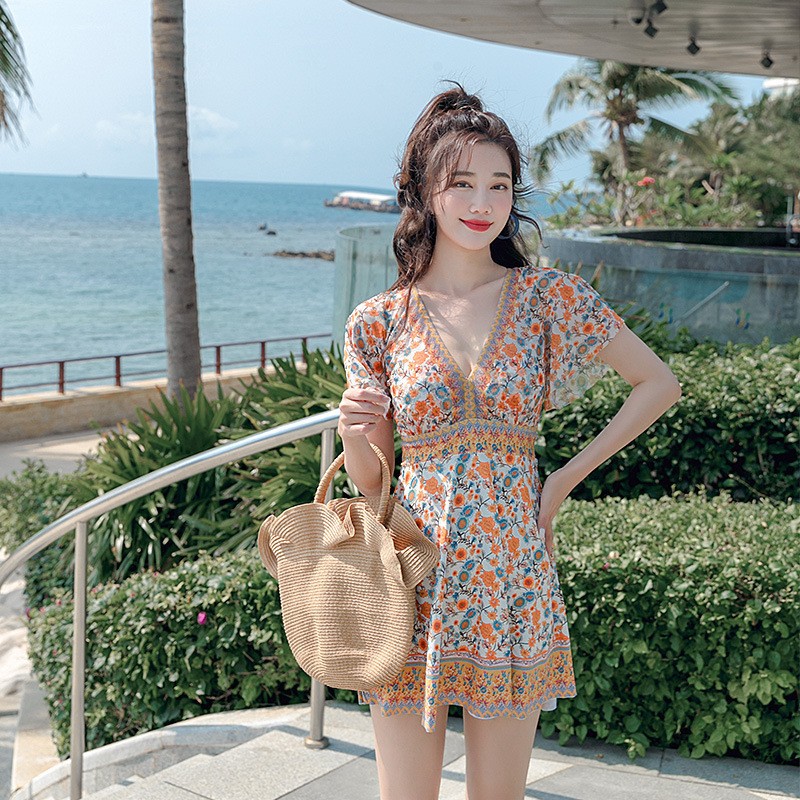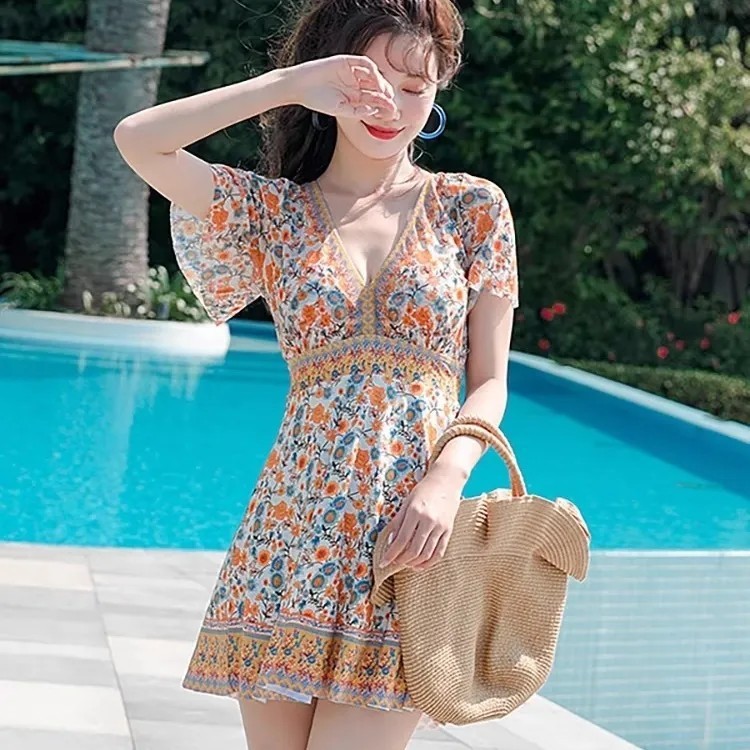 뚱뚱한 여성을 위한 플러스 사이즈 수영복, 슬리밍 배 커버 스커트 스타일 스플릿 복서 팬티, 새로운 스타일의 언더와이어 푸시업 온천 수영복스토어 가기