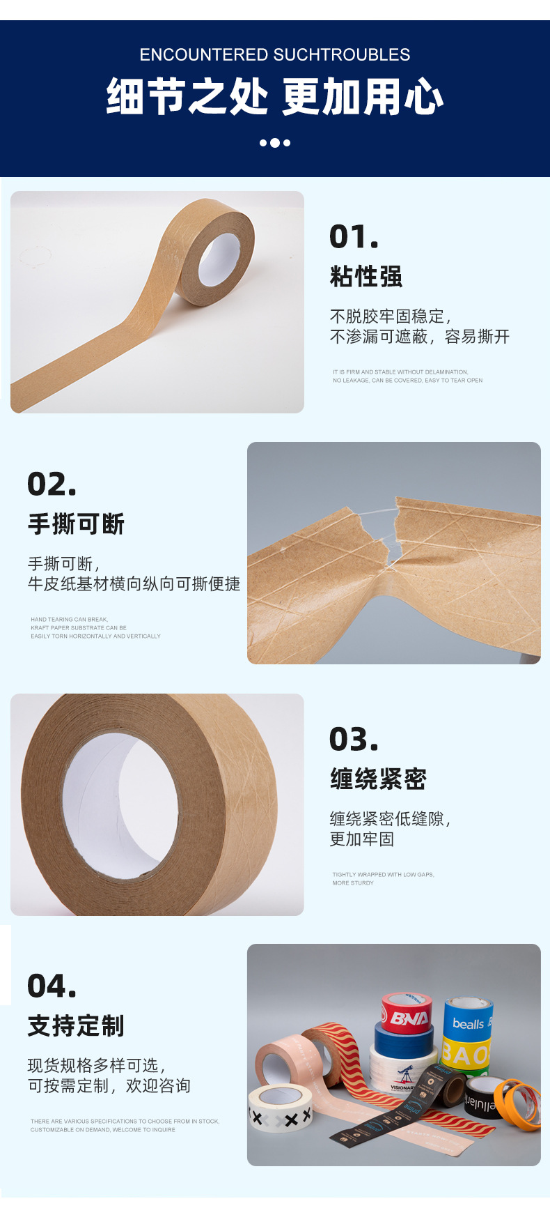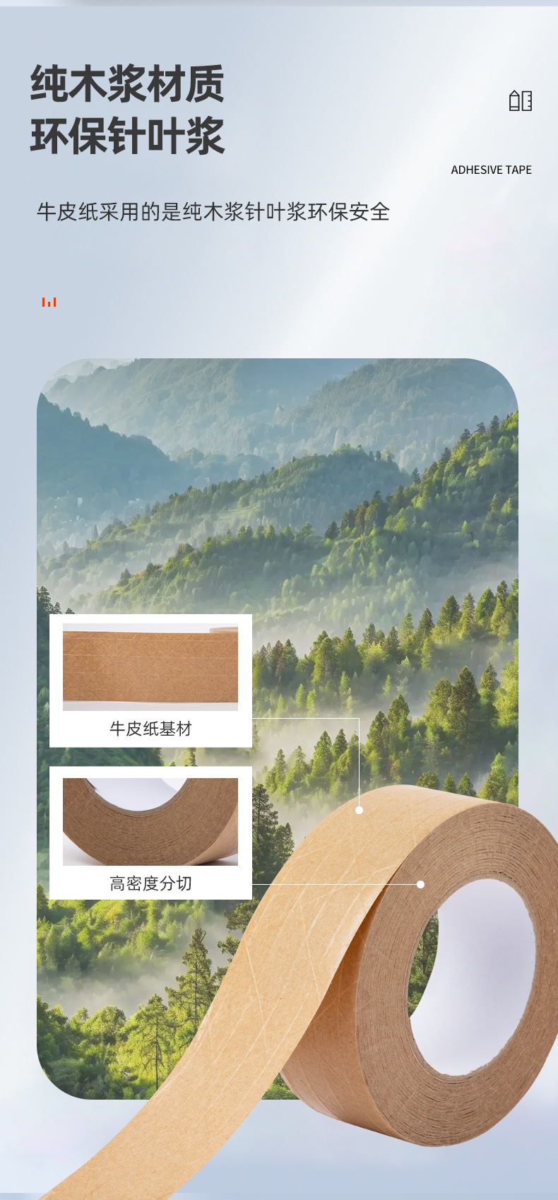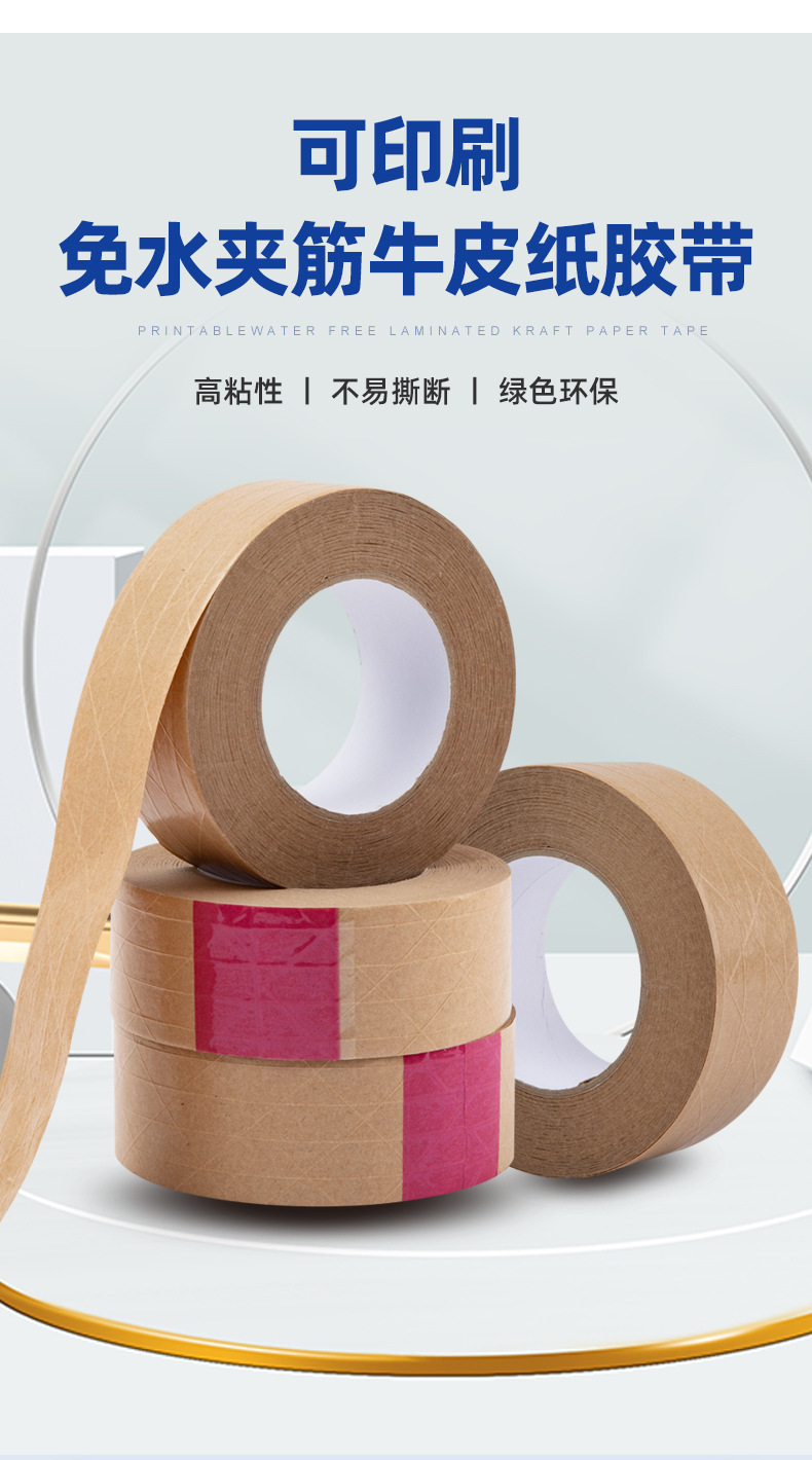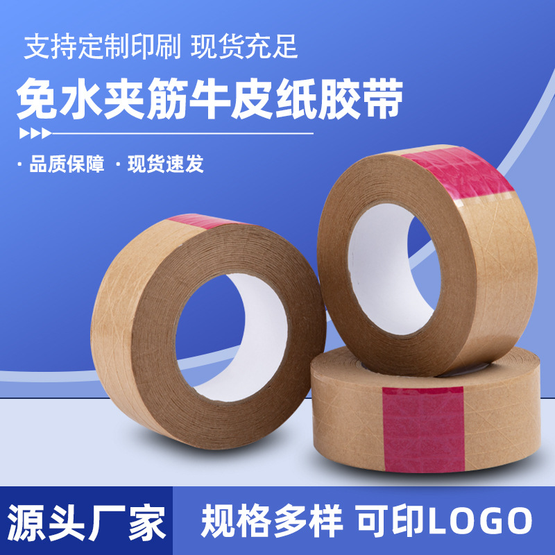 파이버 스레드 클램프 리브 포장 카톤 씰링 카톤 씰링 쉬운 대형 롤 찢기 쉬운 테이프가있는 고점도 물없는 크래프트 종이 테이프스토어 가기