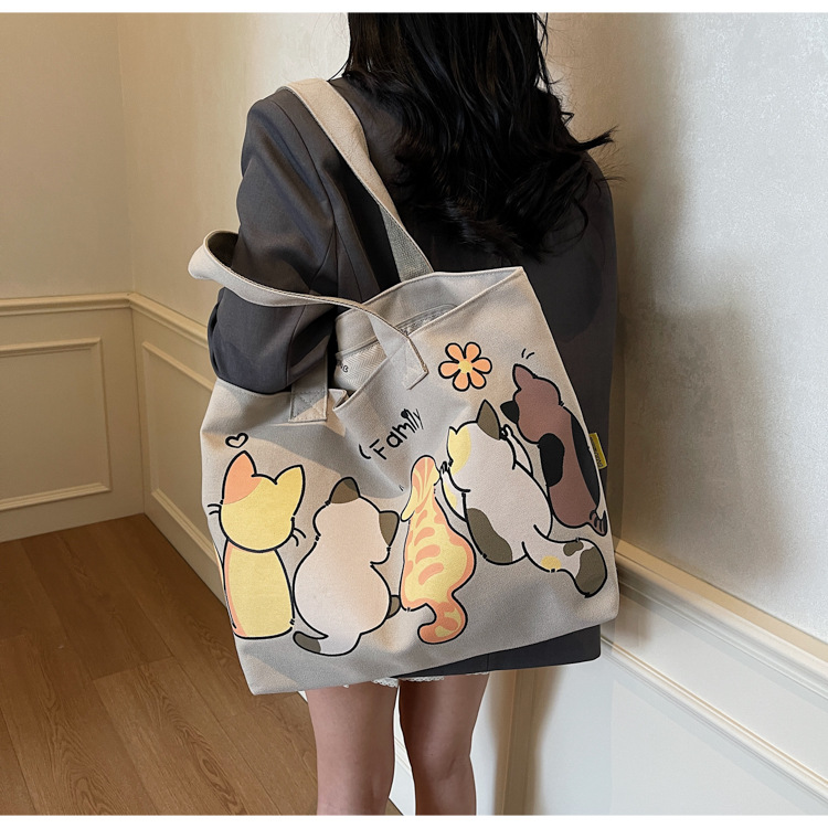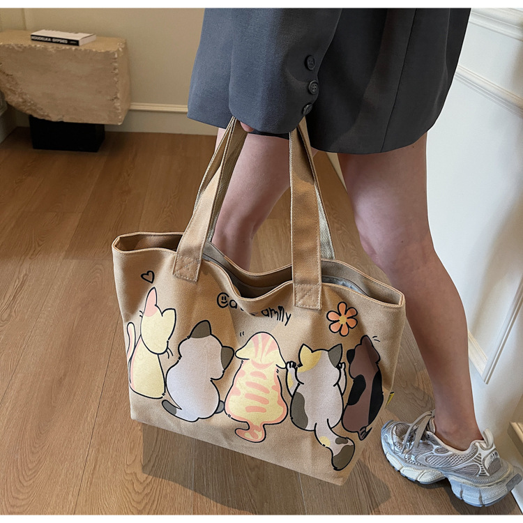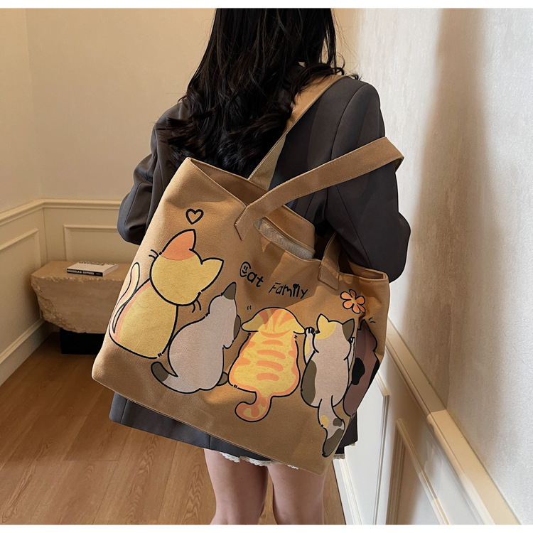 인기있는 대용량 토트 백 여성 2025 새로운 한국 스타일 예술적 캔버스 가방 학생 클래스 숄더 백