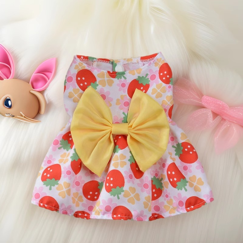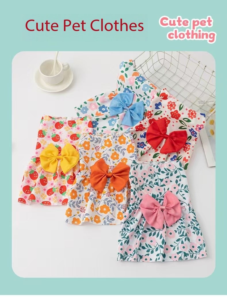 인기 애완동물 옷 강아지 의류 고양이 의상 스커트 중소형견 꽃무늬 공주 비숑 프리제 핑크