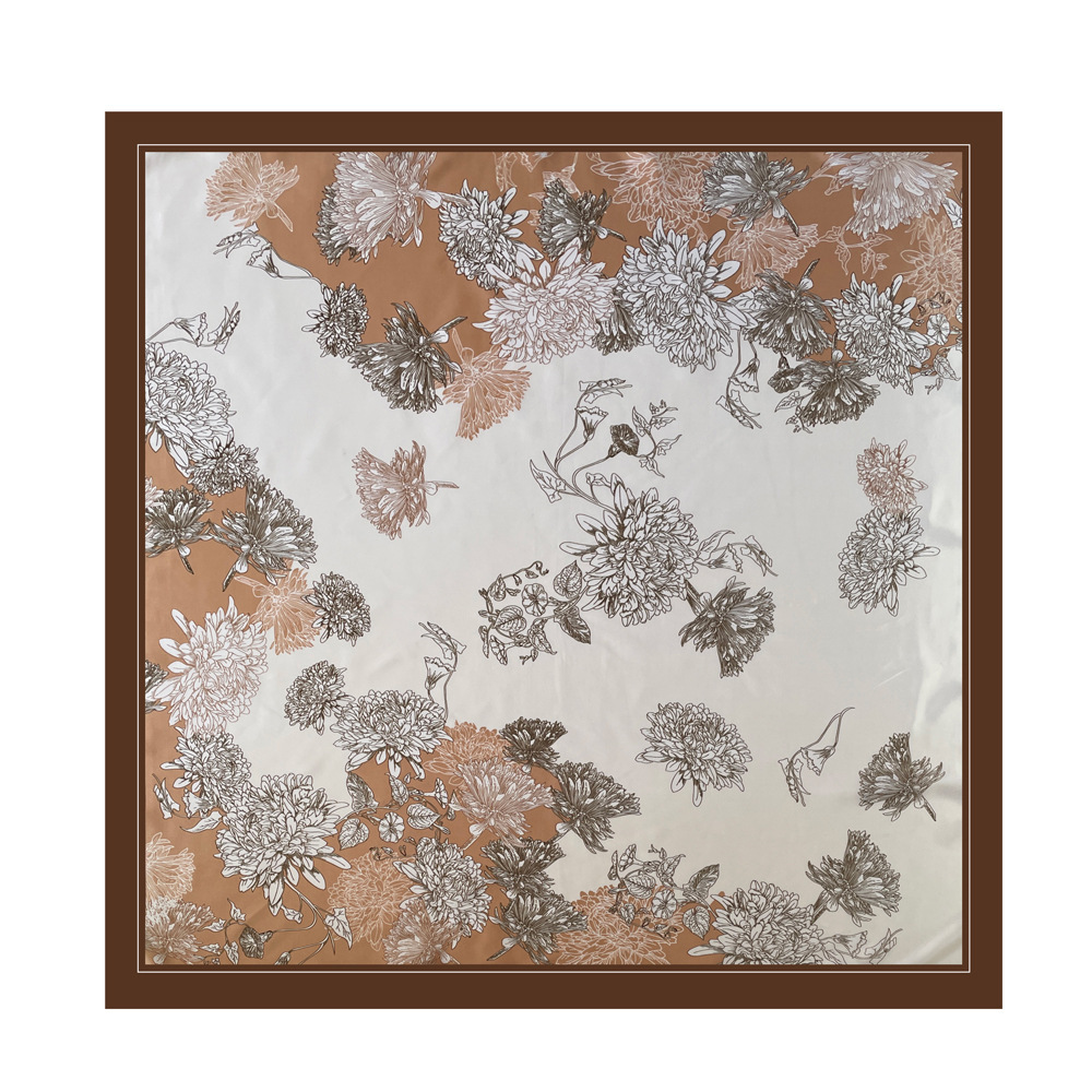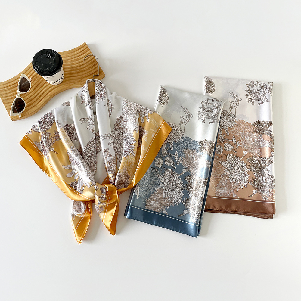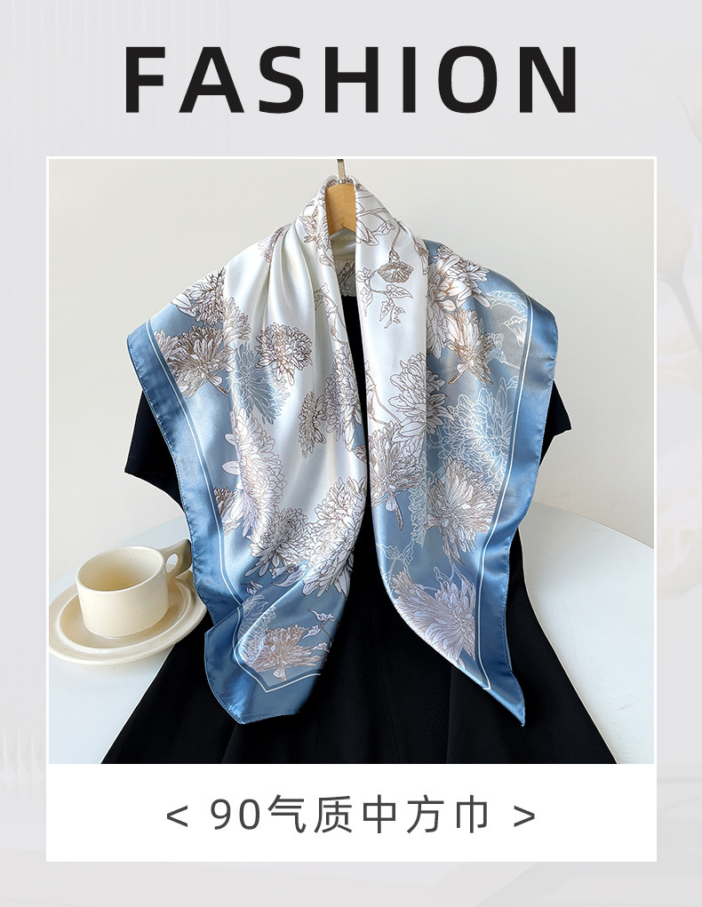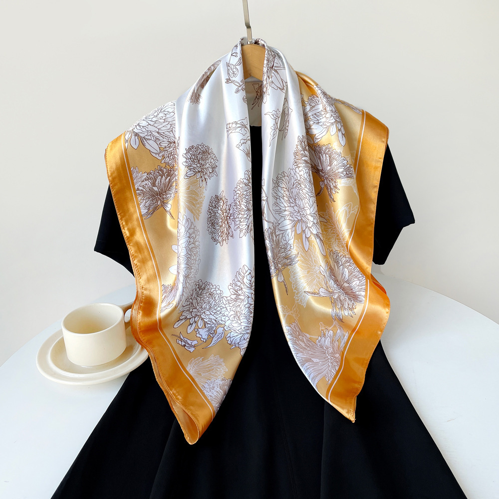 90*90cm 스카프 여성 대형 사각형 새 인쇄 복고풍 터번 국경 중동 새틴 스카프 도매