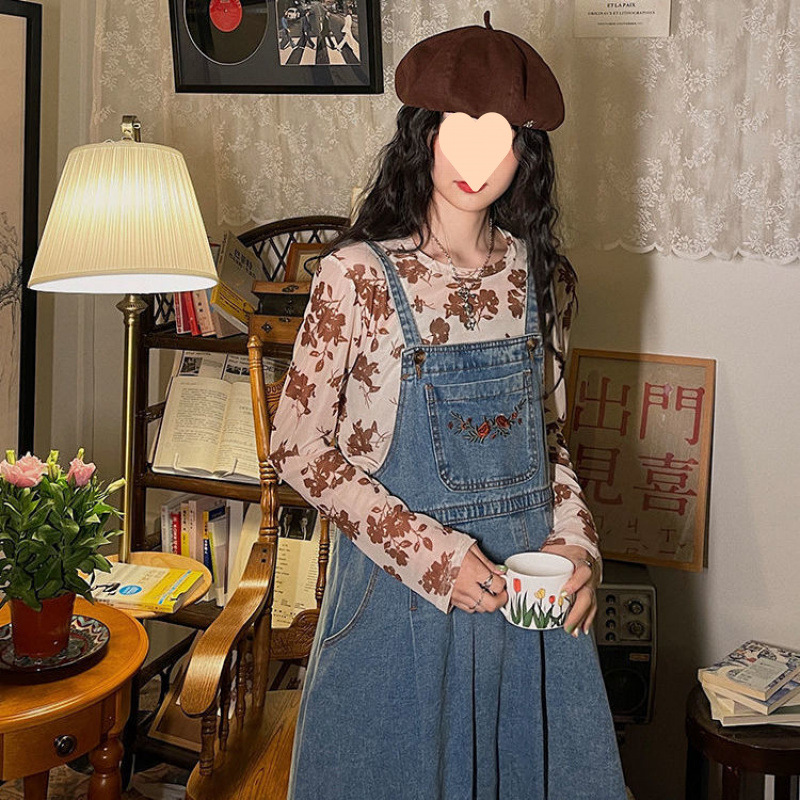 빈티지 로즈 플라워 수 놓은 로즈 원피스 2024 여름 새로운 도착 스트랜드 원피스 올 매치 데님 원피스스토어 가기