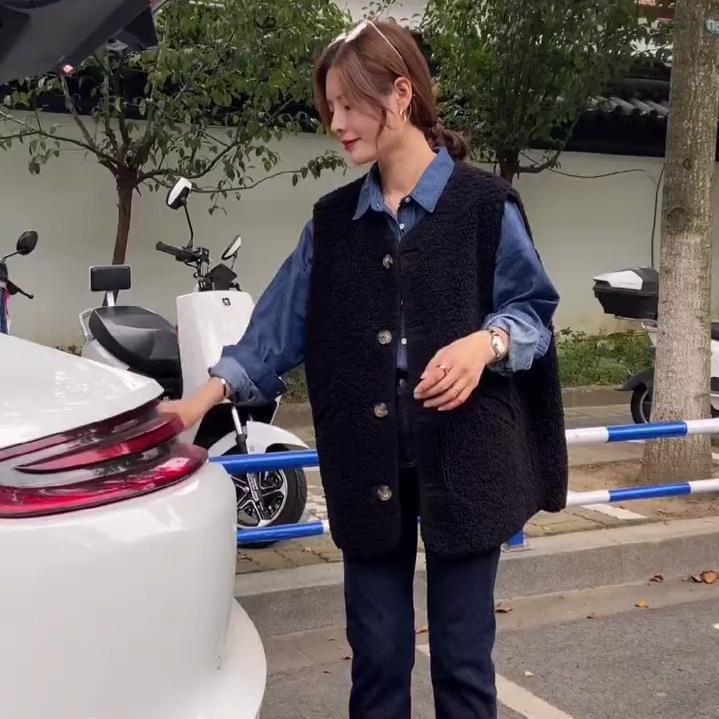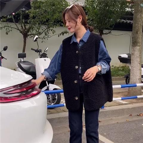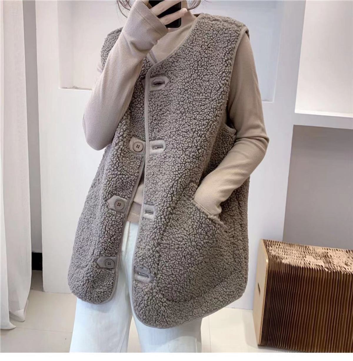 가을과 겨울을위한 여성 조끼 재킷 새로운 가짜 양고기 모피 원피스 느슨한 한국 스타일 민소매 조끼 트렌디 아우터 웨어스토어 가기