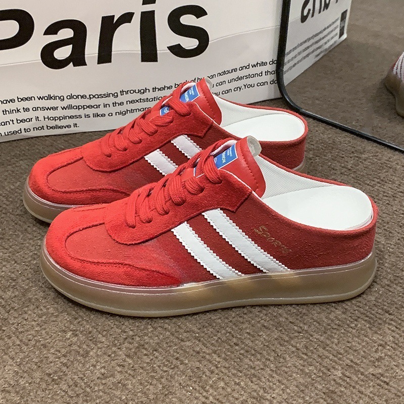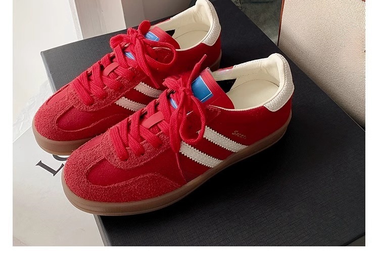 노크 부드러운 소 가죽! 정품 가죽 레트로 레드 독일 트레이닝 슈즈 여성 한국식 레이스 업 플랫 캐주얼 스니커즈 스포츠 포레스트 검프 슈즈스토어 가기