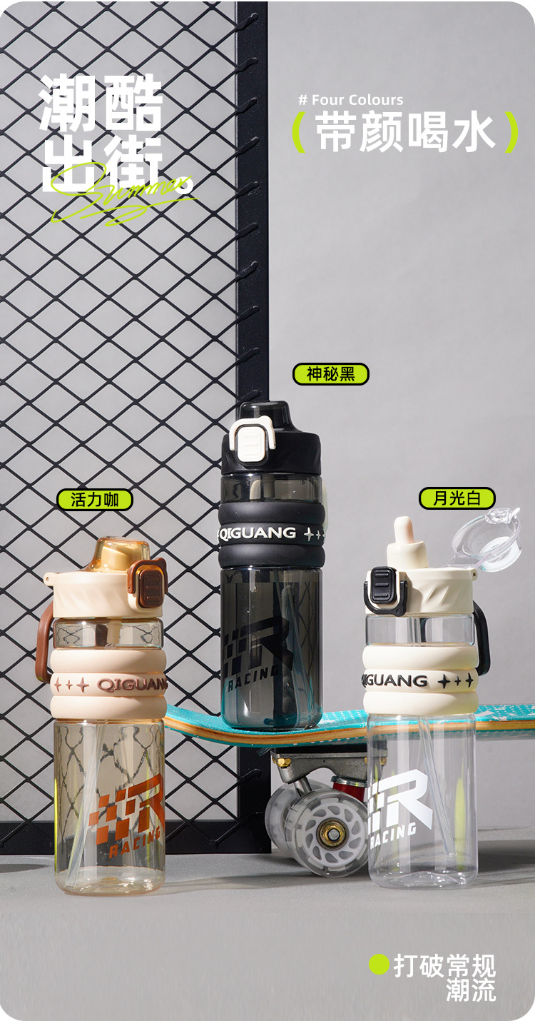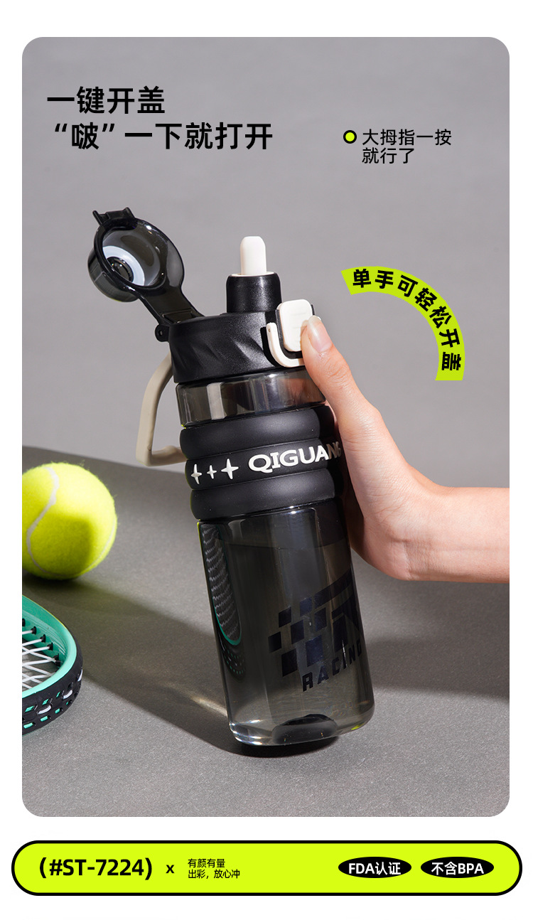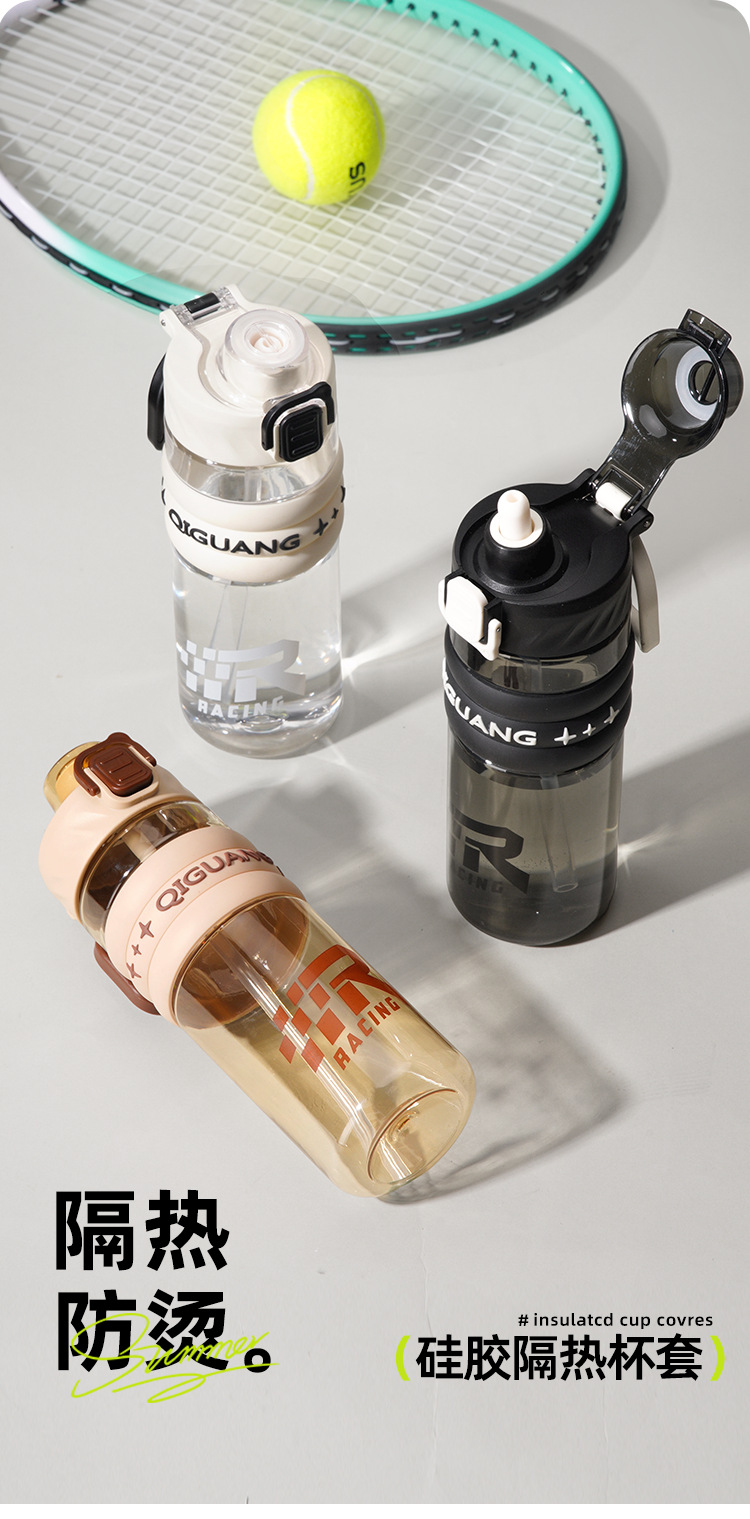 밀짚 휴대용 플라스틱 컵이 봉인 된 누출 방지 스포츠 워터 컵이있는 새로운 대용량 스포츠 워터 컵 더블 마시는 컵