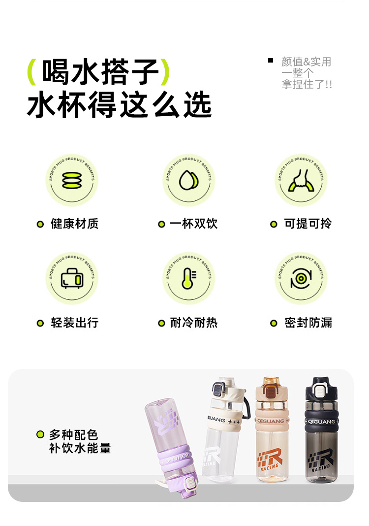 밀짚 휴대용 플라스틱 컵이 봉인 된 누출 방지 스포츠 워터 컵이있는 새로운 대용량 스포츠 워터 컵 더블 마시는 컵스토어 가기