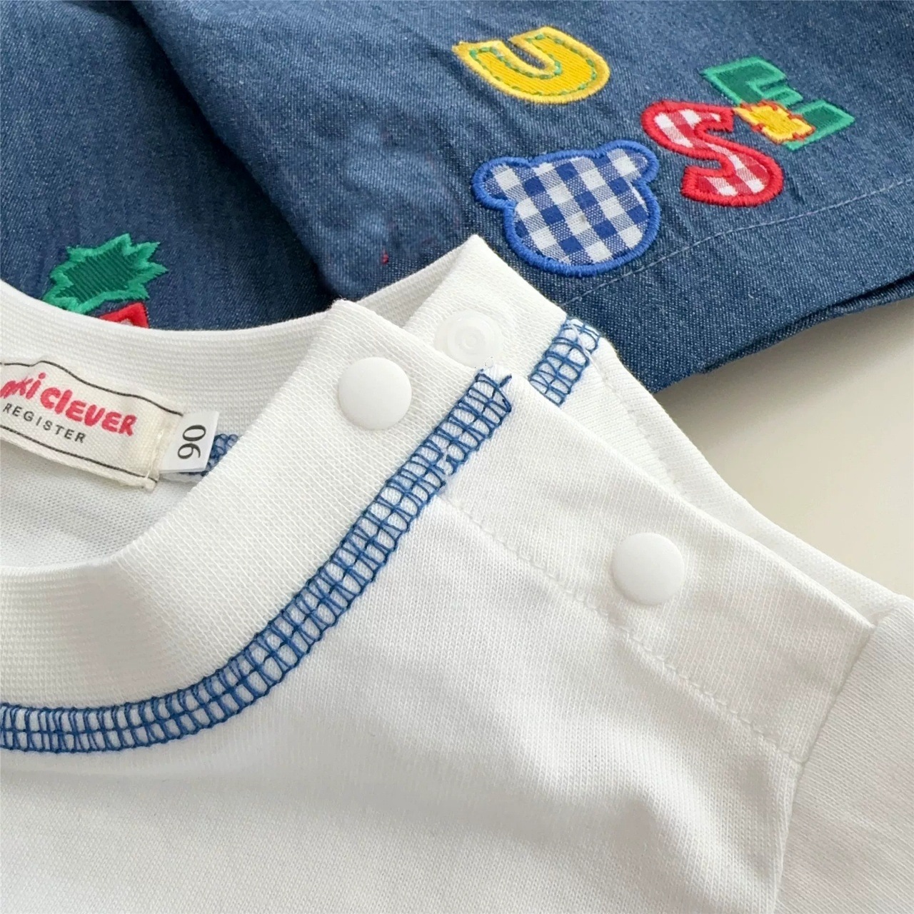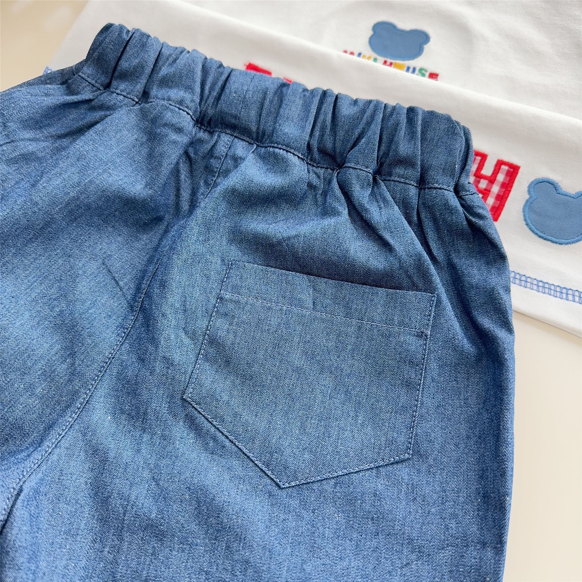 어린이 편지 반팔 세트 머리 25 여름 새 소년 소녀 만화 곰 반팔 어린이 세트 7057