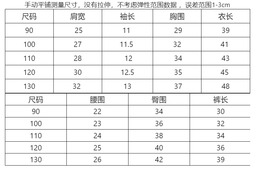 手动平铺测量尺寸,没有拉伸,不考虑弹性范围数据 ,误差范围1-3cm
