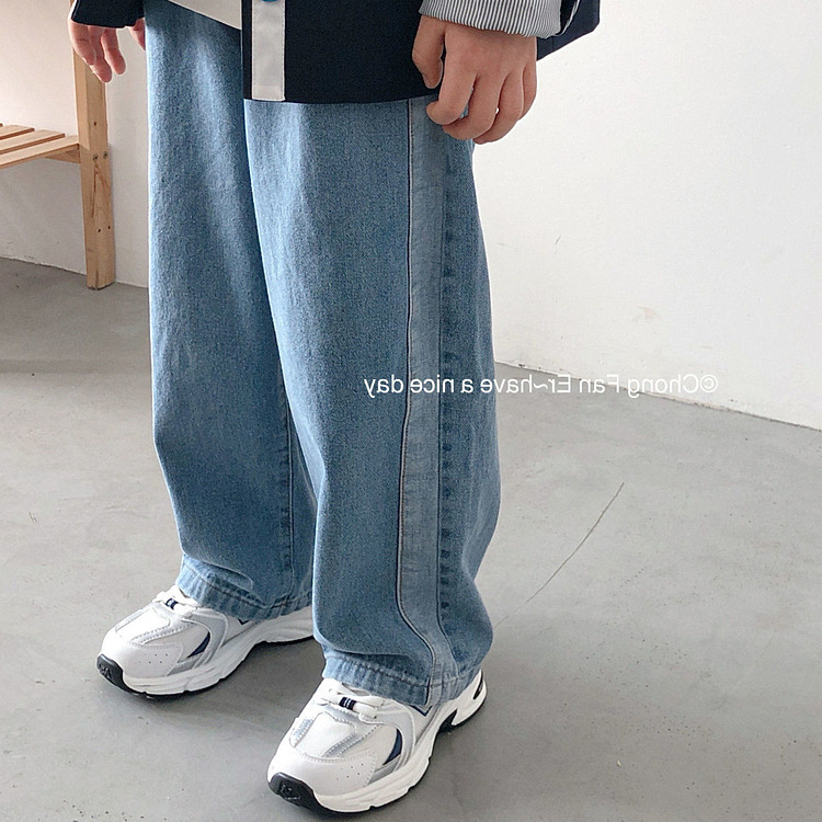 소년의 봄과 가을 스트레이트 바지 2025 새로운 한국 청바지 유행 넓은 다리 바지