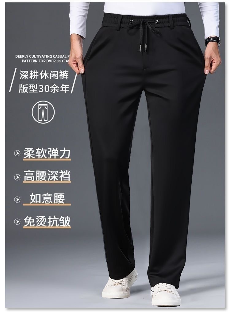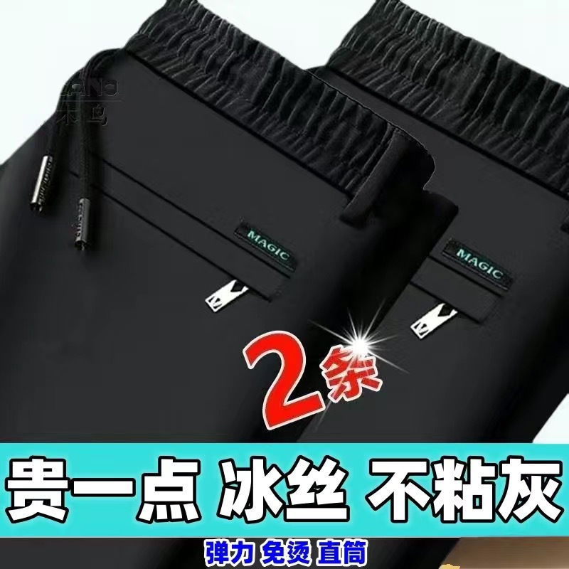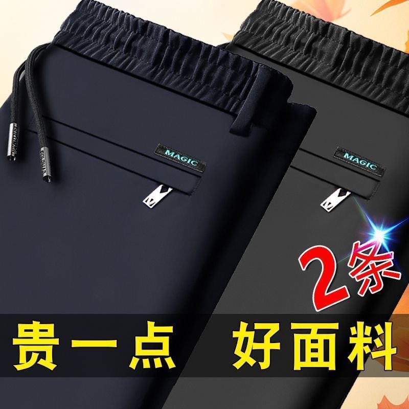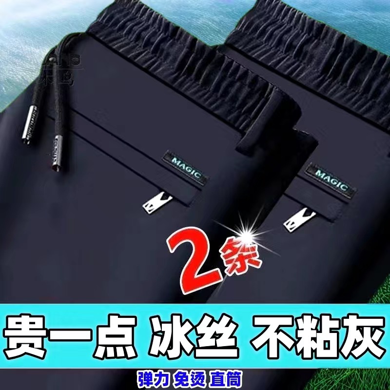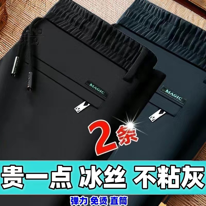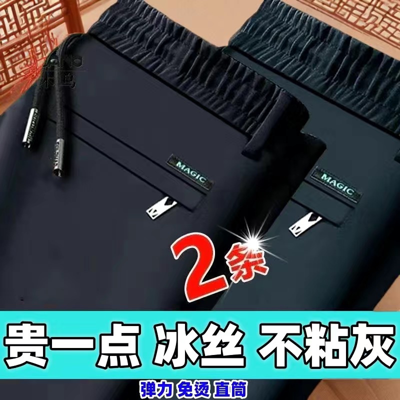 중년 남성 봄과 가을 아이스 실크 느슨한 캐주얼 바지 비 다림질 안티 주름 높은 탄성 플러스 사이즈 얇은 스포츠 바지스토어 가기