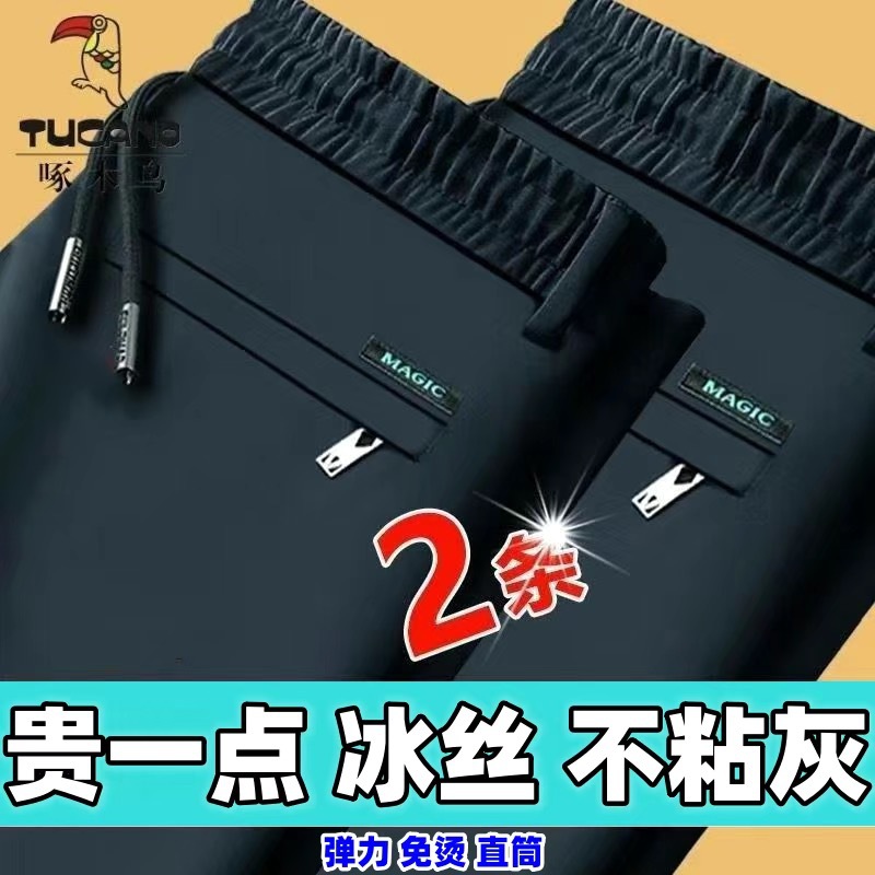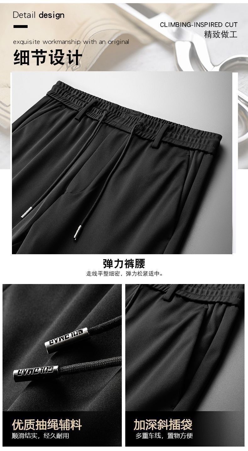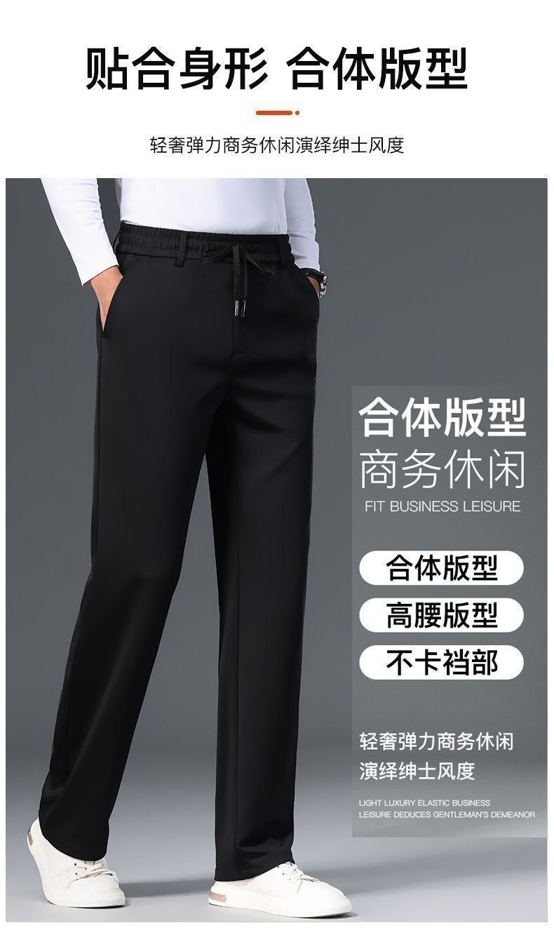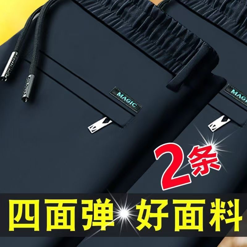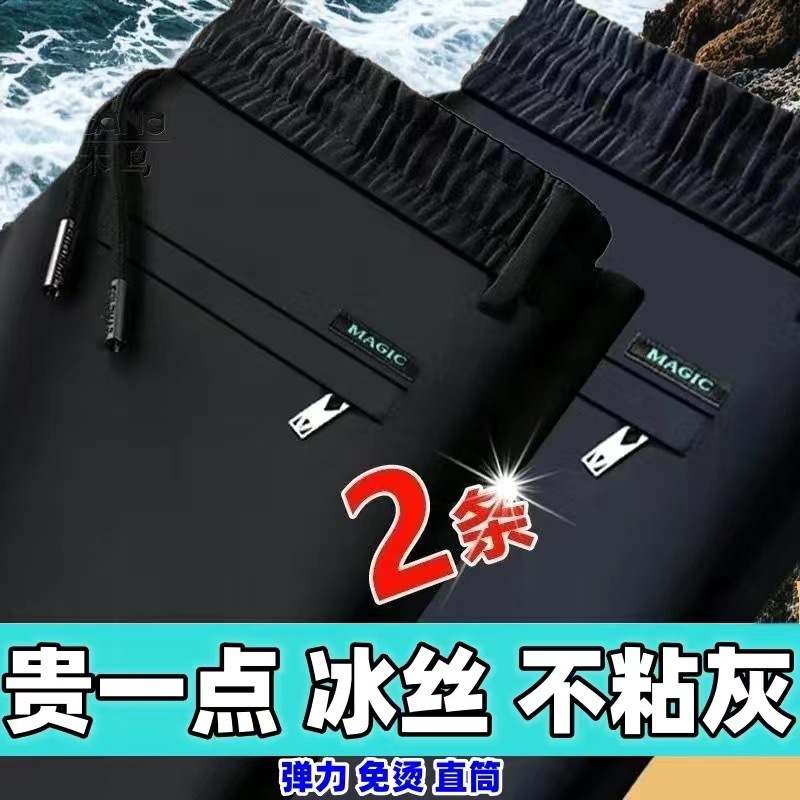 중년 남성 봄과 가을 아이스 실크 느슨한 캐주얼 바지 비 다림질 안티 주름 높은 탄성 플러스 사이즈 얇은 스포츠 바지스토어 가기
