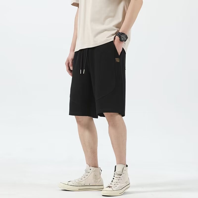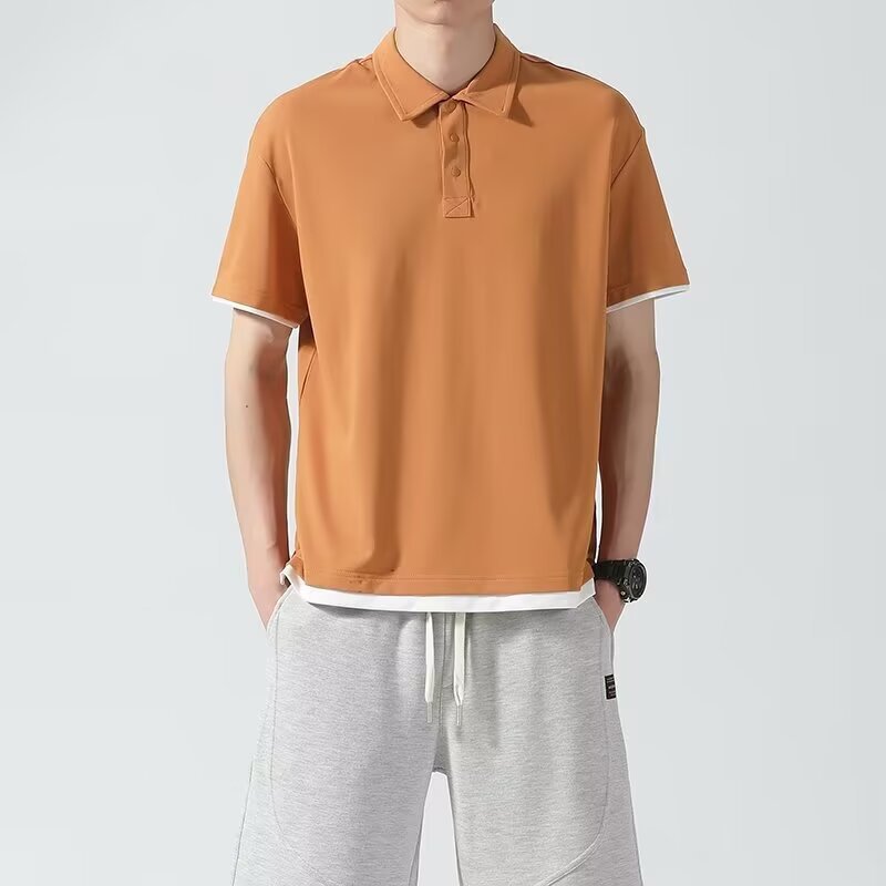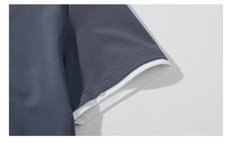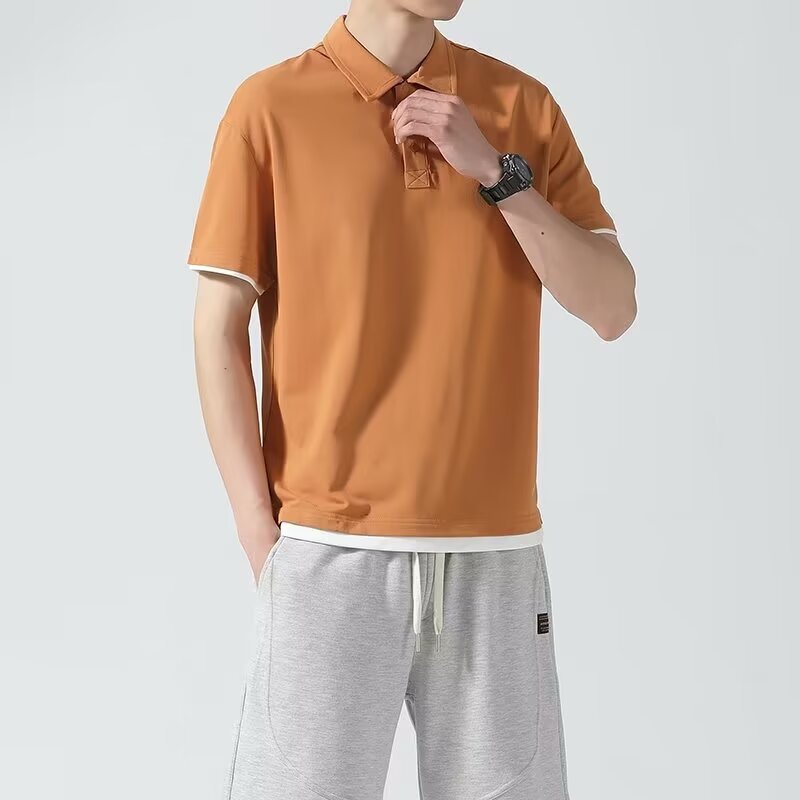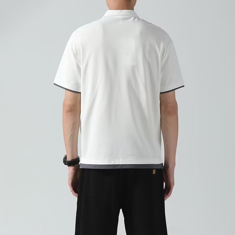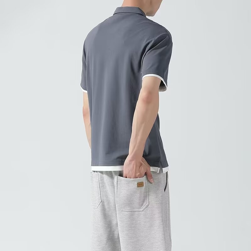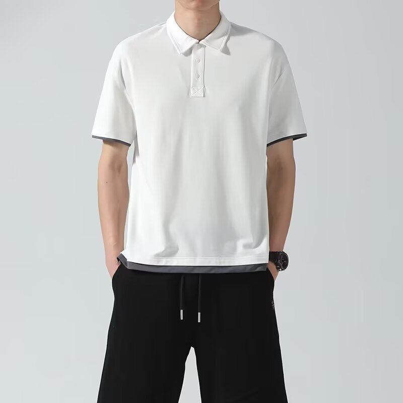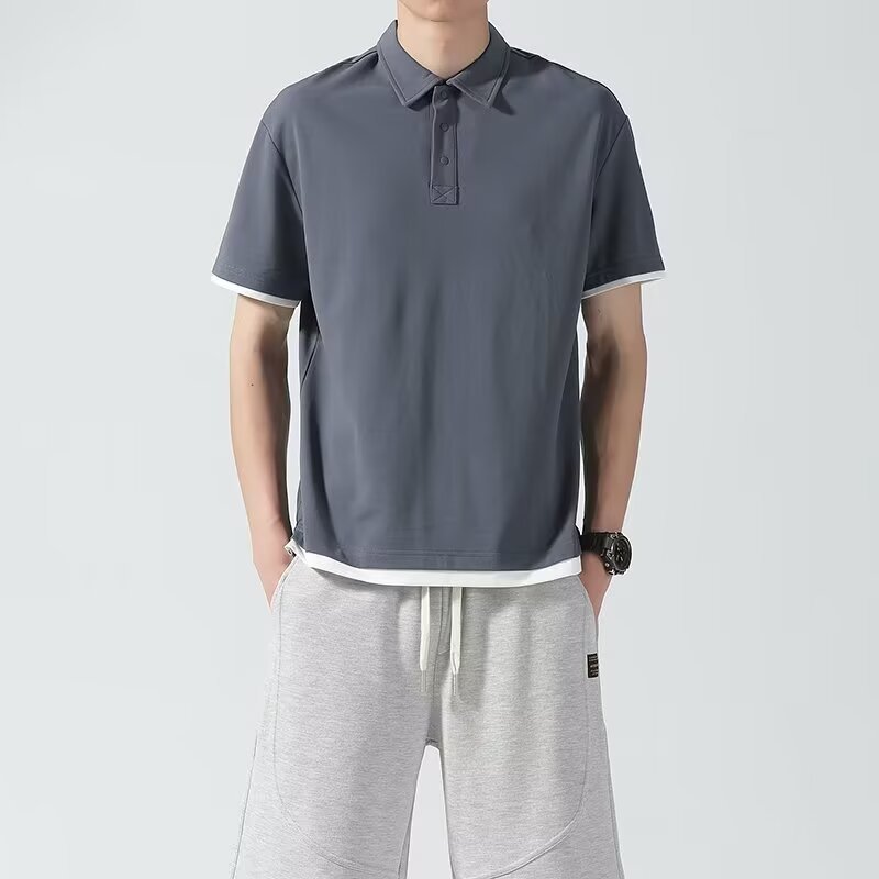 일본식 간단한 여름 하이 퀄리티 아이스 실크 트렌디 브랜드 코튼 아이스 실크 티셔츠 남성용 폴로 셔츠 탑 스티칭 옷깃 세트
