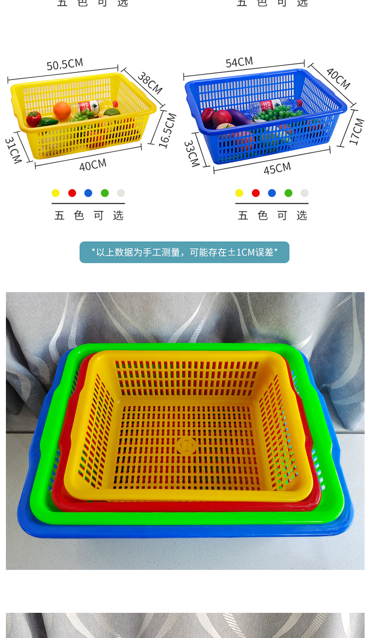 두꺼운 야채 세척 바구니 야채 색깔 플라스틱 바구니 사각 스크린 프레임 직사각형 턴오버 프레임 큰 크기 저장 거룩한스토어 가기