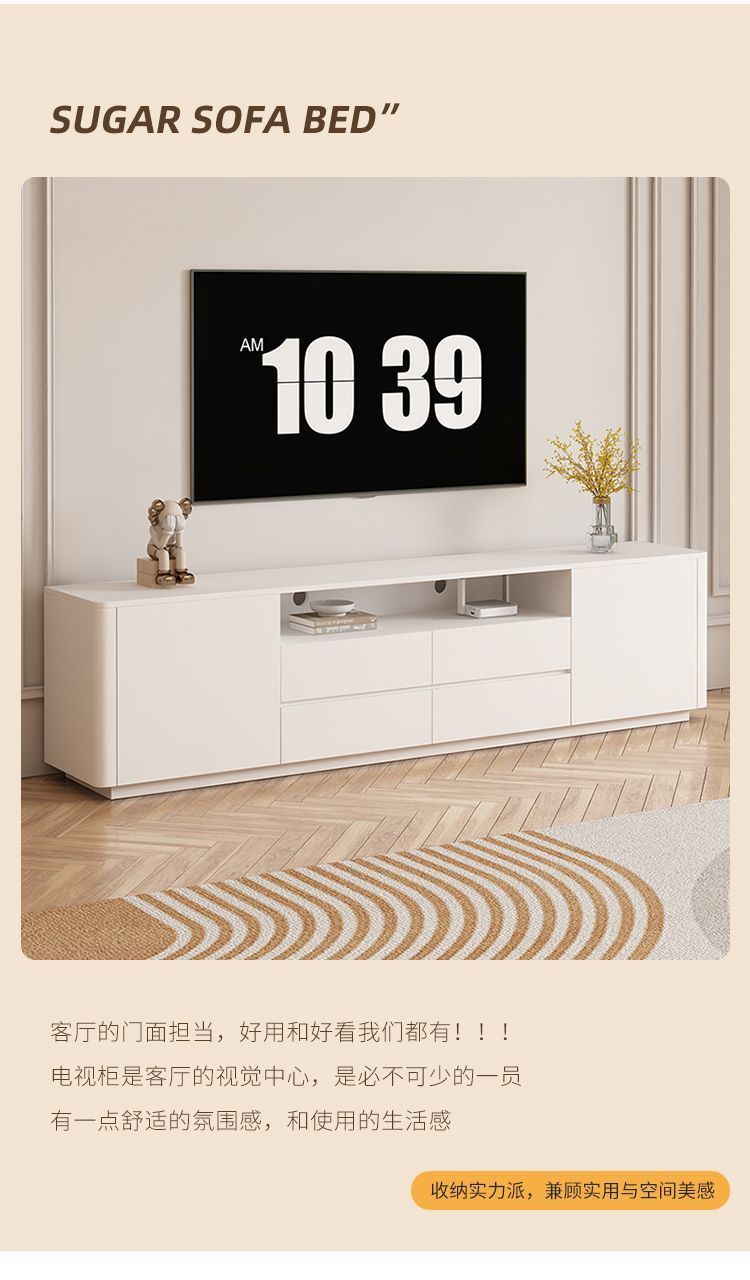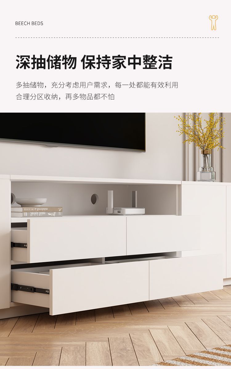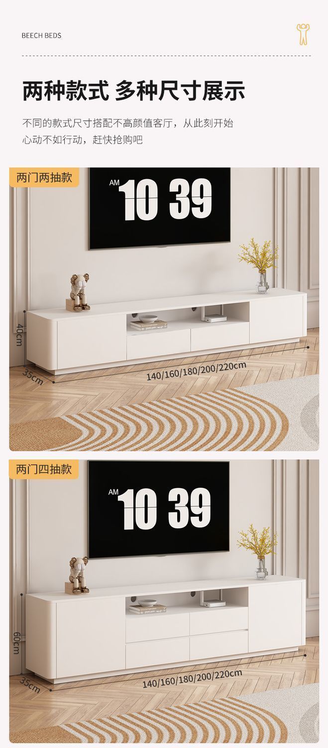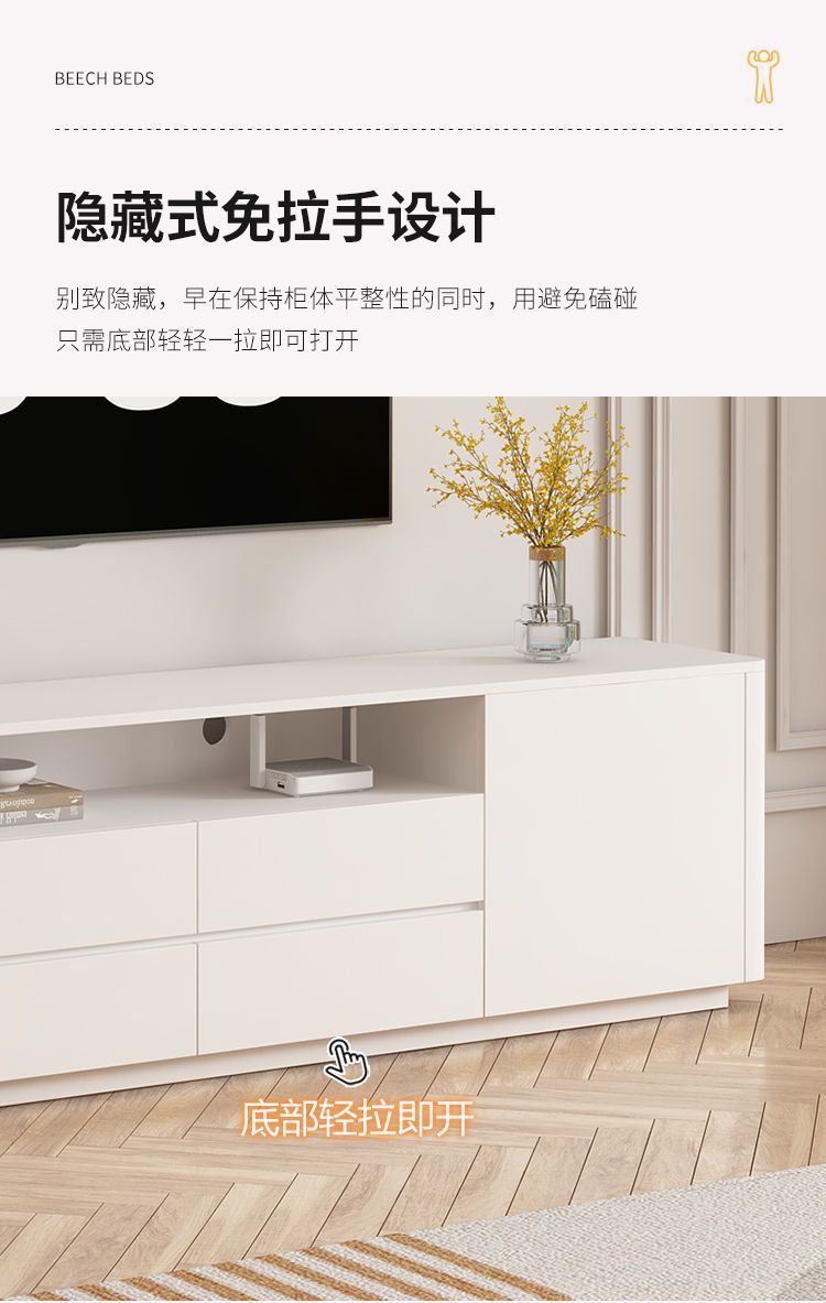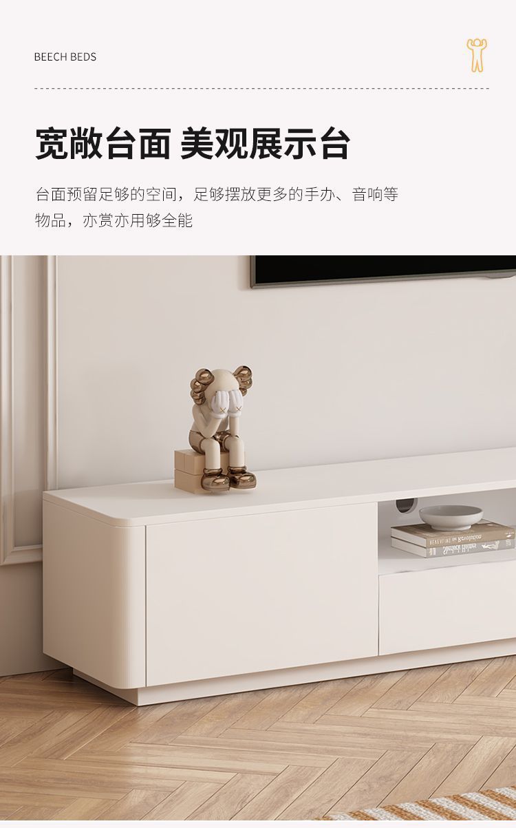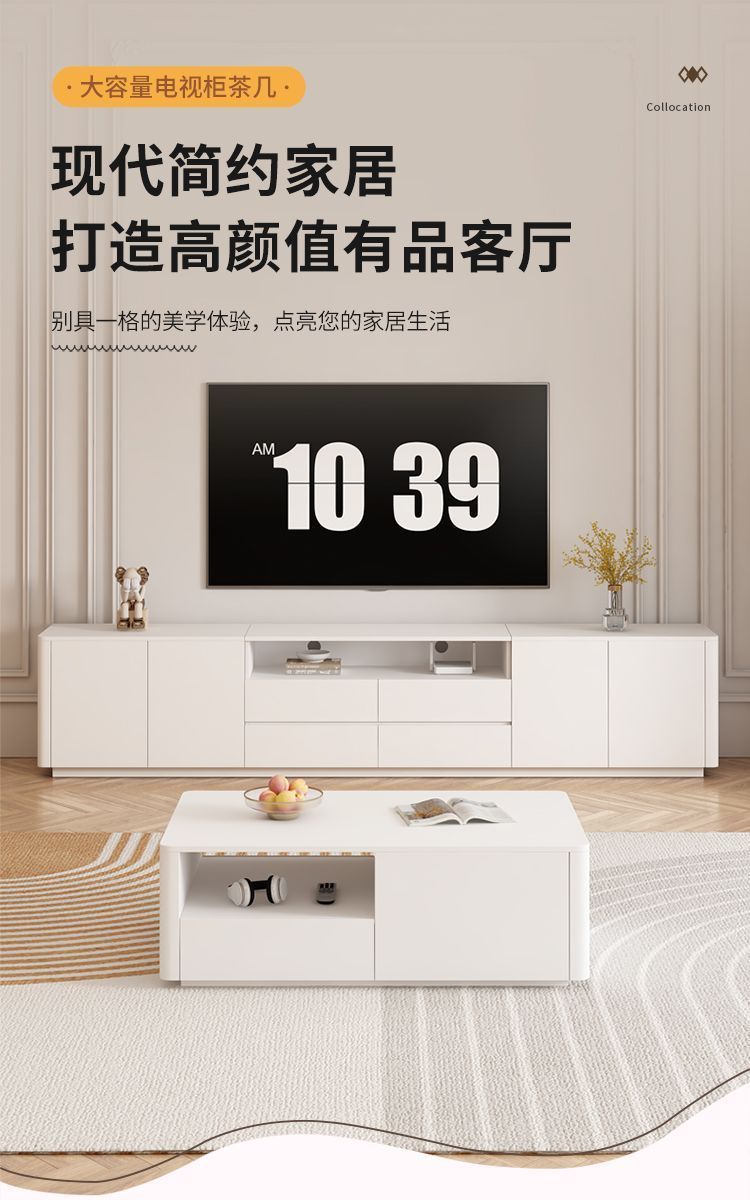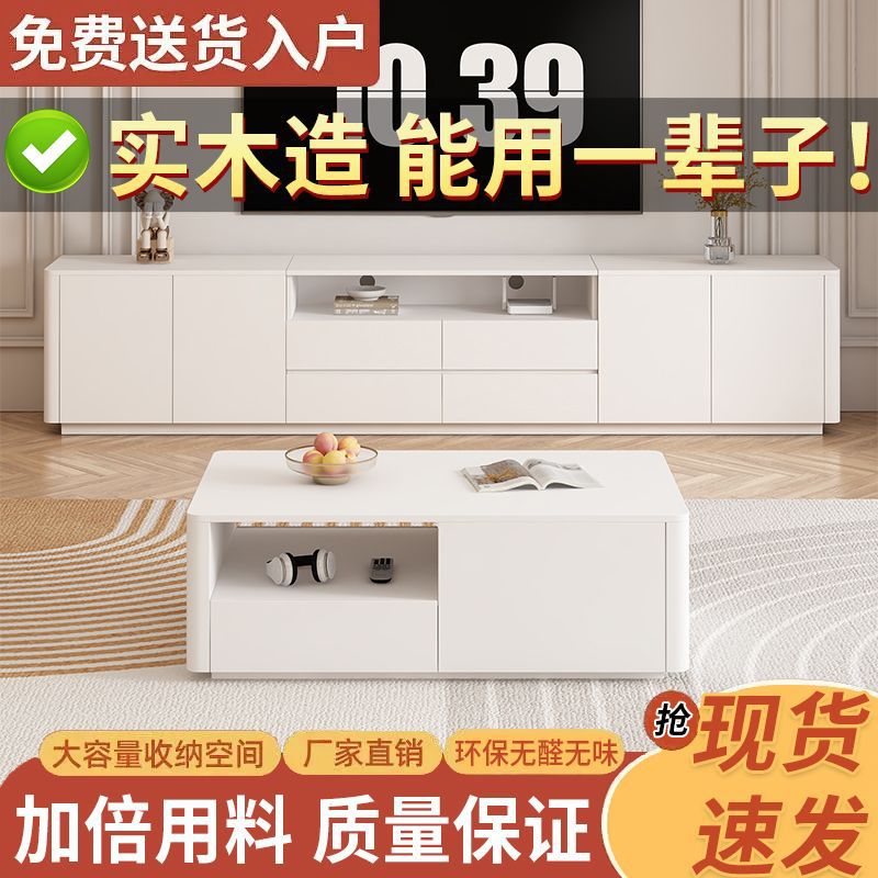 크림 스타일 바닥 TV 캐비닛 커피 테이블 조합 작은 아파트 거실 흰색 미니멀리스트 바닥 캐비닛 간단한 현대 단단한 나무스토어 가기