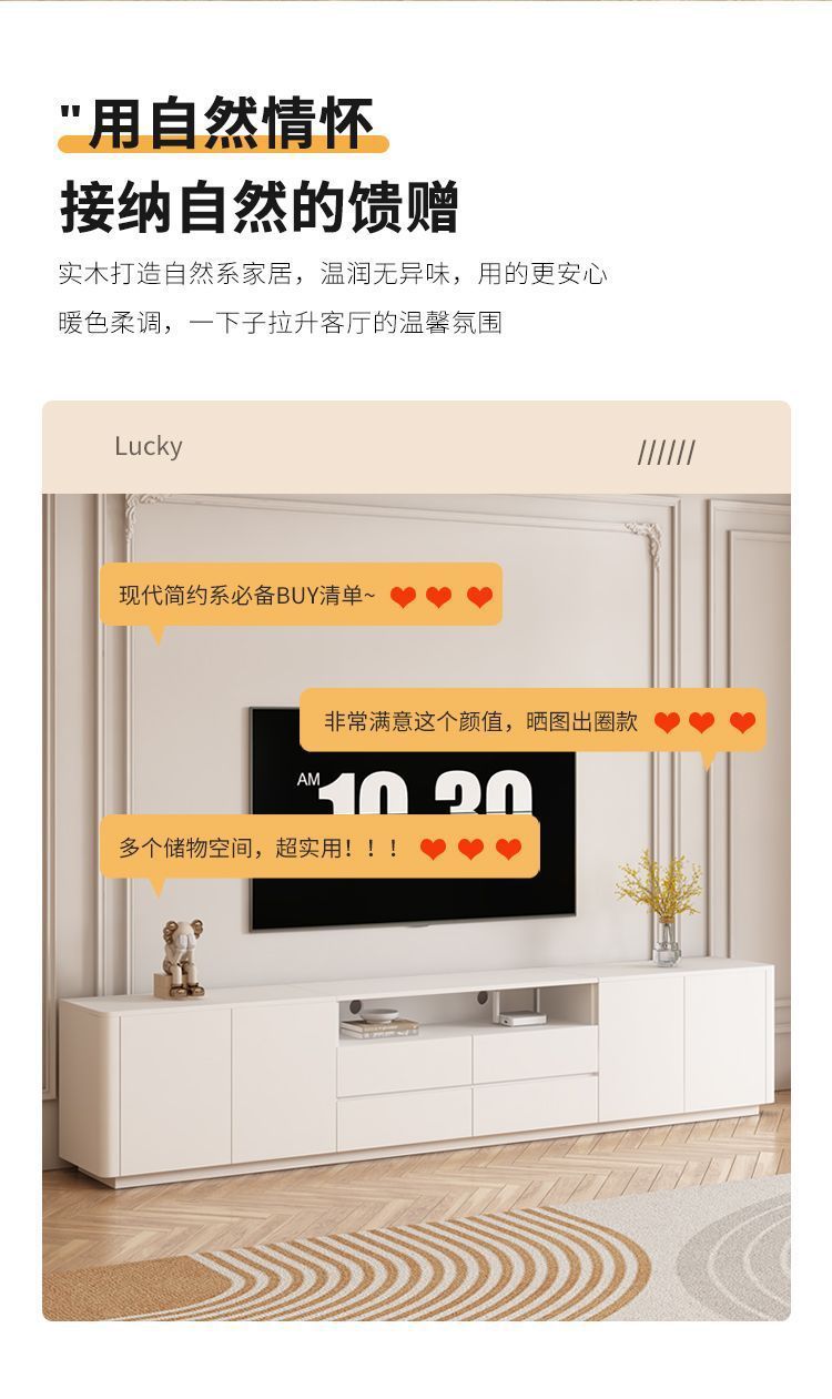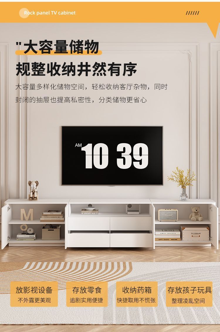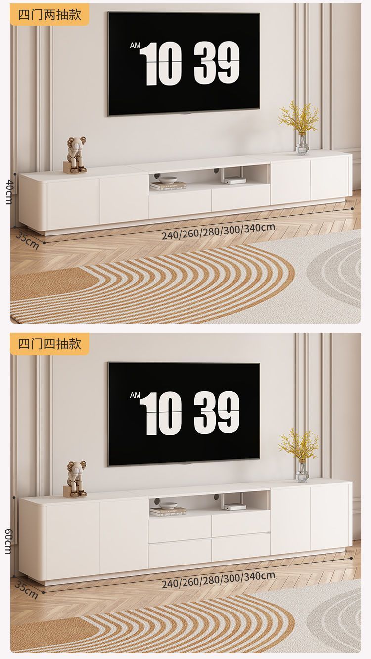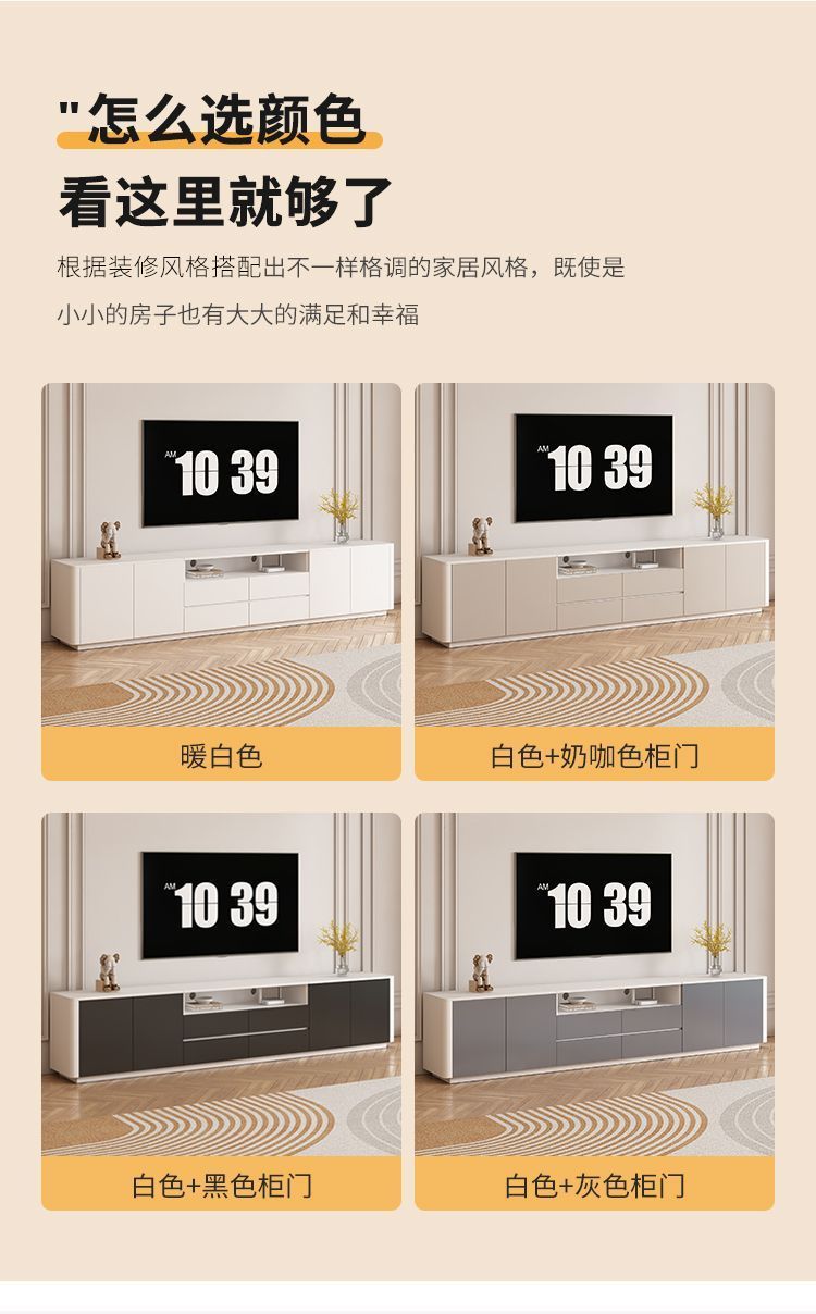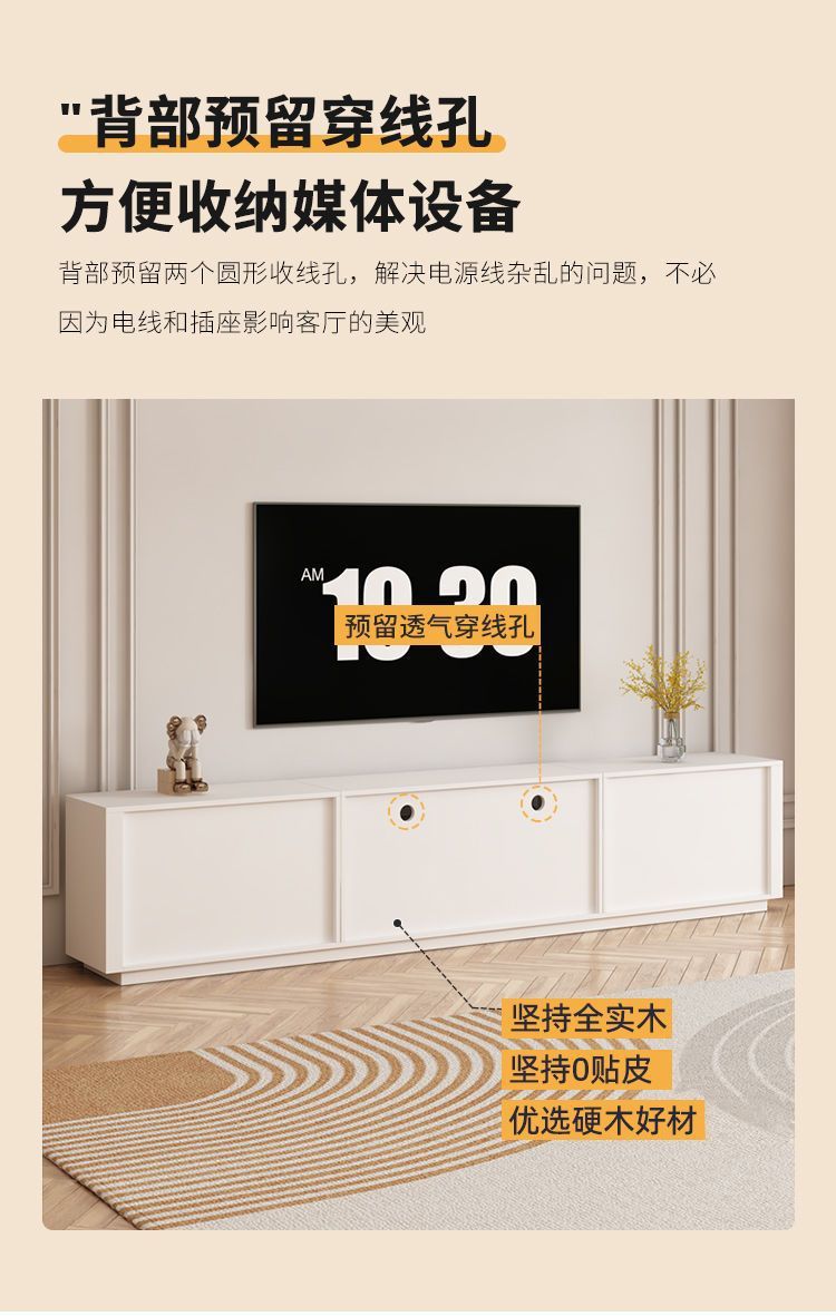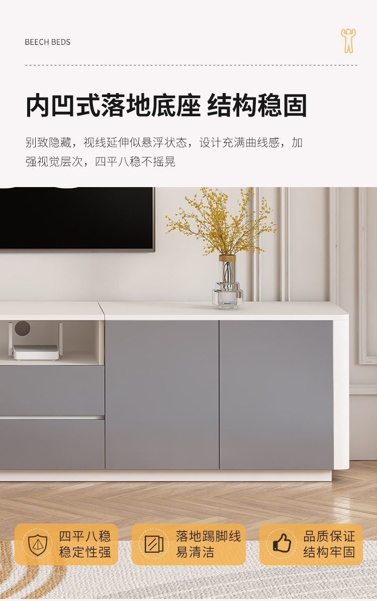 크림 스타일 바닥 TV 캐비닛 커피 테이블 조합 작은 아파트 거실 흰색 미니멀리스트 바닥 캐비닛 간단한 현대 단단한 나무스토어 가기