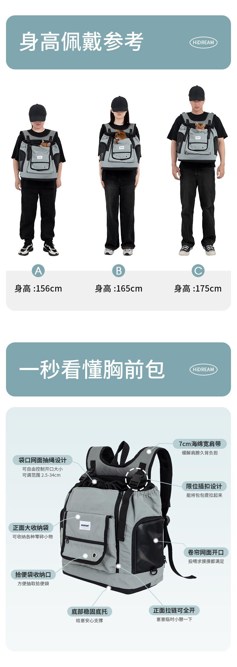 HIDREAM 고양이 가방 나가는 휴대용 배낭 대용량 개 배낭 애완 동물 가슴 가방 고양이 외출 가방스토어 가기
