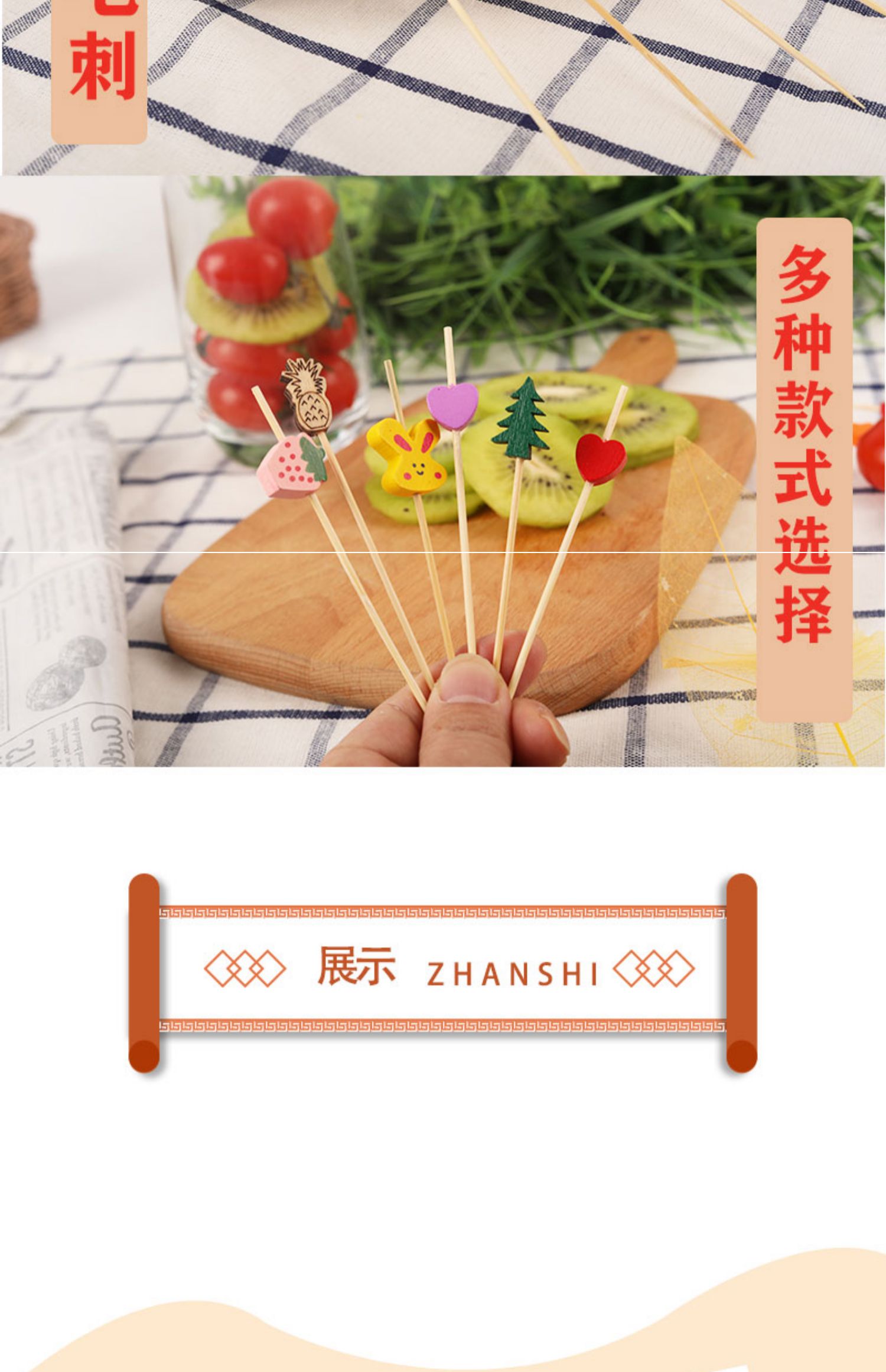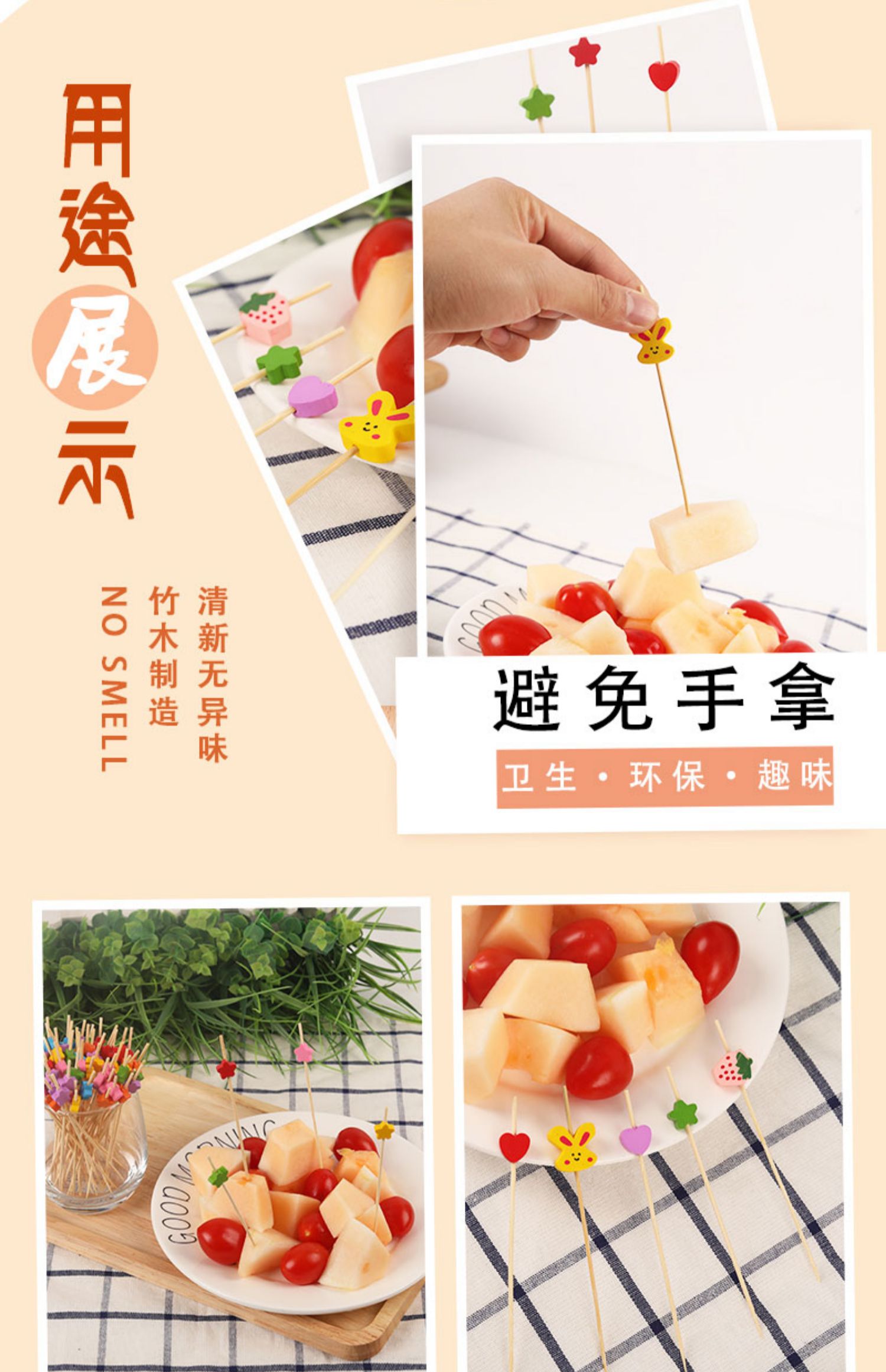 과일 스틱 공예 부티크 대나무 스틱 바베큐 치킨 잘라 창조적 인 우유 차 컵 샌드위치 장식 스틱 도매스토어 가기