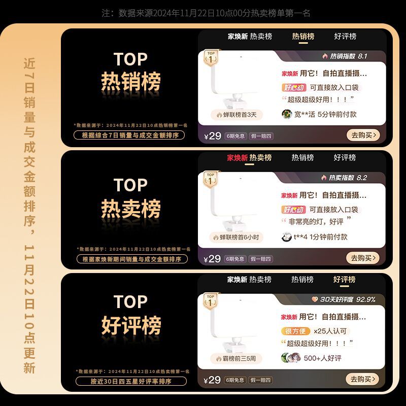 • 전체 화면 표준 모델 - 검정색 [450°회전 √3색조명 √부드러운 빛이 눈부시지 않음]