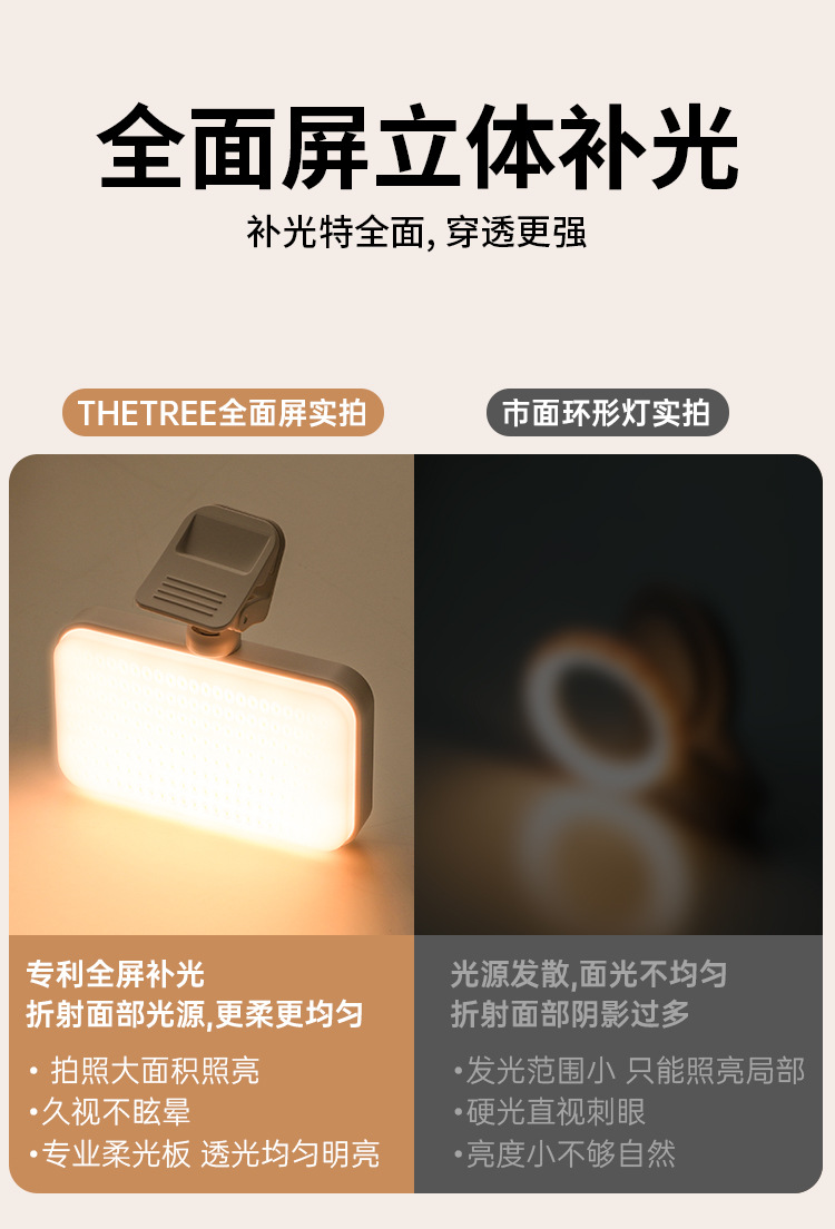 Thetree 미니 휴대용 셀카 빛 사진 rgb 휴대 전화 라이브 촬영 가벼운 음식 주도