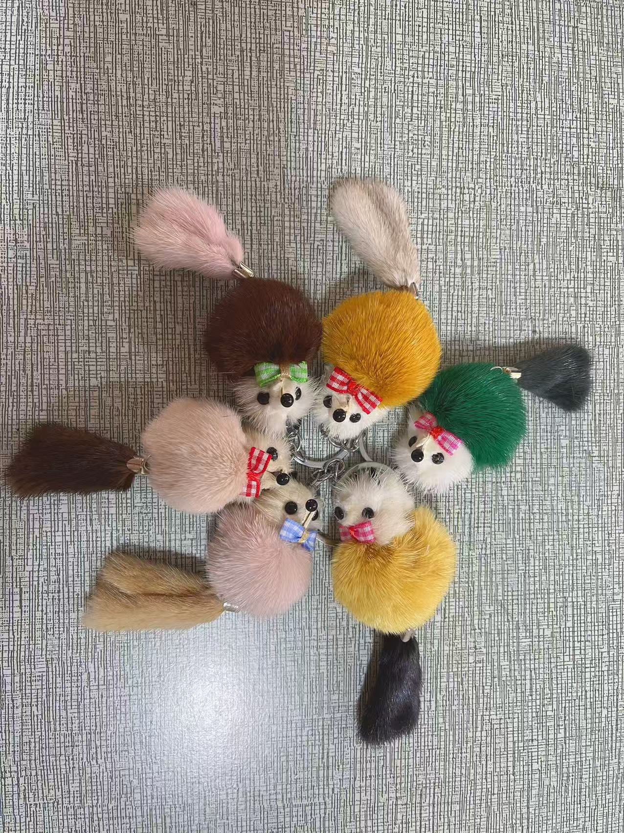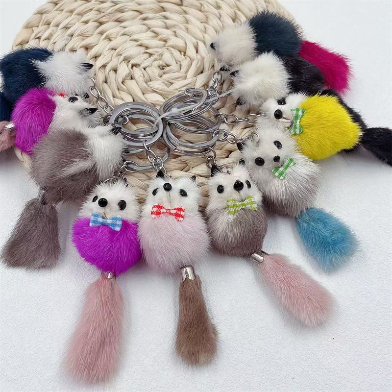 새로운 진짜 모피 밍크 모피 작은 여우 키 펜던트 귀여운 봉제 인형 작은 오리 가방 자동차 열쇠 고리