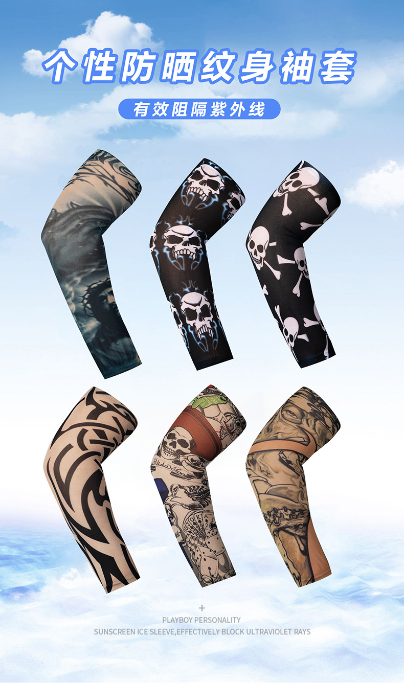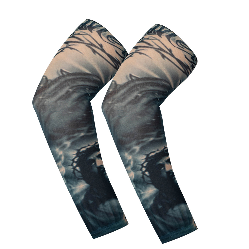 뜨거운 판매 인쇄 야외 선 스크린 경량 통기성 아이스 실크 슬리브 사이클링 팔 프로텍터 탄성 원활한 문신 꽃 팔 장갑스토어 가기