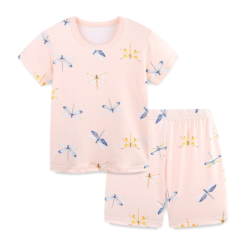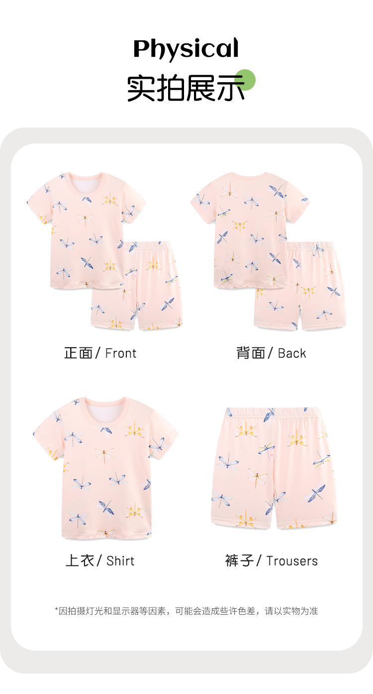 25 여름 새 여아 홈 의류 투피스 세트 유럽과 미국 스타일 라운드 넥 어린이 반팔 세트 캐주얼 파자마