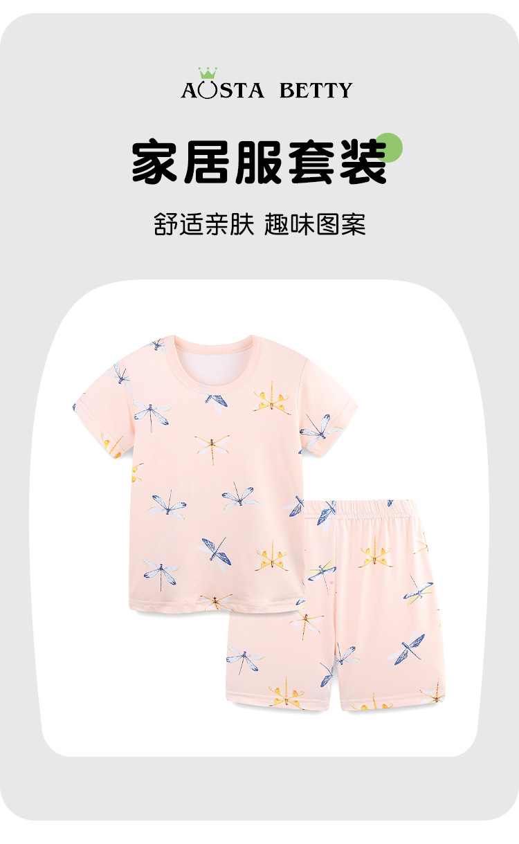 25 여름 새 여아 홈 의류 투피스 세트 유럽과 미국 스타일 라운드 넥 어린이 반팔 세트 캐주얼 파자마스토어 가기