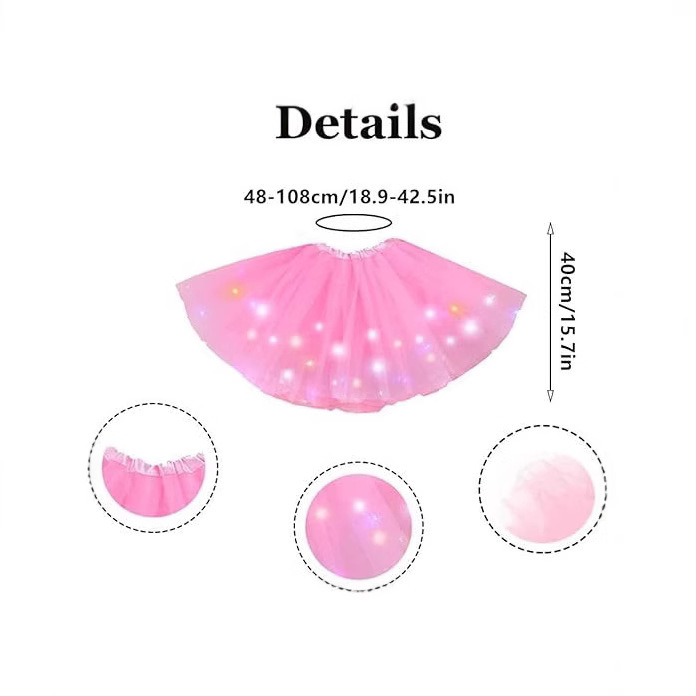 • 闪亮的蓬蓬裙长约 40 厘米,裙腰可从 50 厘米拉伸至 110 厘米。 弹性腰带设计适合每个女士和女孩。