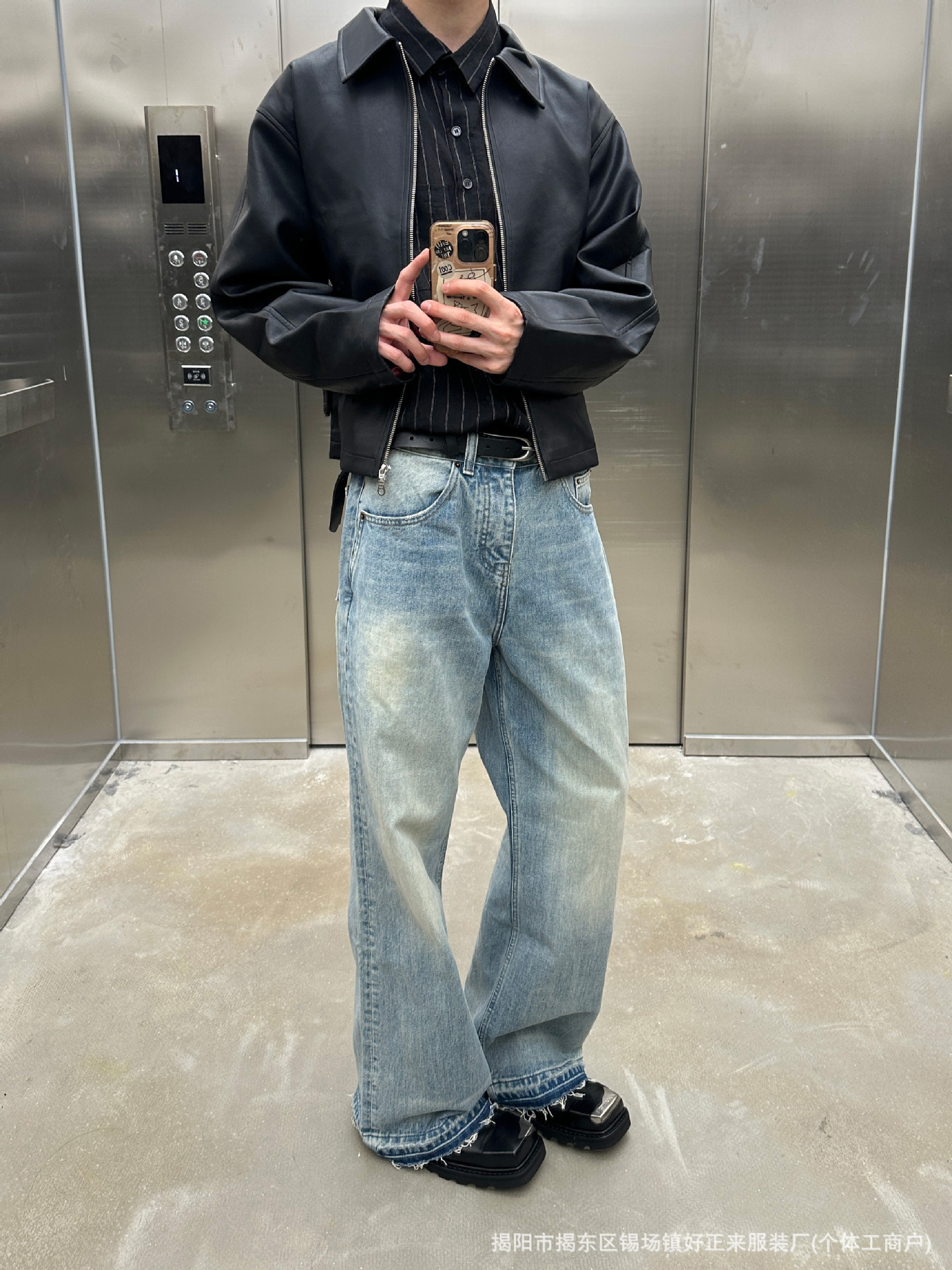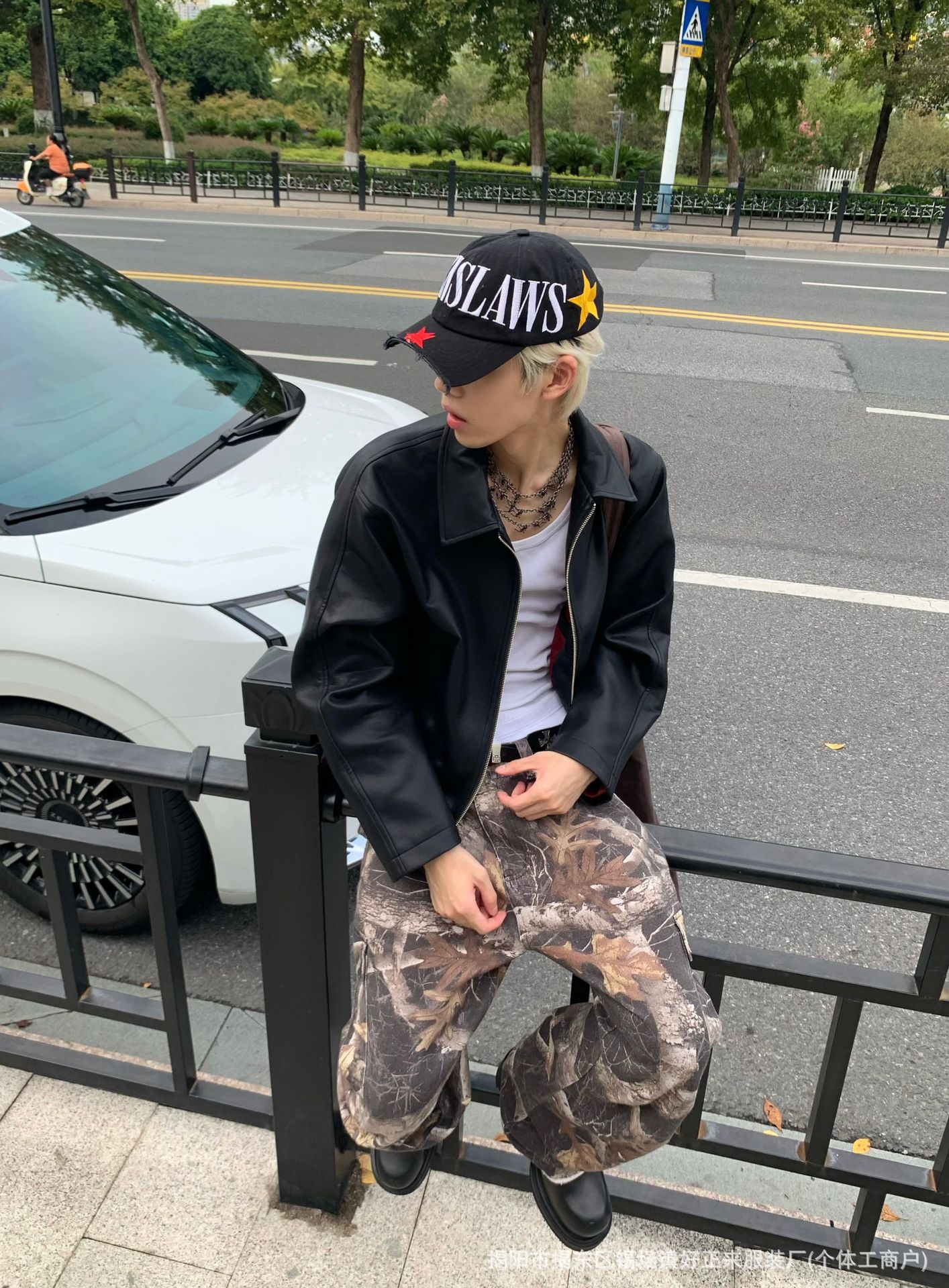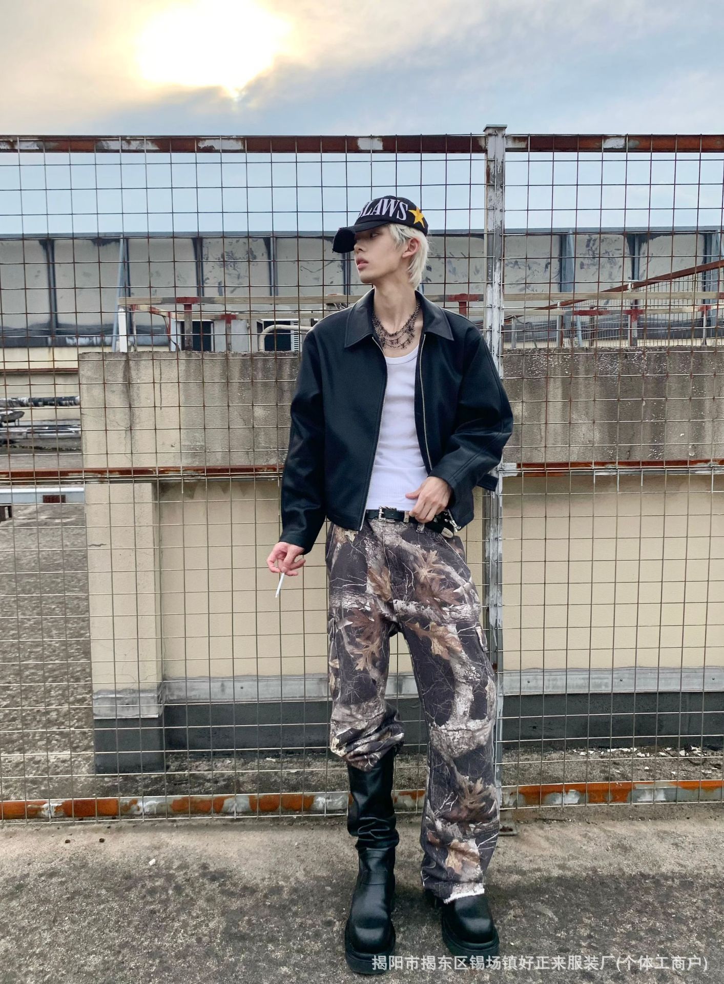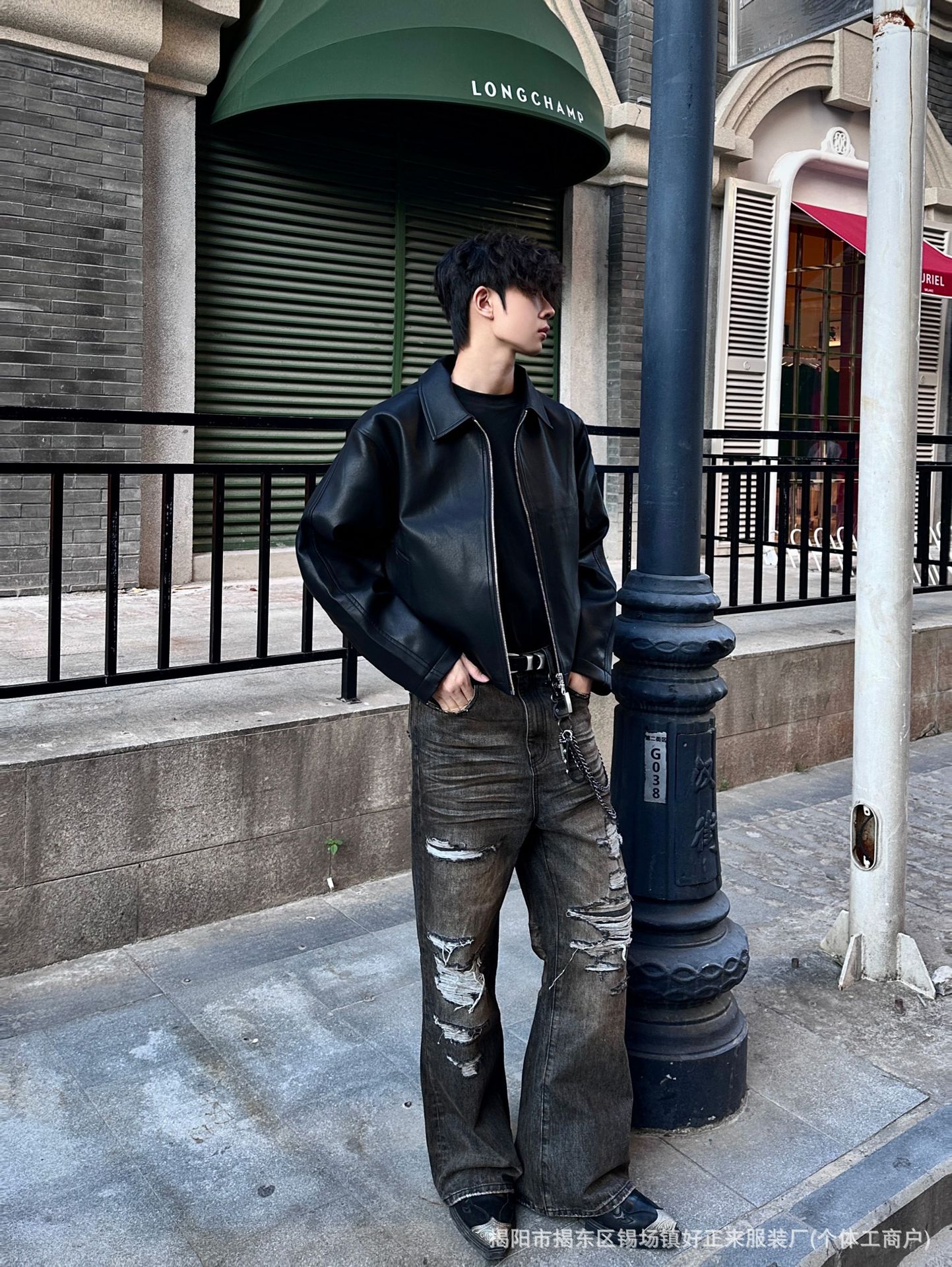 소스 제조 업체 새로운 질감 PU 가죽 짧은 와이드 블랙 가죽 Cleanfit 남성 재킷 코트 Ancora 레드 내부스토어 가기