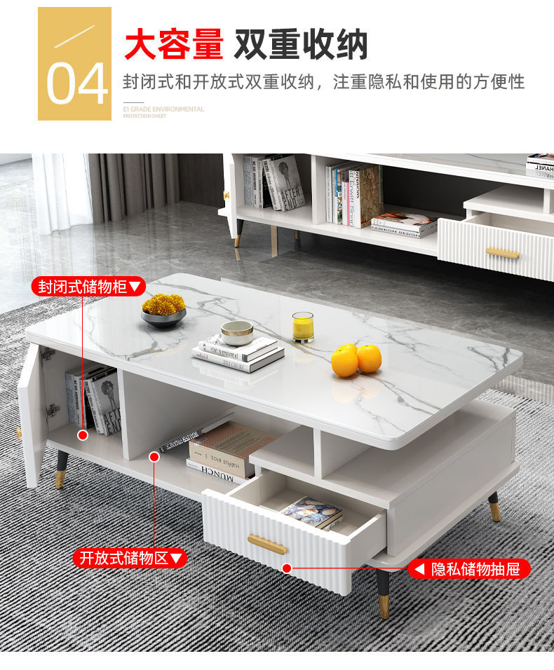 가벼운 고급 노르딕 커피 테이블 작은 아파트 간단한 현대 거실 TV 내각 조합 대리석 유리 커피 테이블 테이블스토어 가기