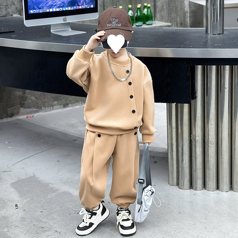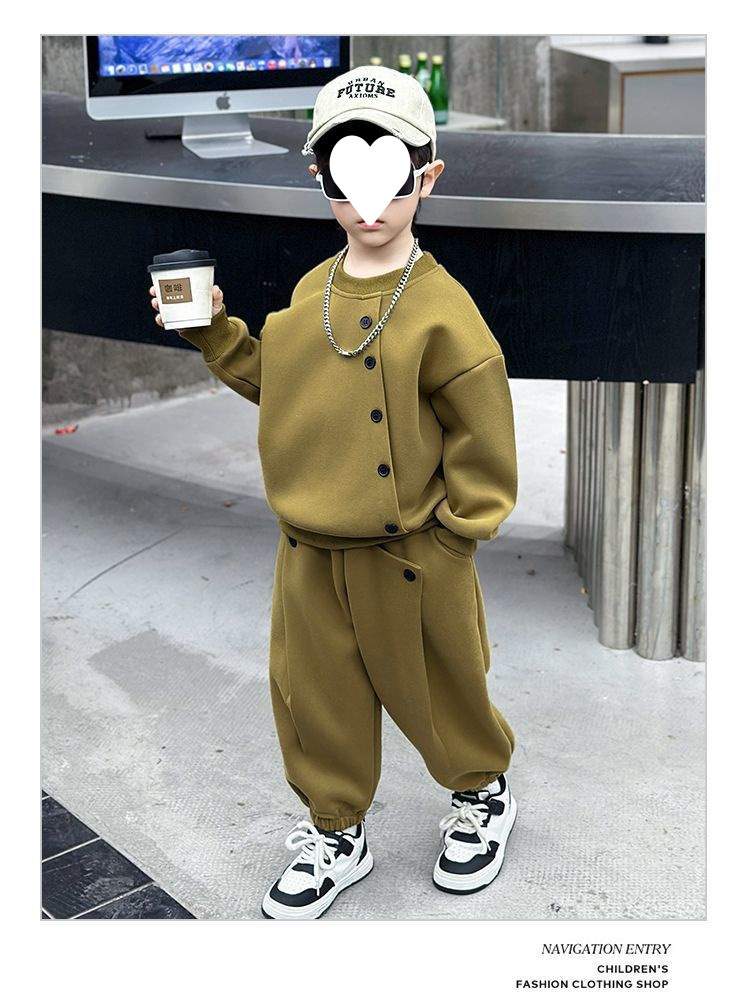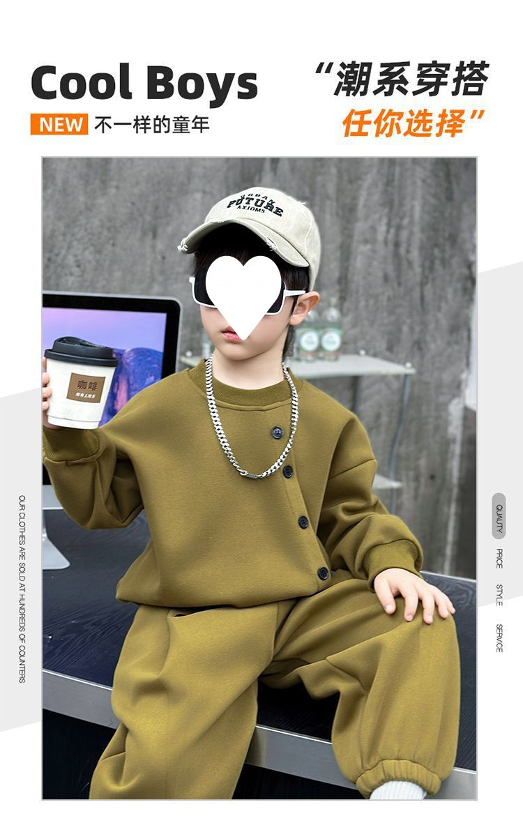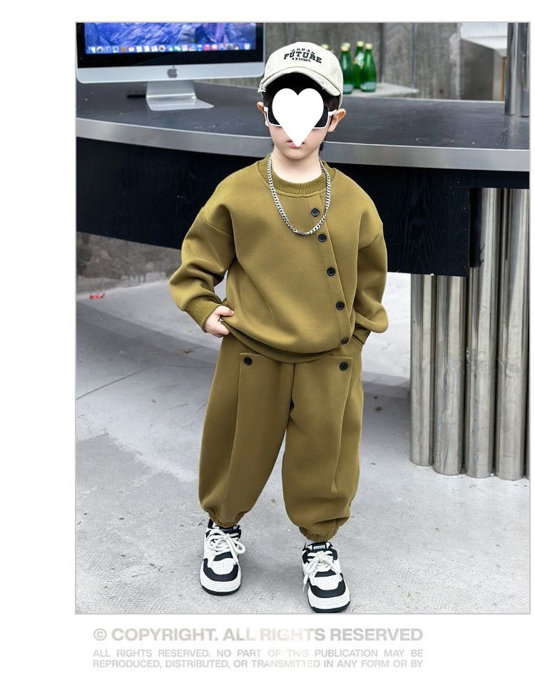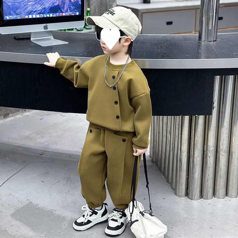 소년의 봄 세트 2025 새로운 봄과 가을 원피스 서양식 어린이 길거리 튀김 잘 생긴 코트 유행 아기 투피스 세트스토어 가기
