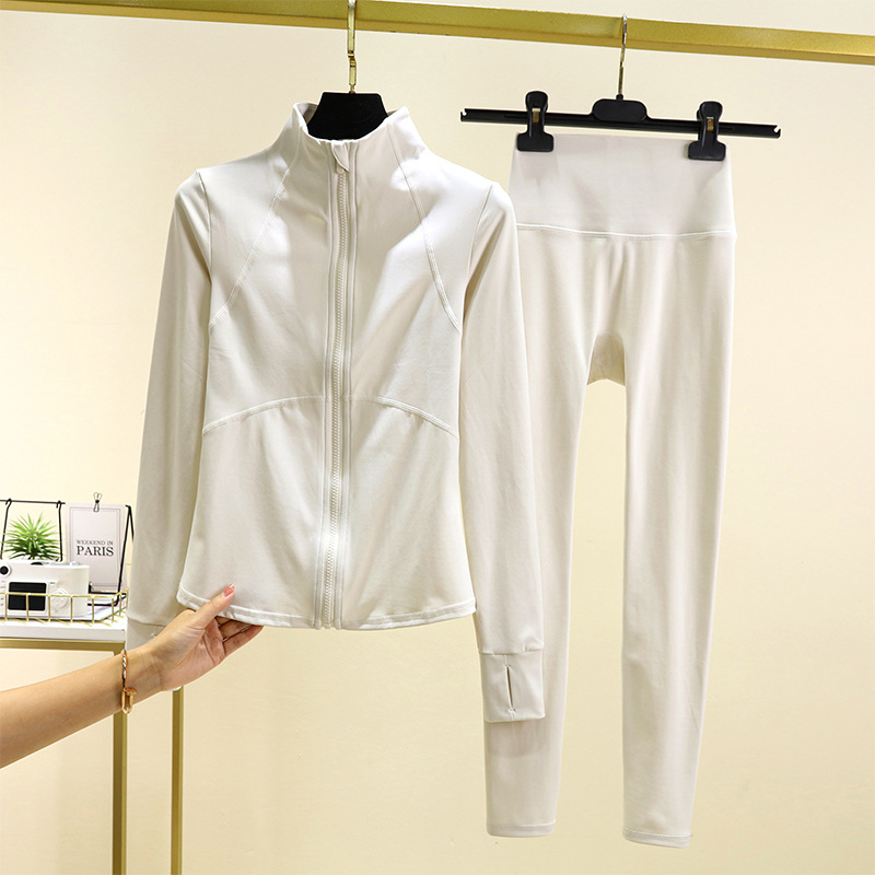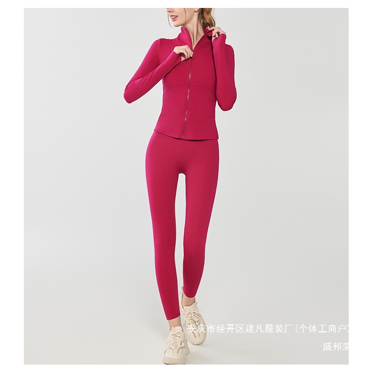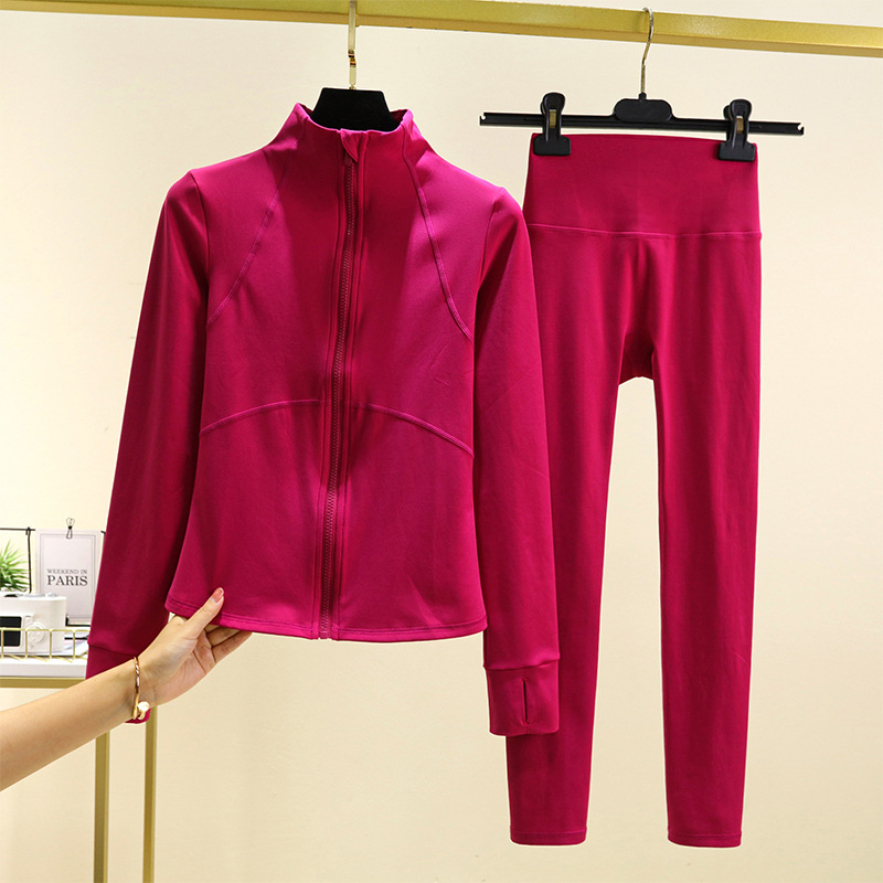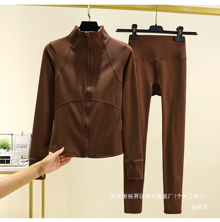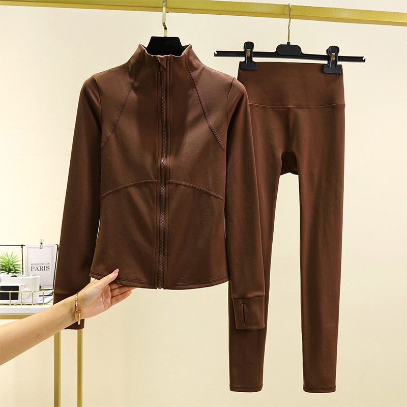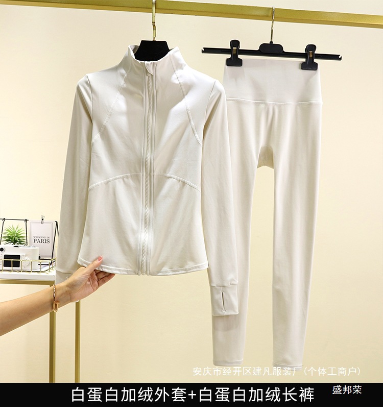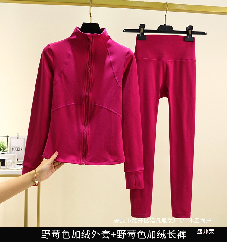 따뜻한 요가 옷 세트 재킷 슬림핏 가을과 겨울 슬리밍 러닝 긴팔 여성 기모 스포츠 지퍼 피트니스 탑