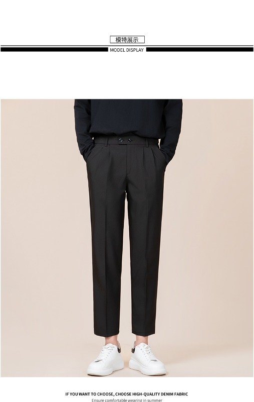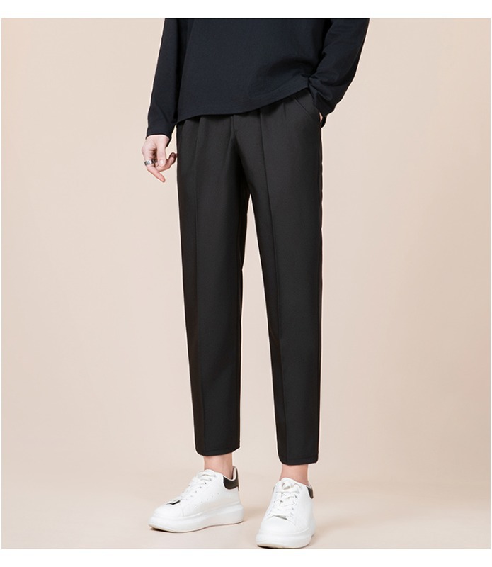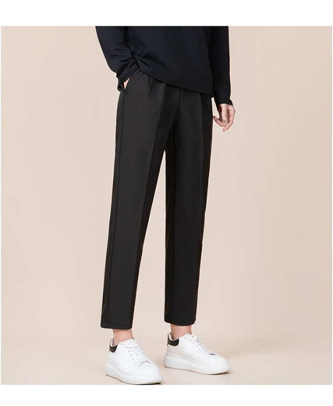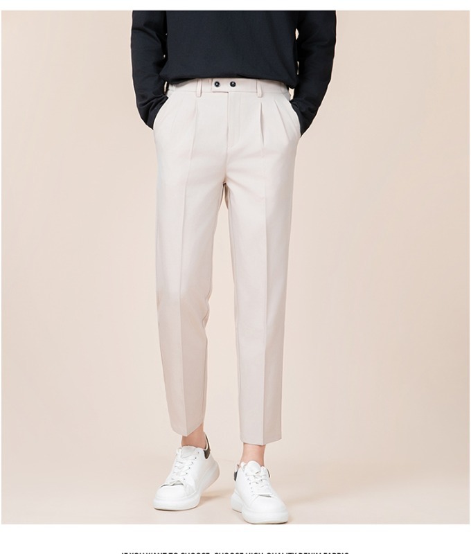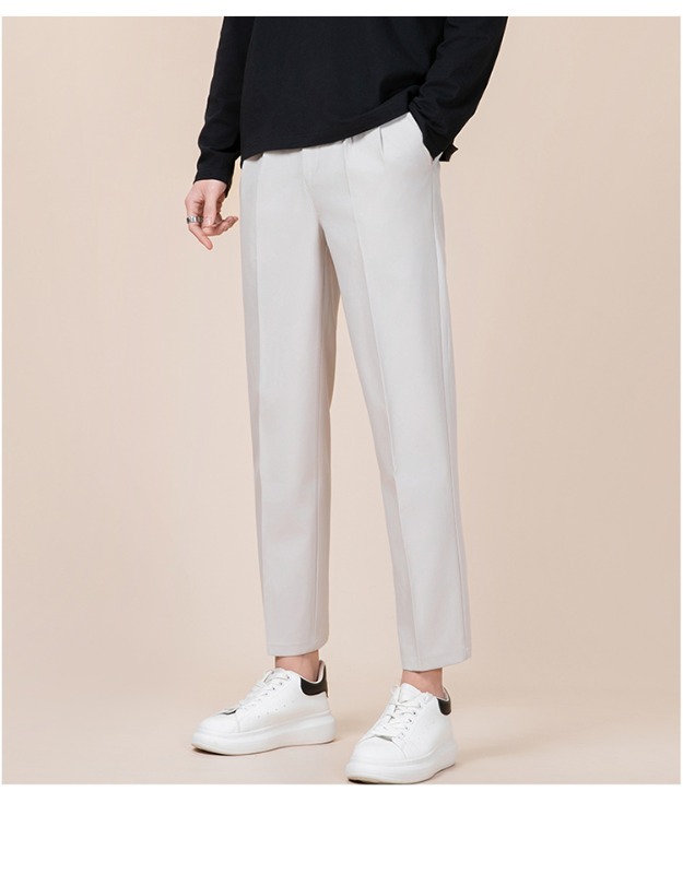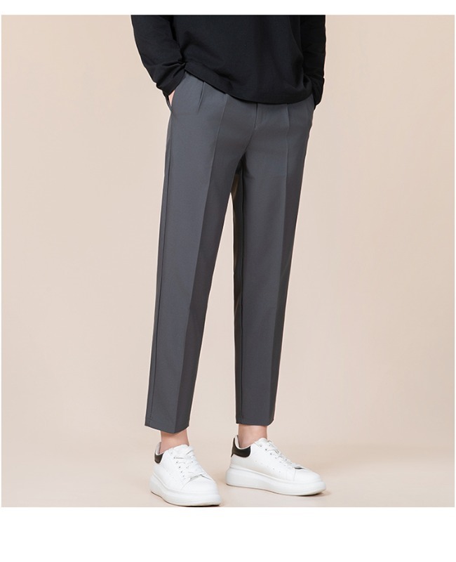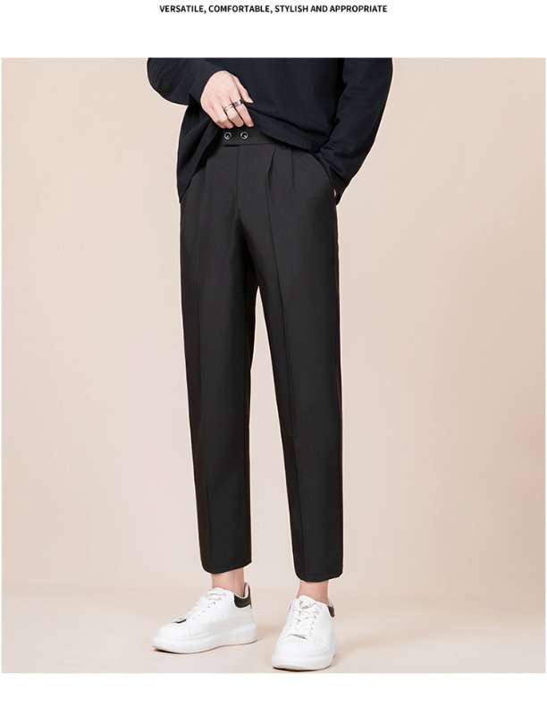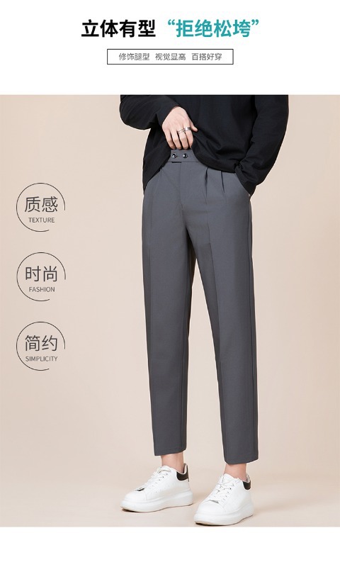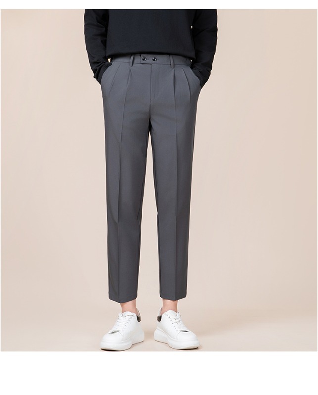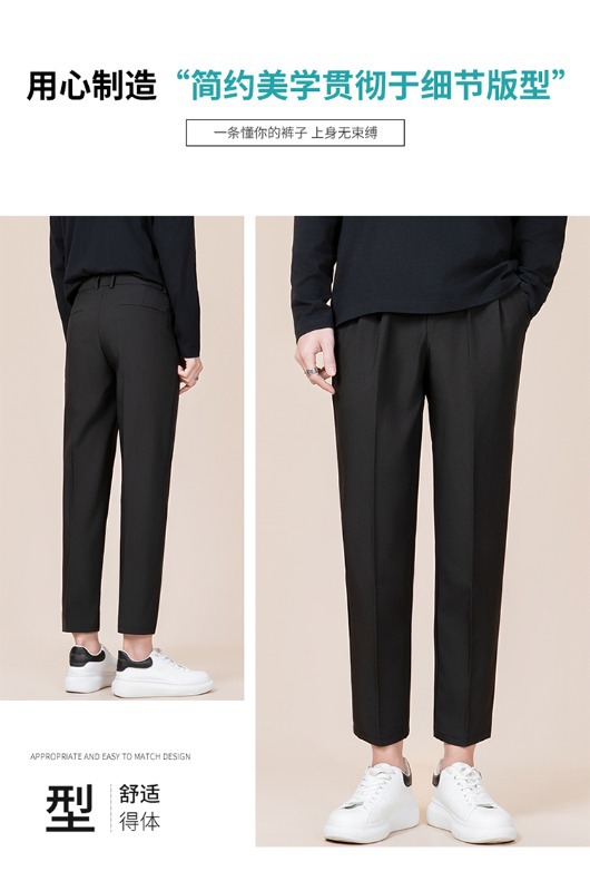 2024 년 가을 비즈니스 캐주얼 안티 주름 및 비 다림질 작은 세트 바지 남성용 스트레이트 고급 슬림 핏 작은 다리 세트 바지