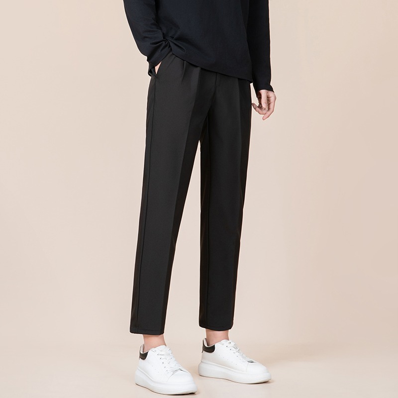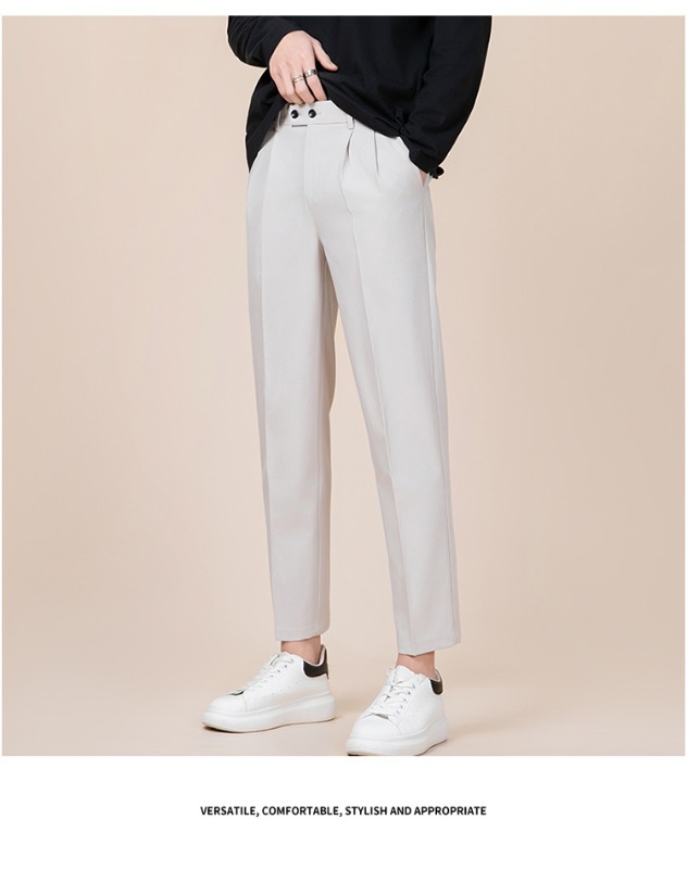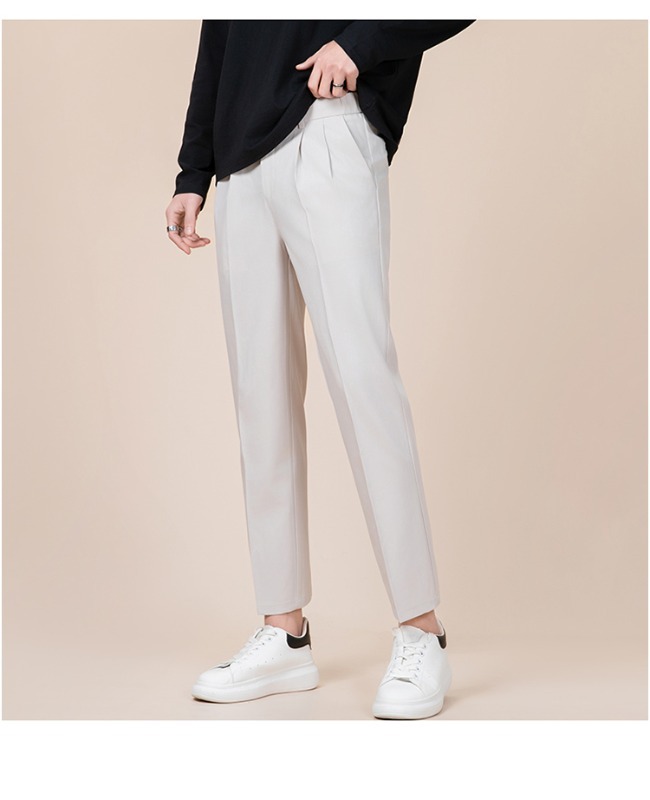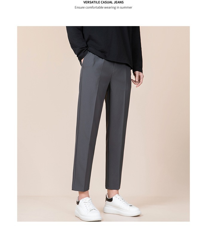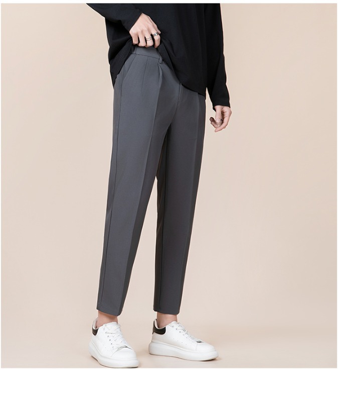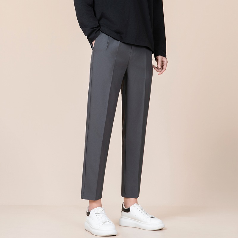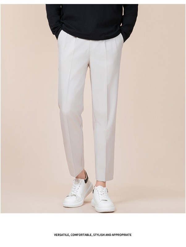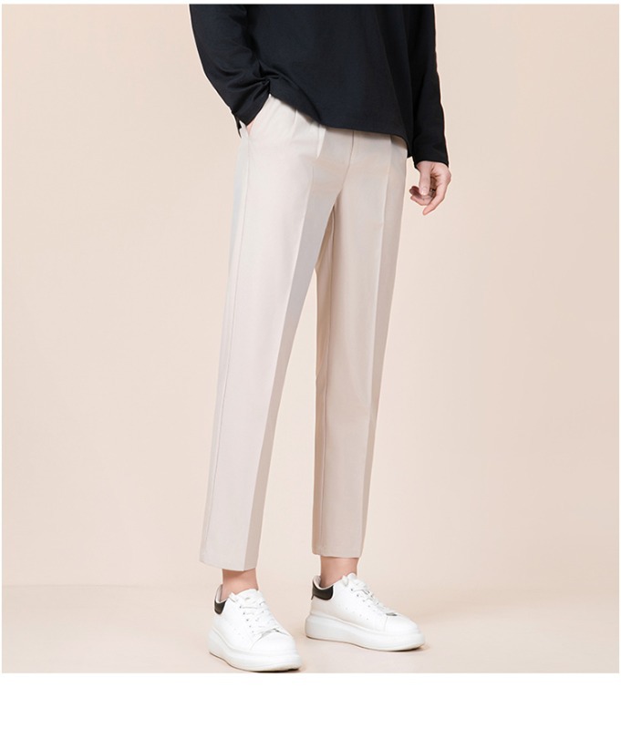 2024 년 가을 비즈니스 캐주얼 안티 주름 및 비 다림질 작은 세트 바지 남성용 스트레이트 고급 슬림 핏 작은 다리 세트 바지