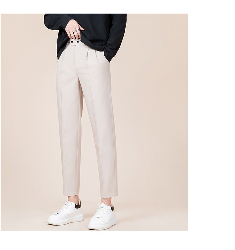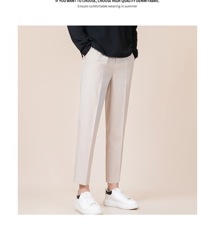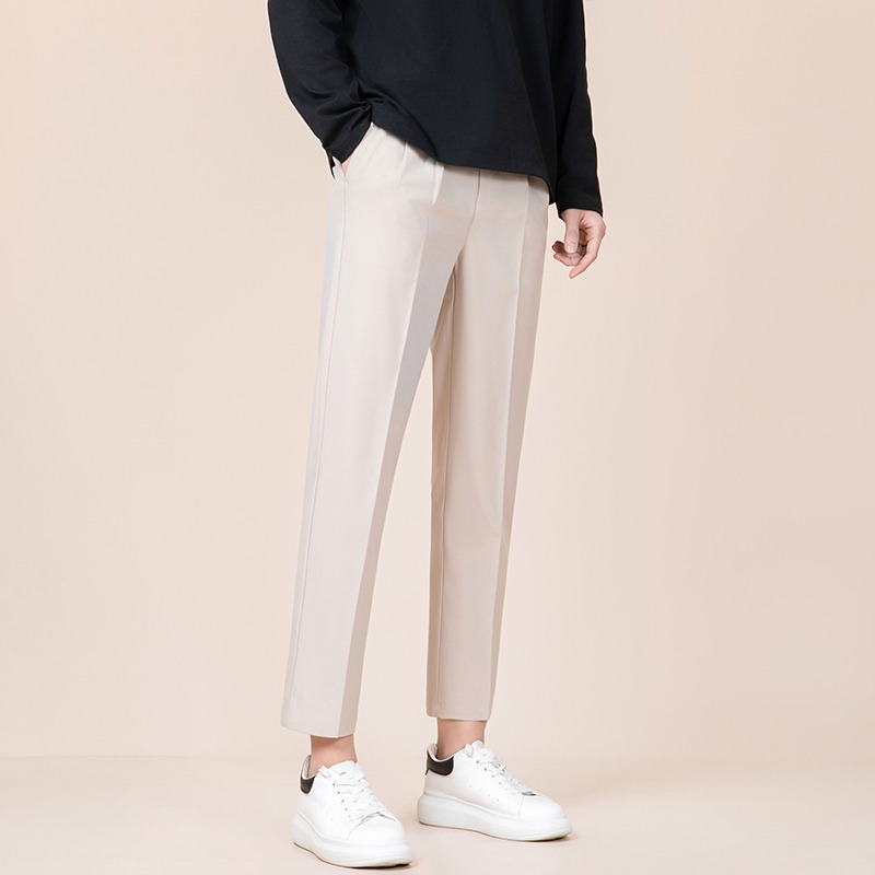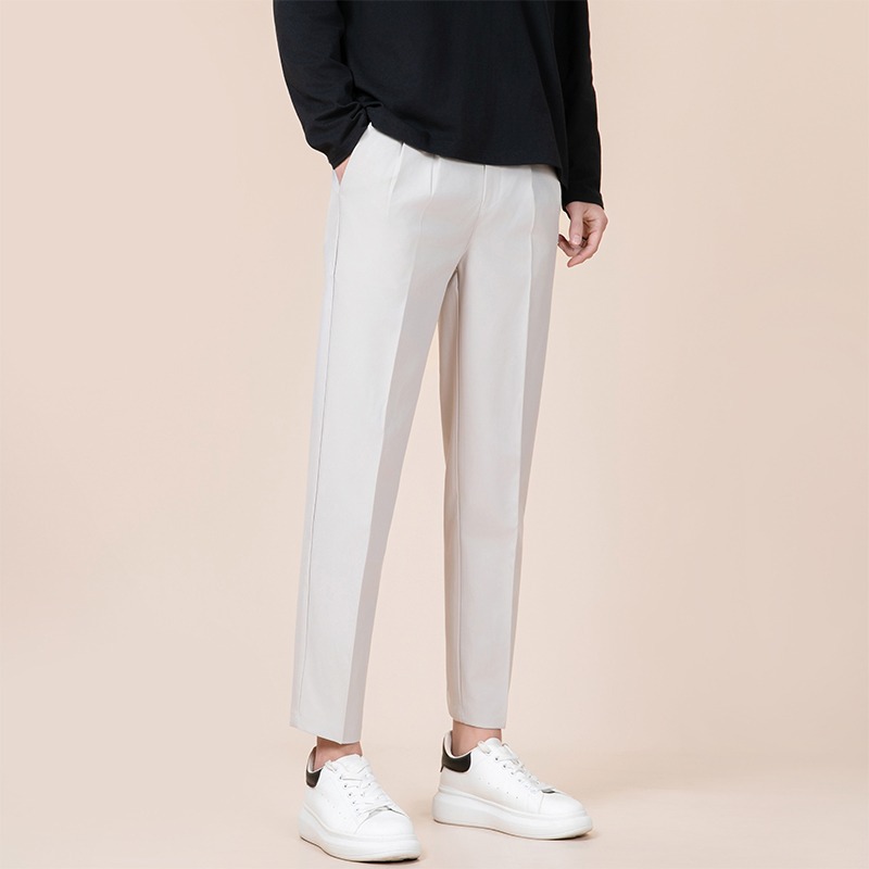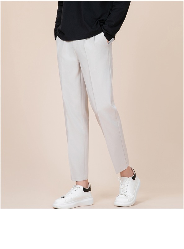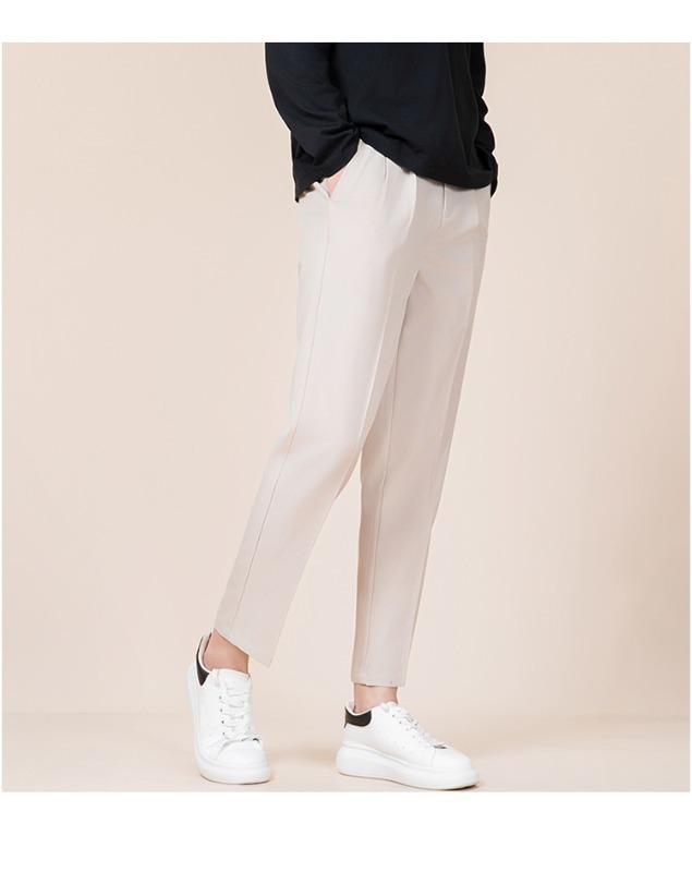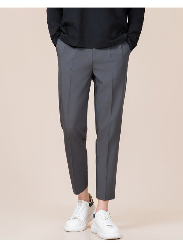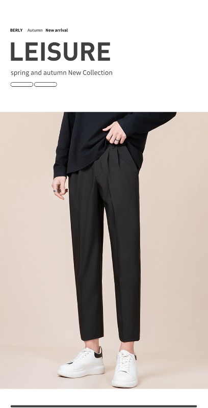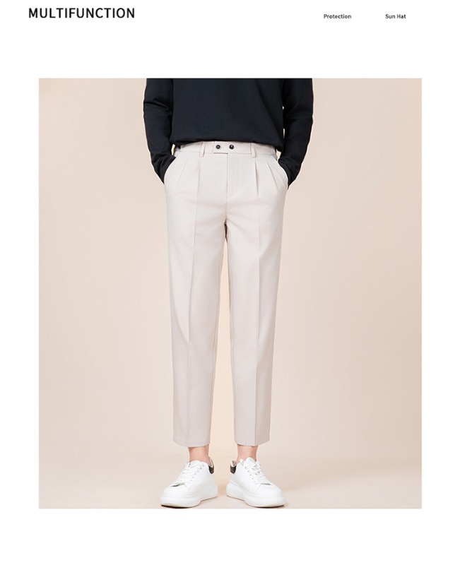 2024 년 가을 비즈니스 캐주얼 안티 주름 및 비 다림질 작은 세트 바지 남성용 스트레이트 고급 슬림 핏 작은 다리 세트 바지
