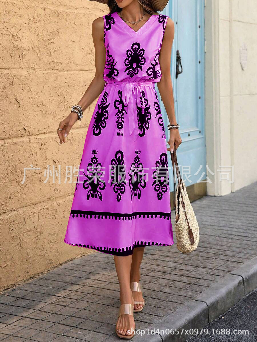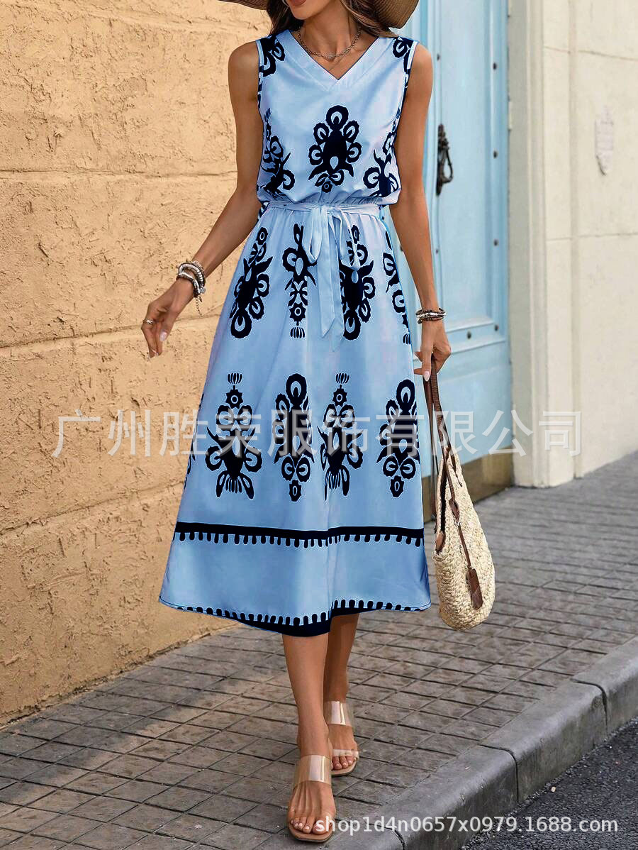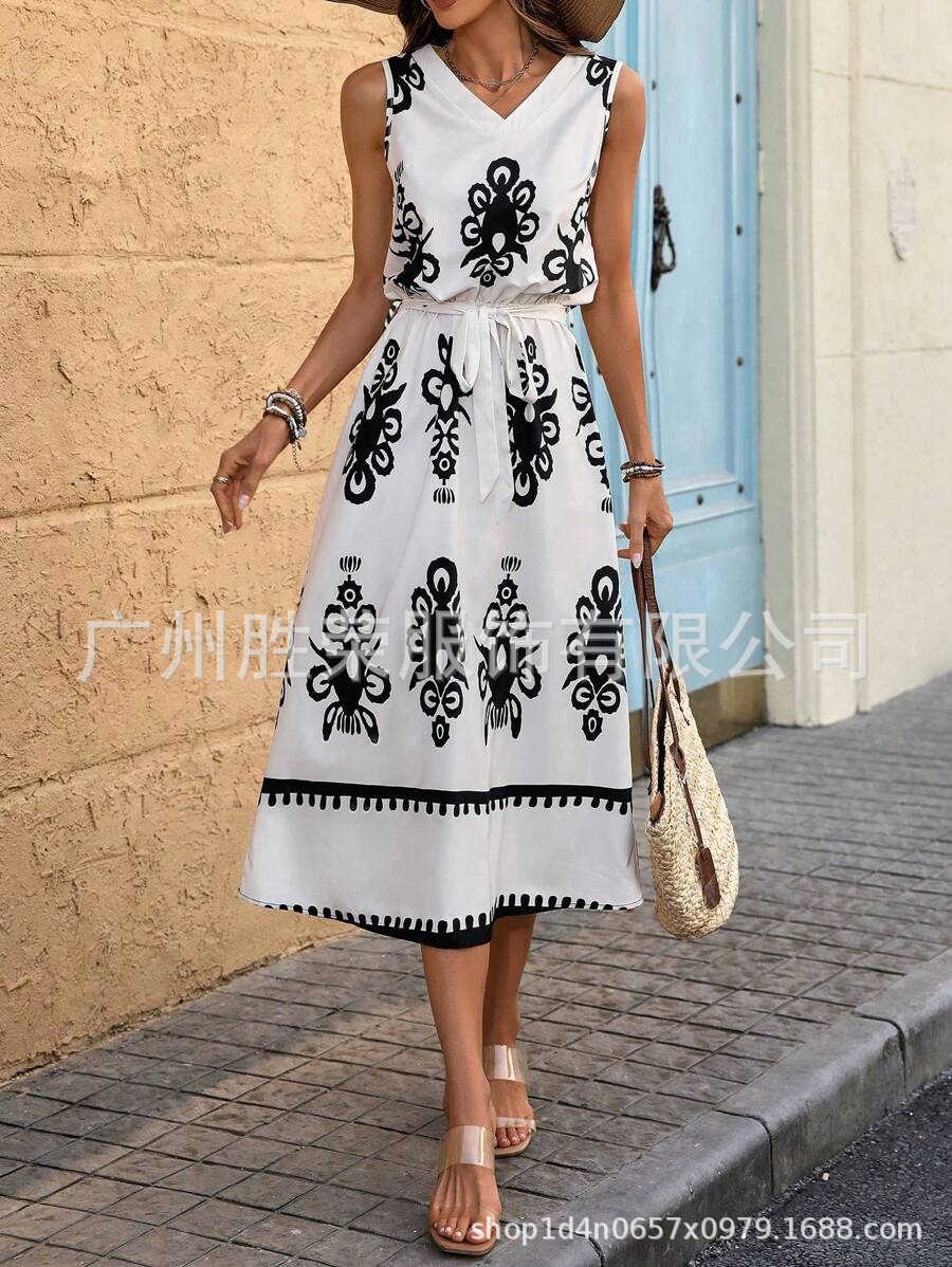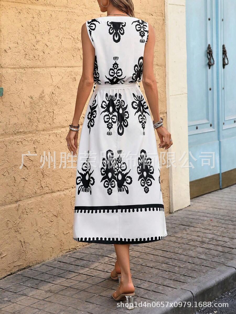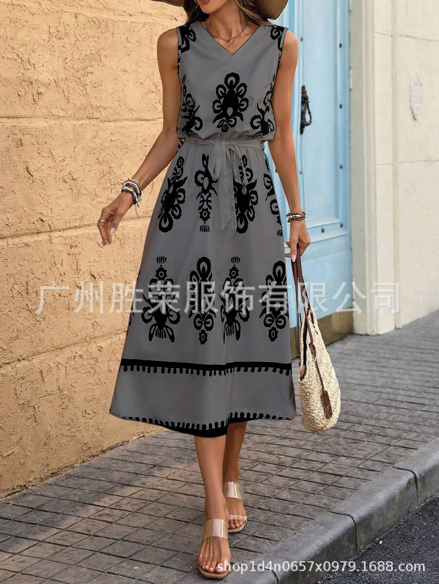 2025 새로운 국경 대외 무역 유럽과 미국 여성의 재고 온천과 여름 디지털 인쇄 긴 조끼 원피스스토어 가기