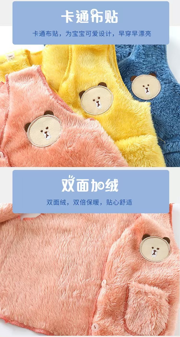 어린이 조끼 봄과 가을 양면 산호 양털 기모 아기 소년과 소녀를위한 조끼 한국 스타일 허리 코트 플란넬 아기 조끼